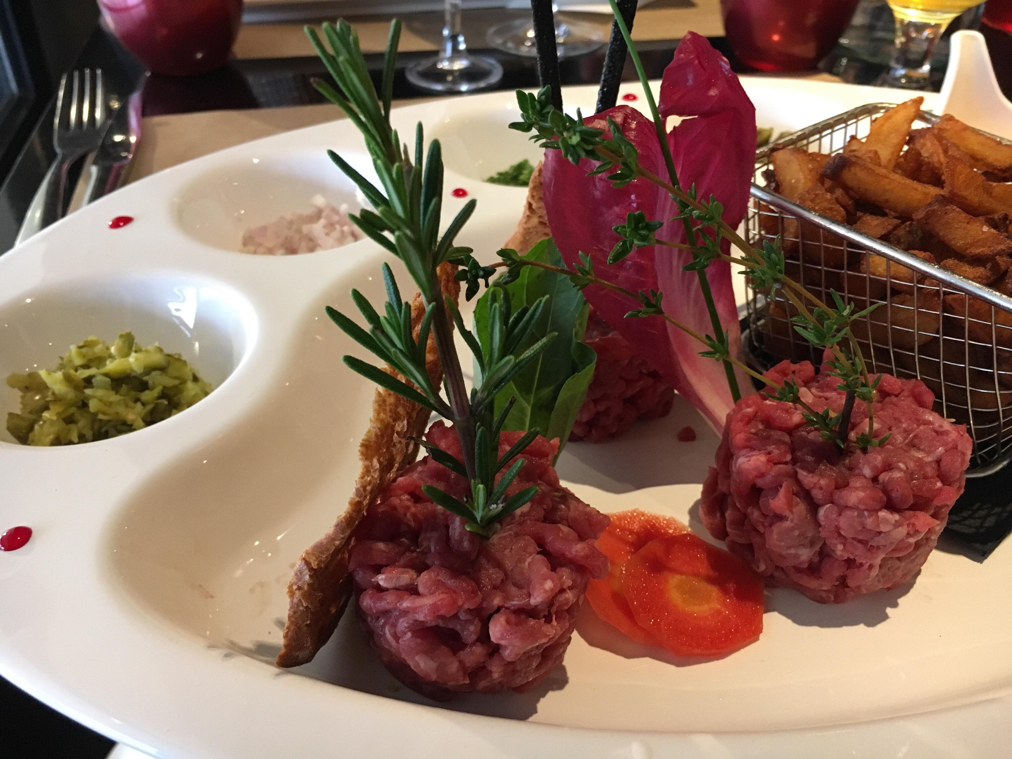 Lieu plutôt agréable (salle du bas un peu bruyante), pas mal de choix à la carte et un menu. Les plats sont bien présentés et généreux (mais des frites maison, c’est tellement meilleur), beaux desserts réalisés par un chef pâtissier. Équipe de service jeune et sympathique, mais pas toujours très discrète…