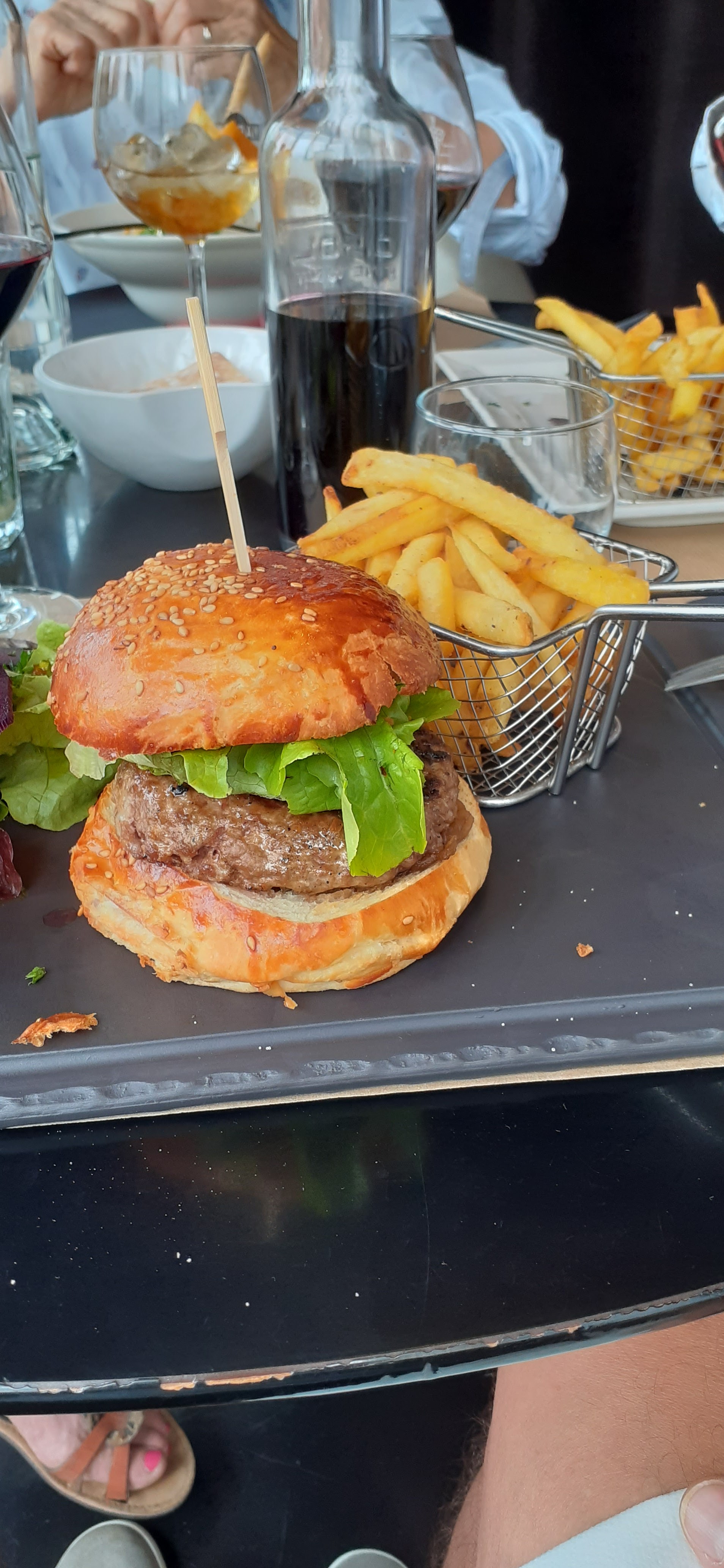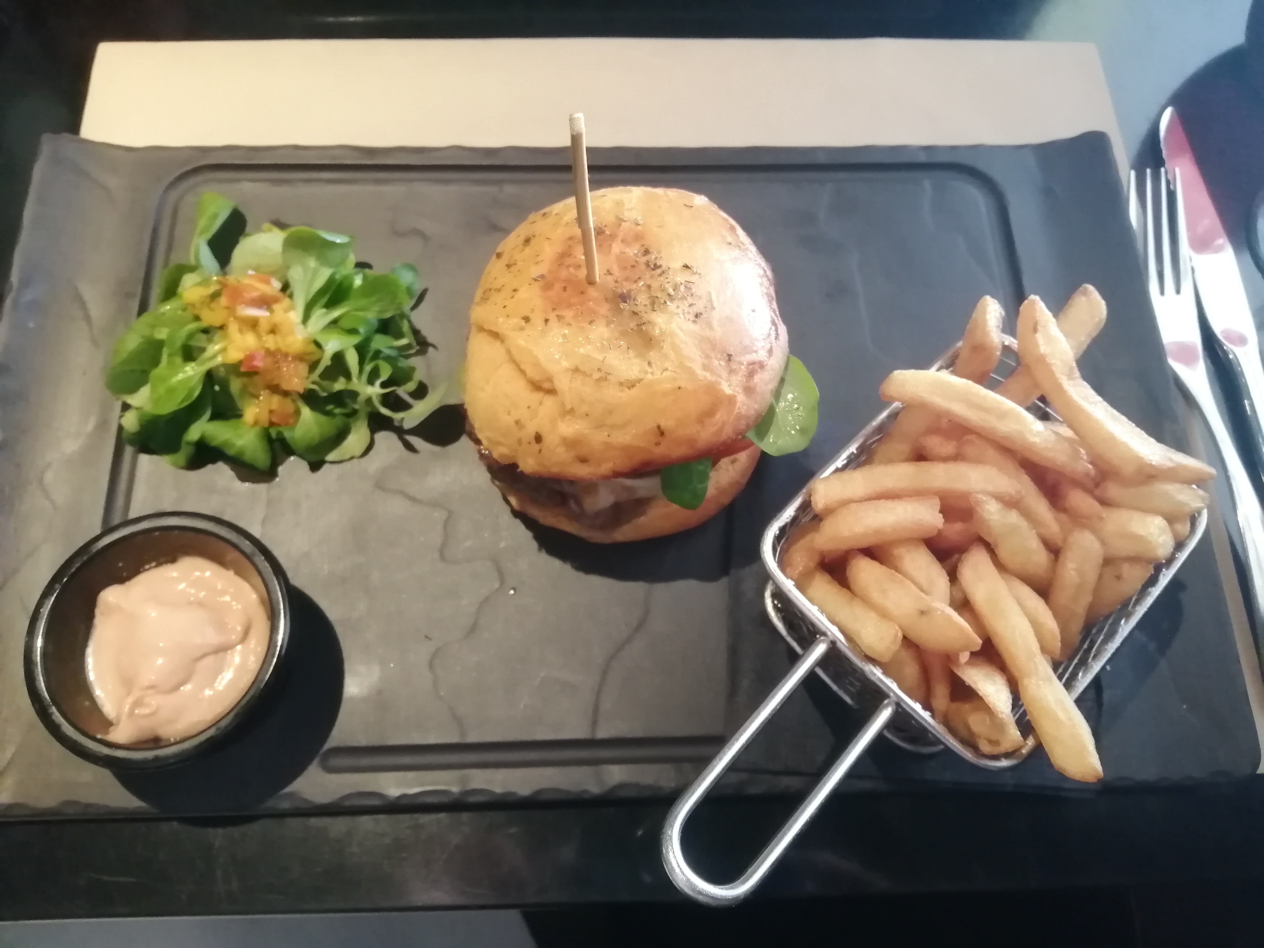 Réserver un dimanche soir à 19h30 pour 3 personnes, installer sur une table plus que limite, Pour la 3 eme personnes, elle étais assise sur une demi banquette, La banquette s’arrêtait à la moitié du set de table. L’autre table étais a 10 cm de nous, très très proche des autres clients Rien à redire pour le burger du moment, mais pour la pièce du boucher, pièce généreuse mais accompagnement froid, dommage