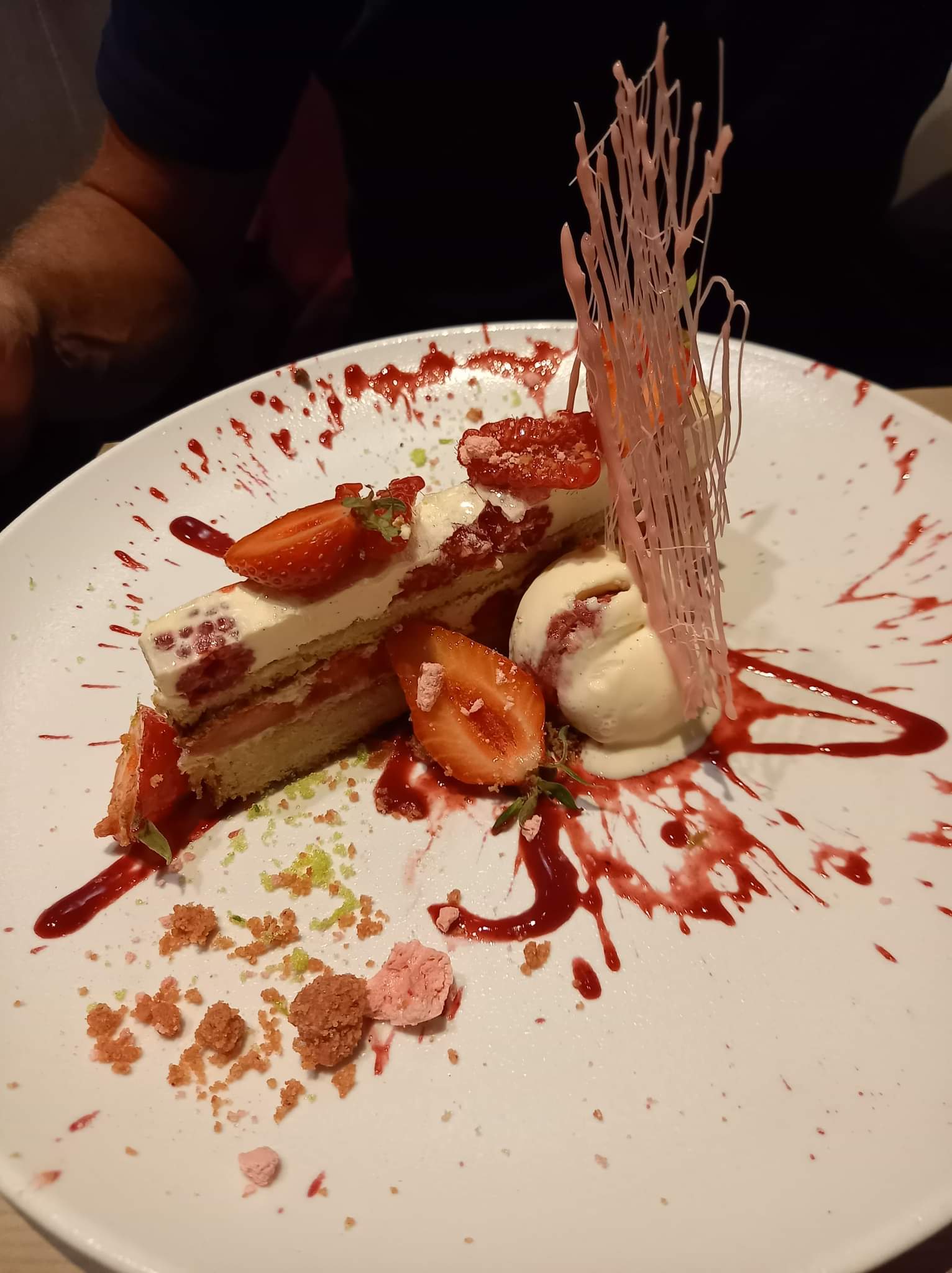 La cuisine est excellente, le/les cuisinier.s s'applique.nt vraiment en cuisine pour faire des belles assiettes pour mettre en valeur des plats travaillés. Ça mérite clairement des félicitations pour le soin apporté aux plats. Le dessert cheesecake avec la glace, les mures, myrtilles framboises est excellent. Je mets 4 pour l'ambiance parce que je ne suis pas habitué à la musique dans un restaurant même si elle n'est pas trop forte c'est compliqué de se parler quand les sons se superposent.
