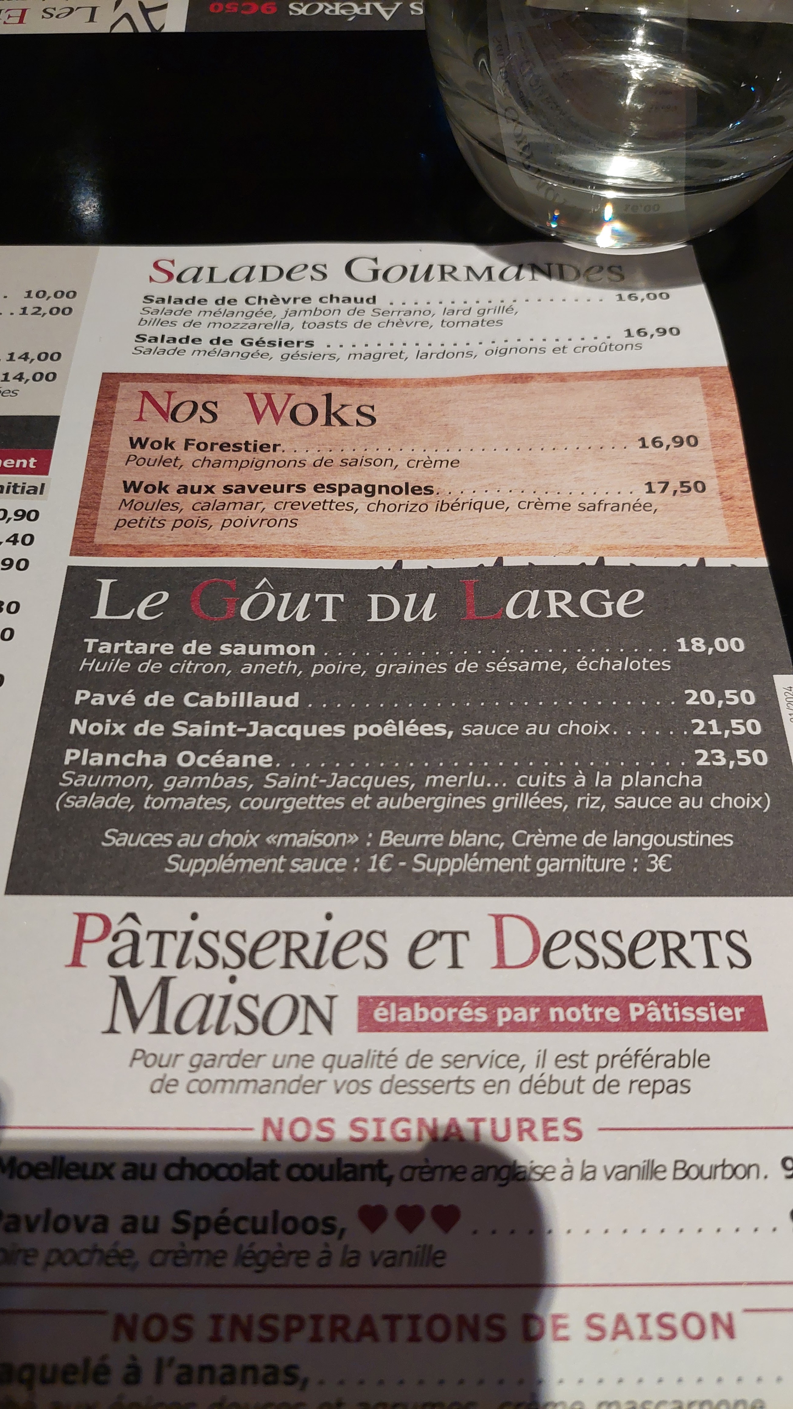 Depuis le changement de propriétaire récemment, augmentations des tarifs et baisse de qualité dans les plats et manque de fraîcheur, service très rapide même pas fini de débarrasser les plats que les desserts était déjà sur table. Par contre 20 min après les desserts toujours personne pour le café et remettre de l’eau. Très déçu alors que avec les anciens propriétaire tout était excellent.