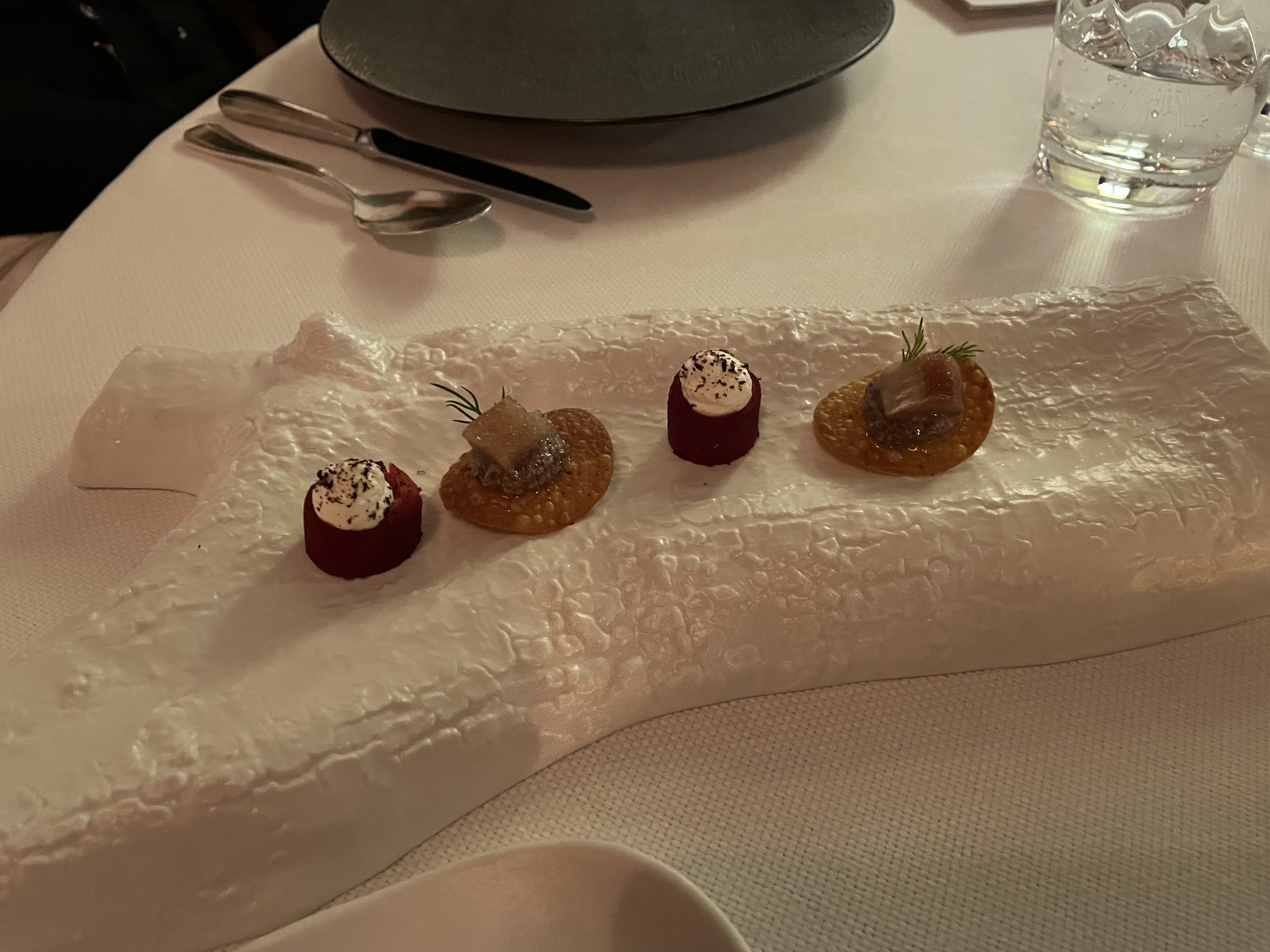 Nous avons été parfaitement satisfait de cette expérience, Cadre magnifique Qualité de l’accueil et du service irréprochable Les plats étaient délicieux, originaux Le choix des vins , parfait À refaire