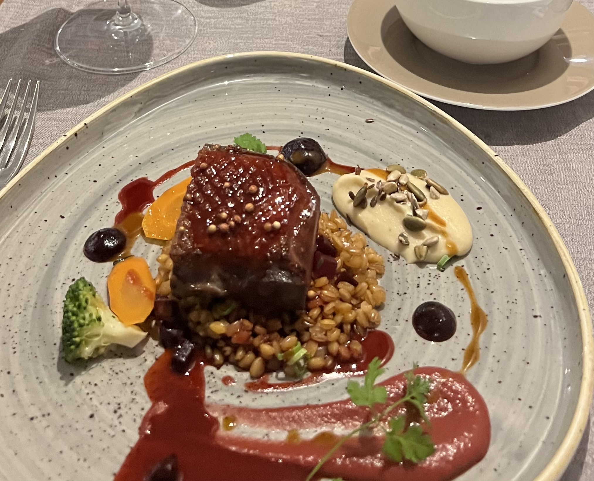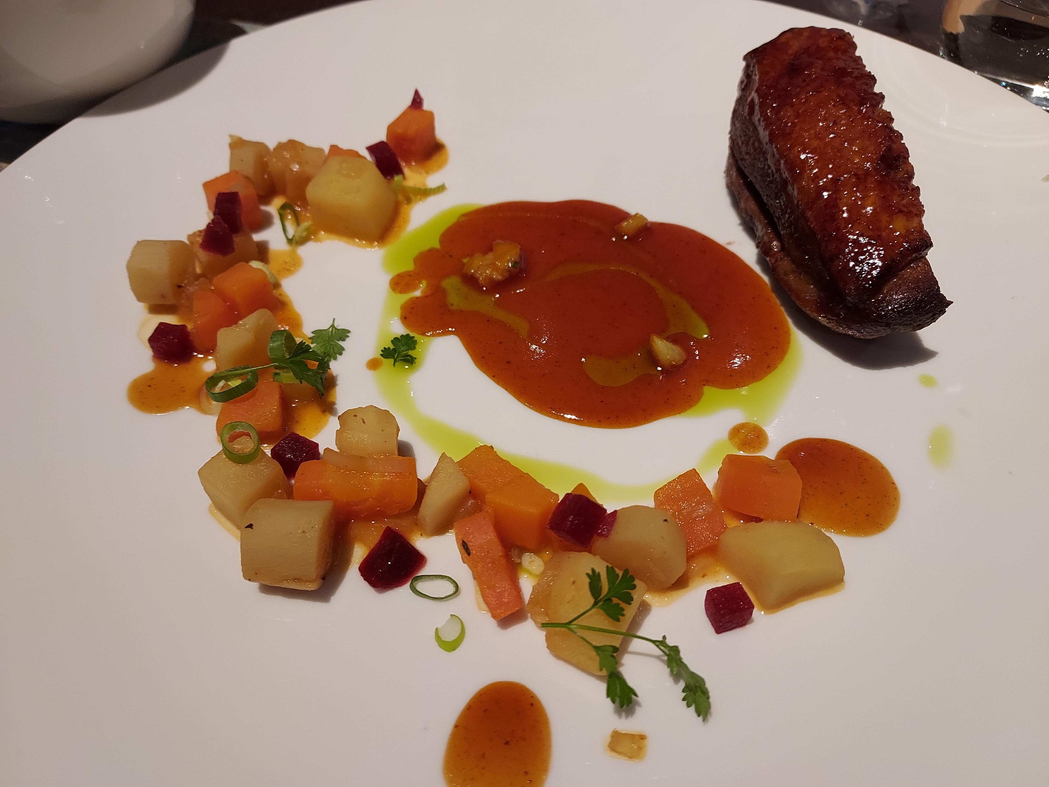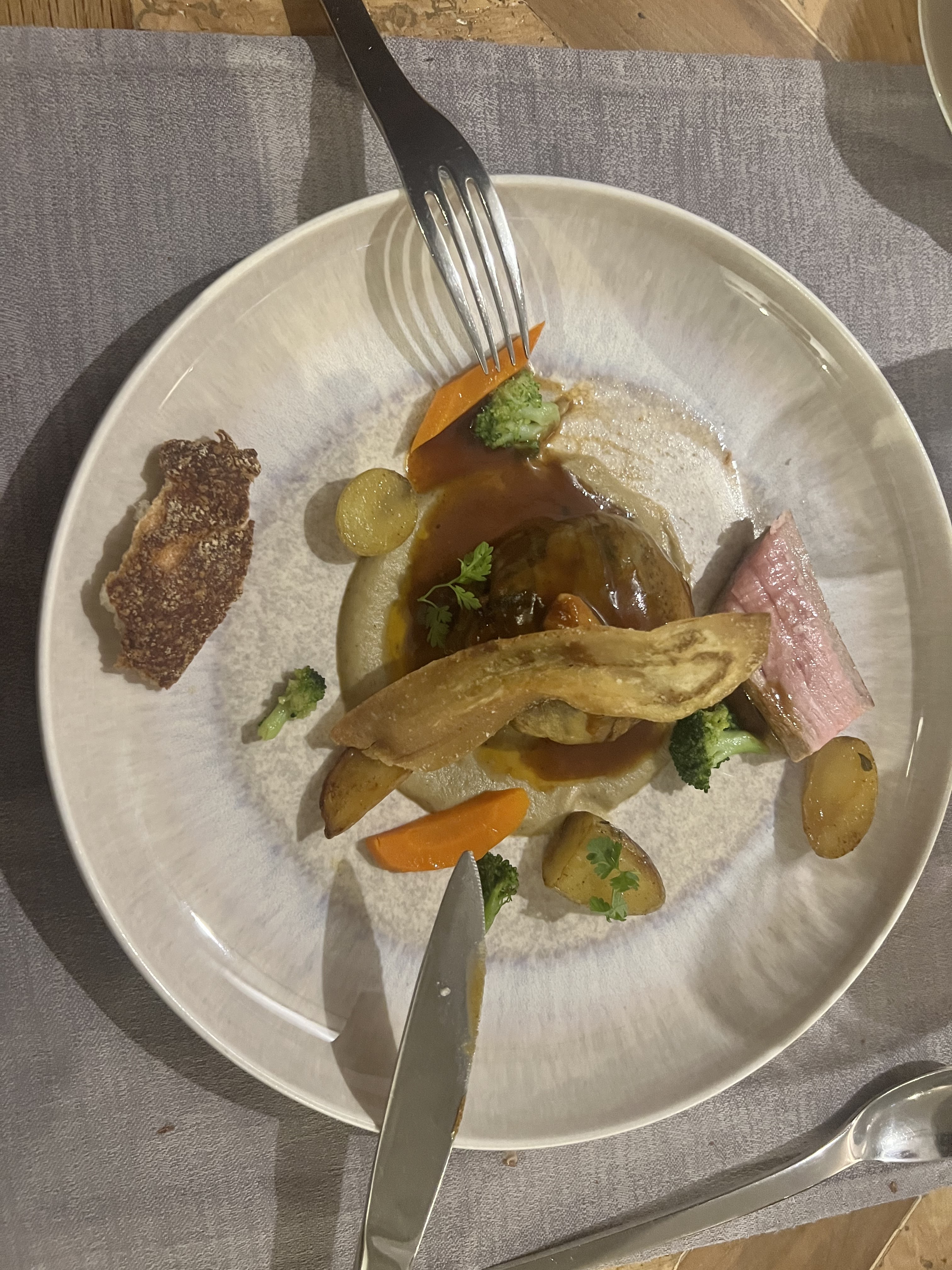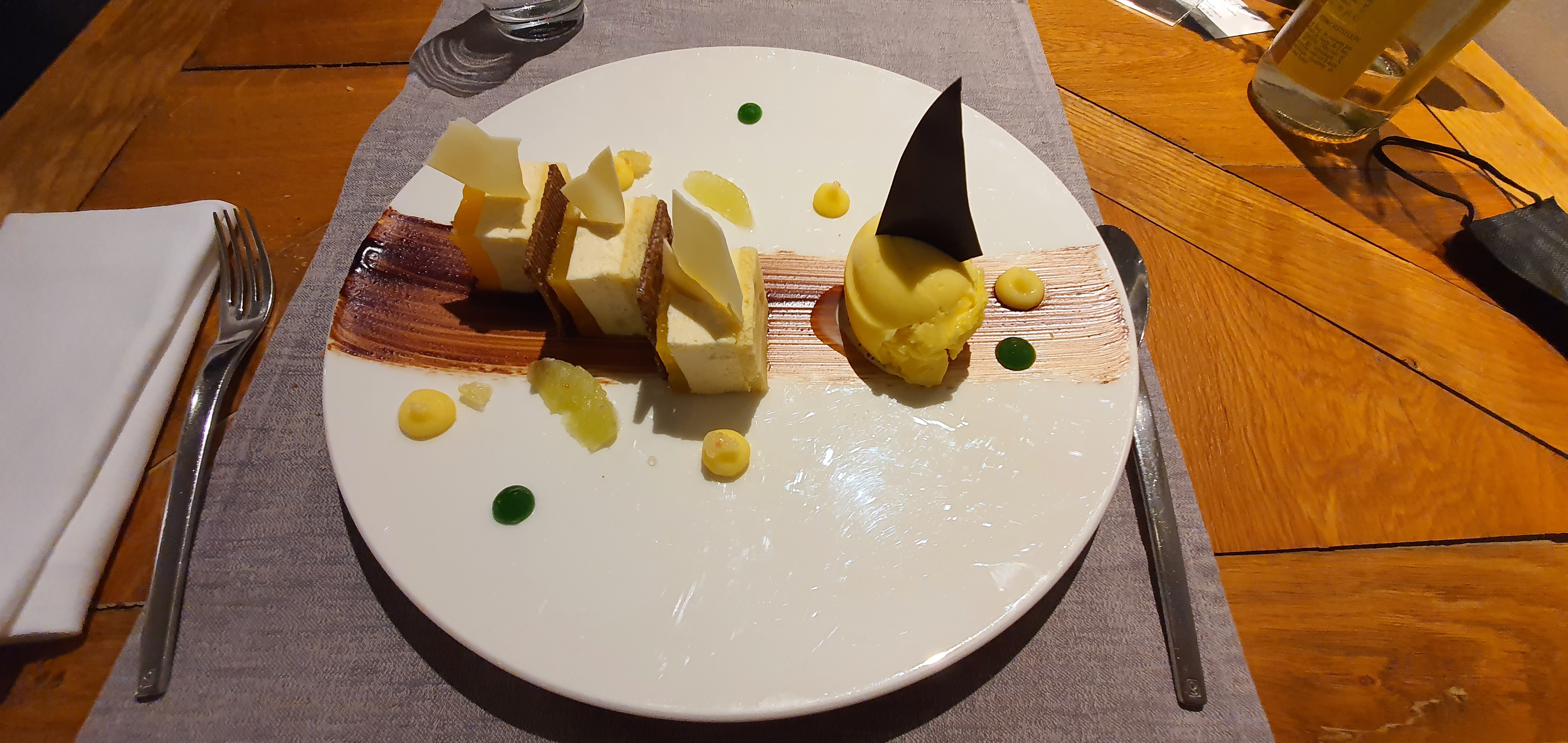 Des plats qui sont individuellement bons mais le menu est au final très riche et l'on sort du restaurant saturé notamment avec le dessert au chocolat. Donc à mon sens l'équilibre n'y est pas. Mais ce n'est que mon avis.