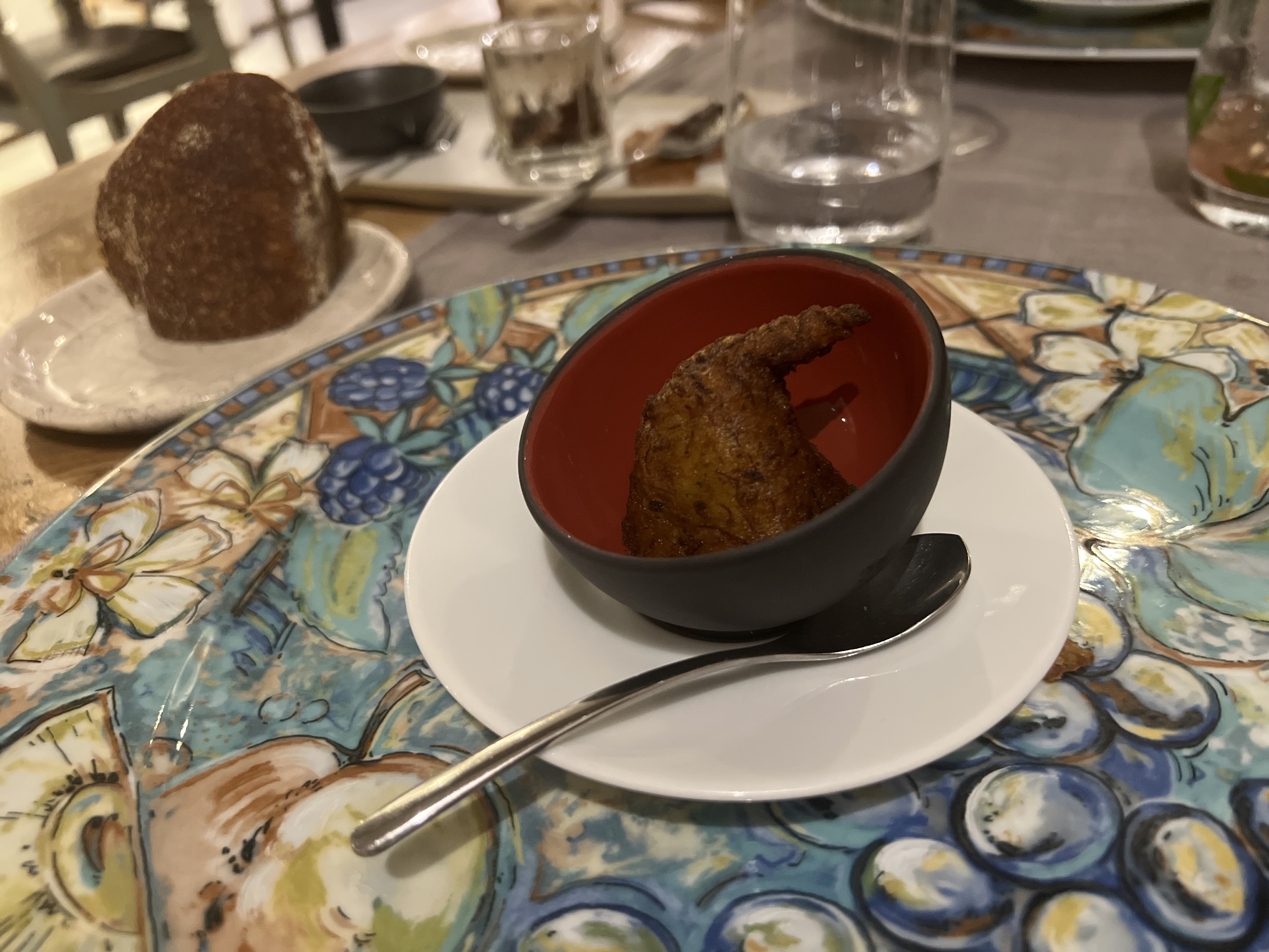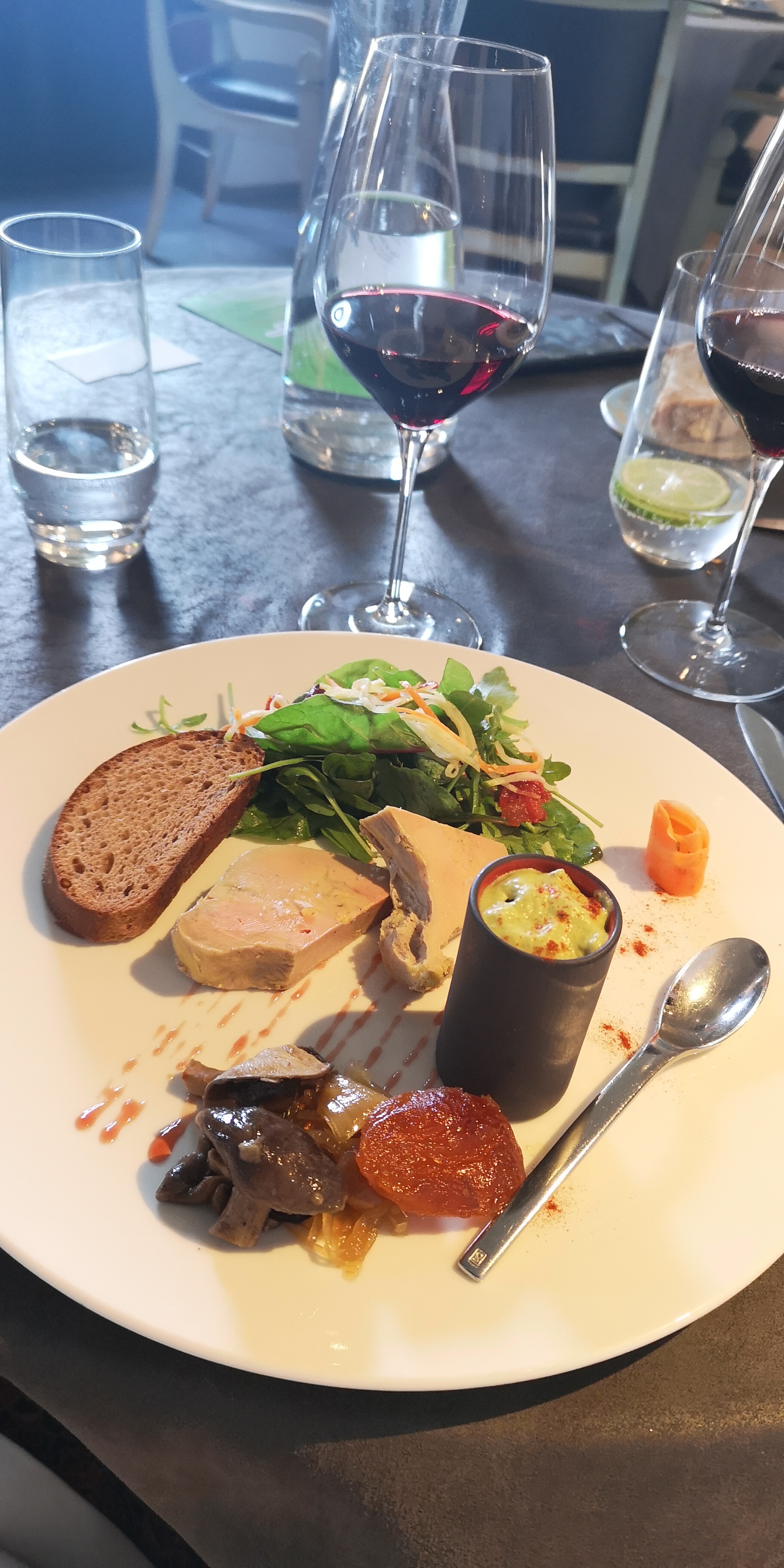 Le prix du verre de vin ,en fait du fond de verre exorbitant et non affiche,10 euros.Une nourriture noyée dans les aromates à tel point que l on ne sait même plus ce que l on mange.