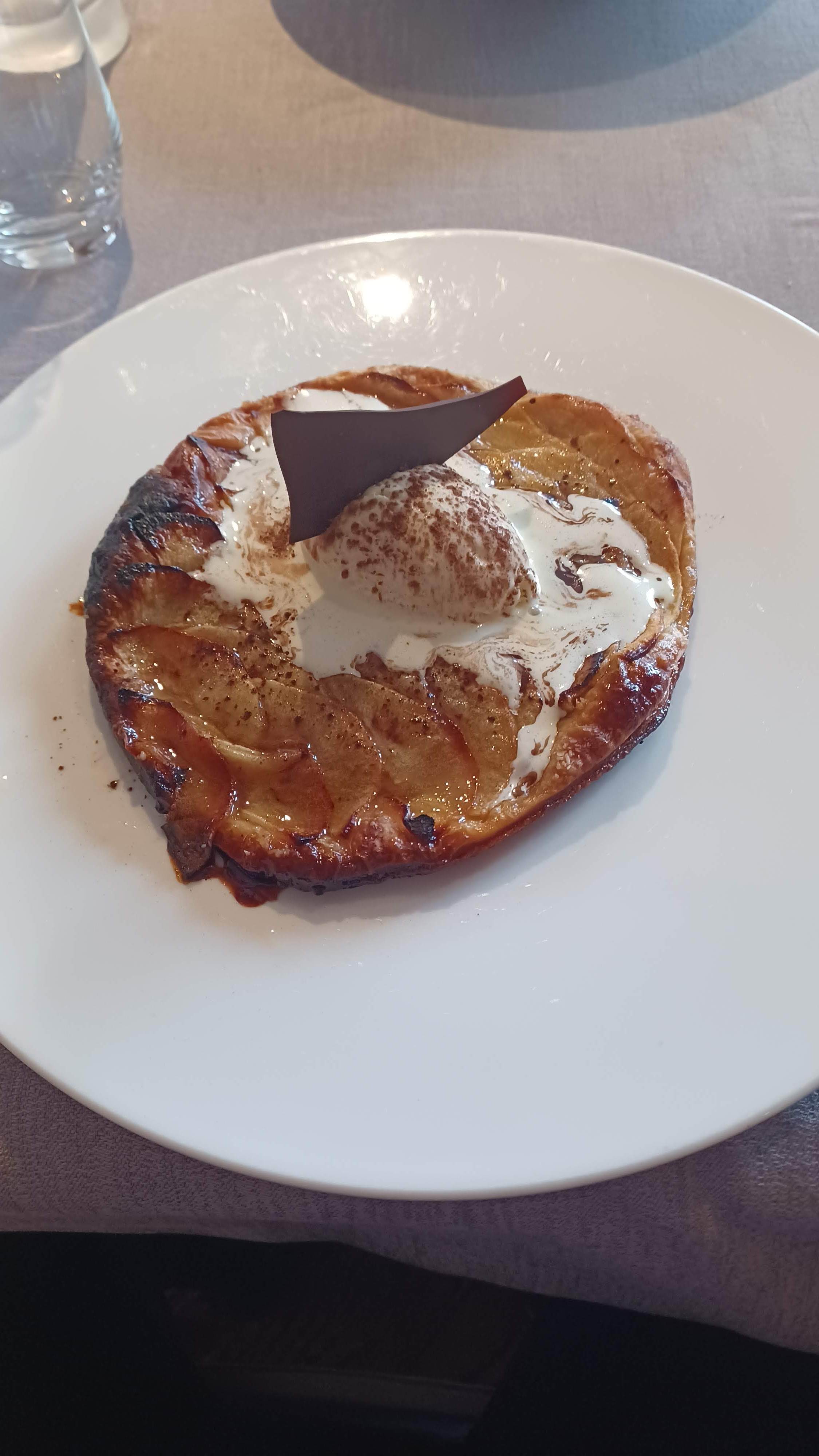 Charme indéniable du lieu pour rajouter il faisait nuit et la neige s est mis à tomber c était magnifique. Le service est super avec une charmante serveuse très professionnelle. La cuisine est délicieusement raffinée et le chef près à vous faire plaisir. À déguster de toute urgence