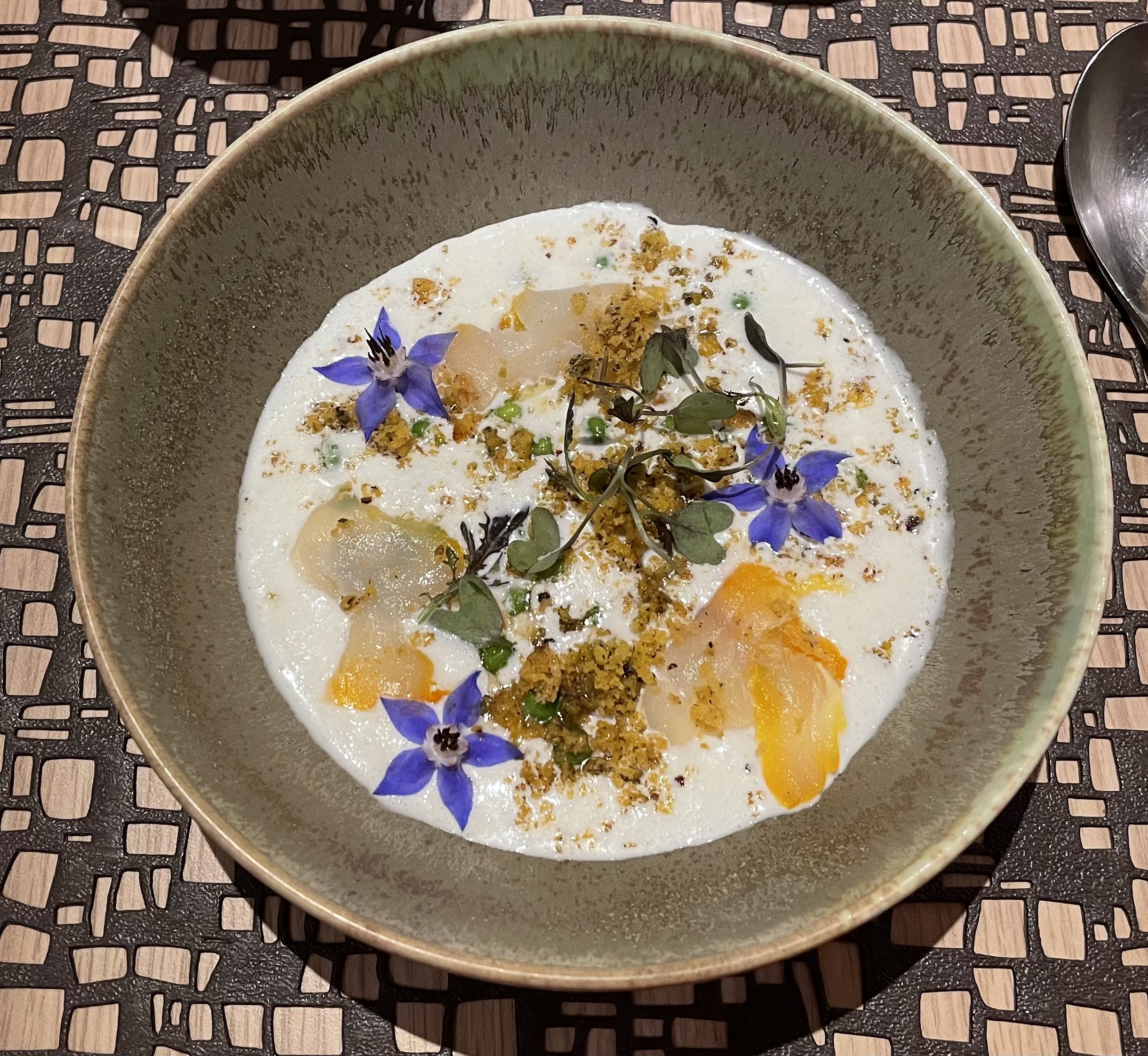 Tout était super, assiettes très belles, très fines, délicieuses. De bons conseils et un accueil au top.