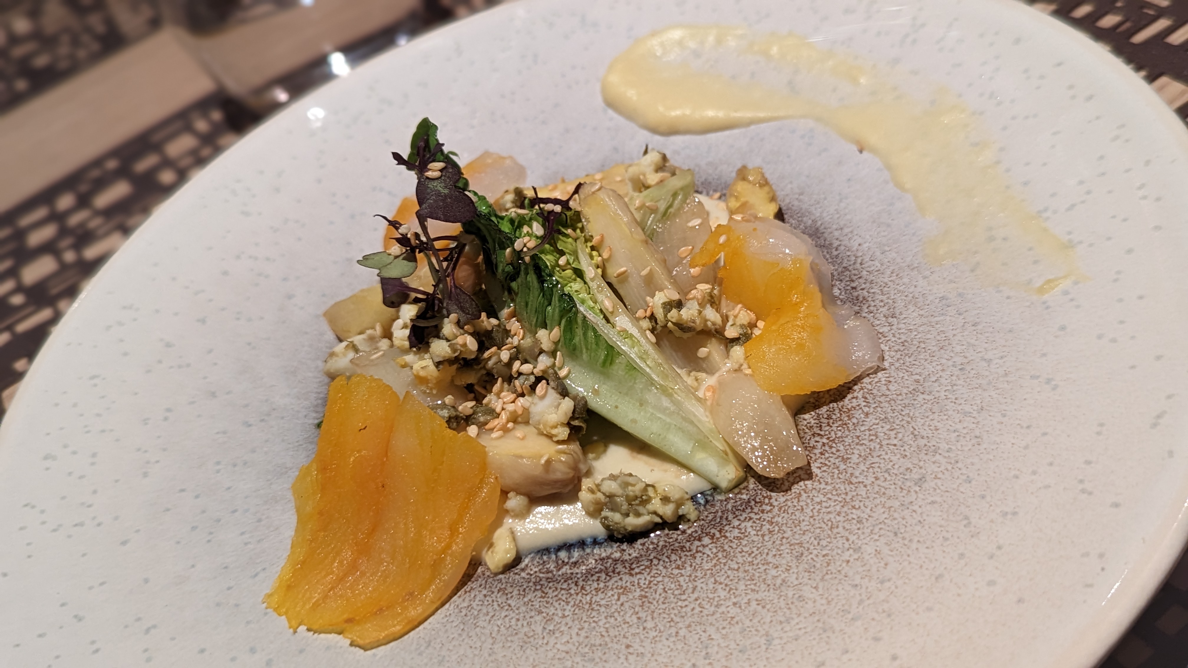 Décoration sobre et élégante. Les plats sont joliment présentés. Il manquait toutefois les saveurs tant attendues à la lecture des précédents avis. Le plus : la carte change a priori tous les mois et présente des produits frais et de saison.