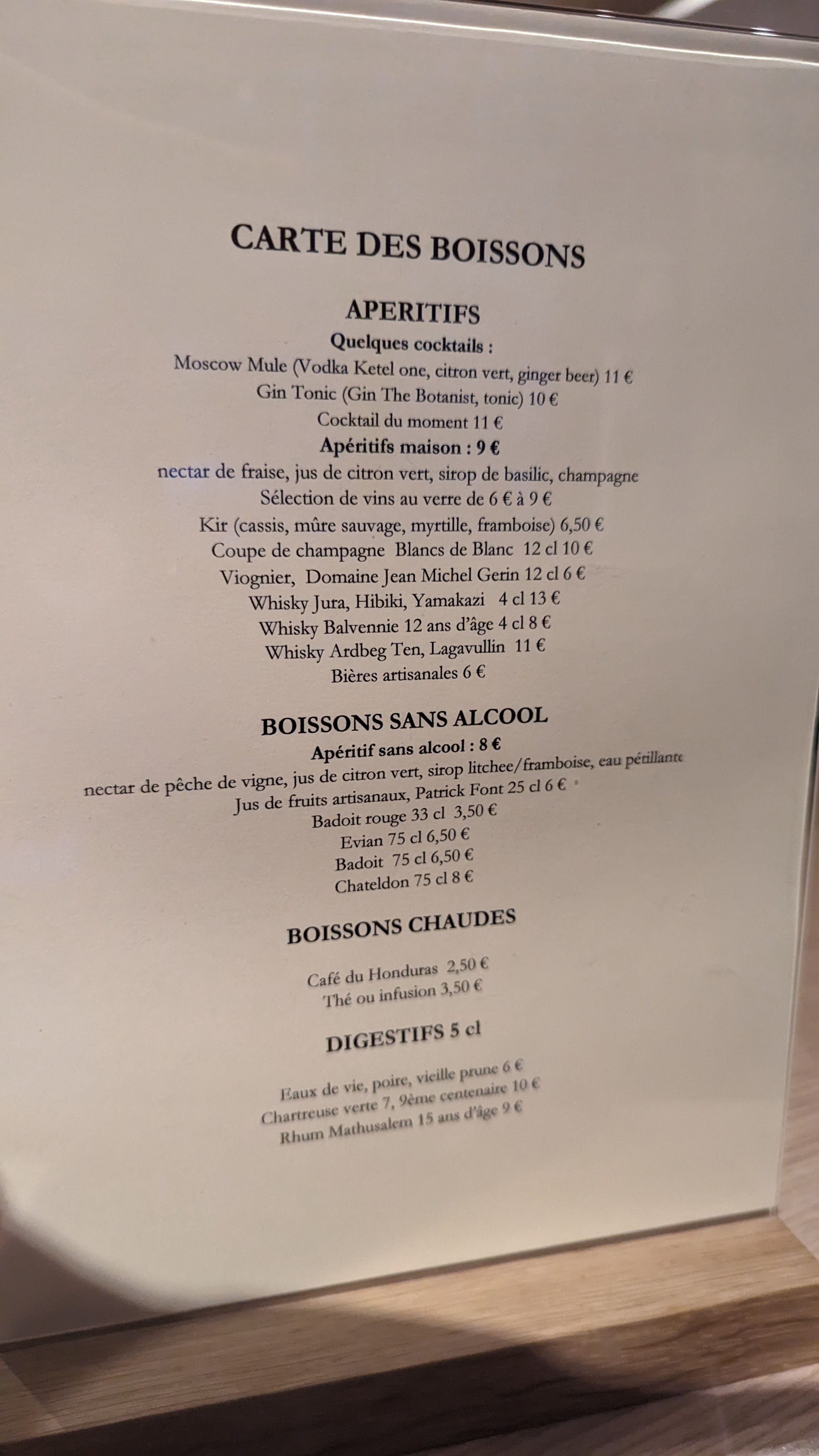 Sympa sauf le prix des vins au verre et les apéritifs