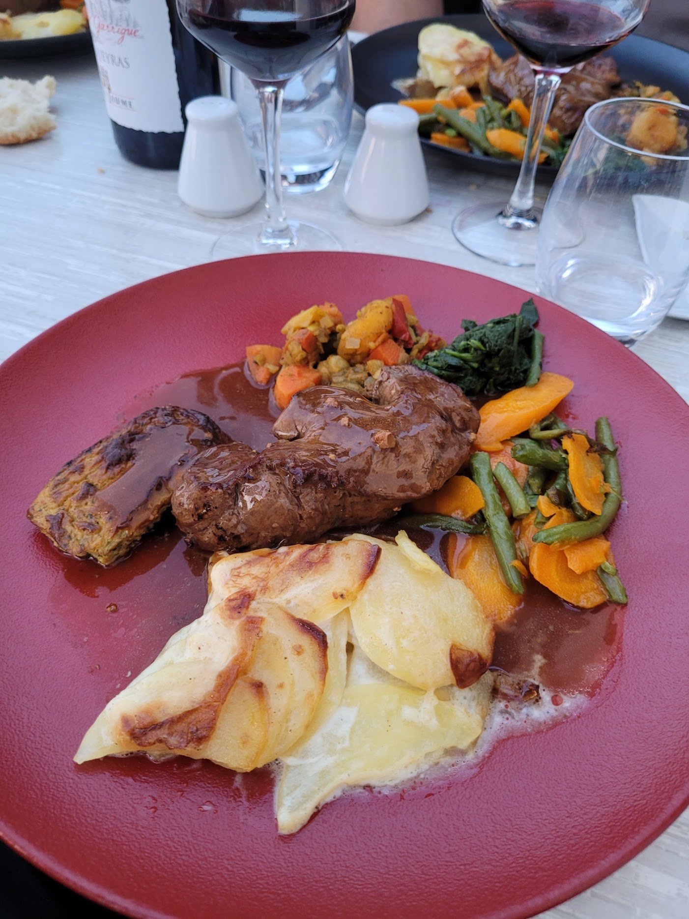 Excellent , personnel tres agréable, repas succulent, vue splendide en terrasse ,calme ce n'est pas une cantine , c'est un vrai restaurant avec des plats excellents , dessert au top .on y retournera sans hésiter, prix correcte, service impeccable et très propre