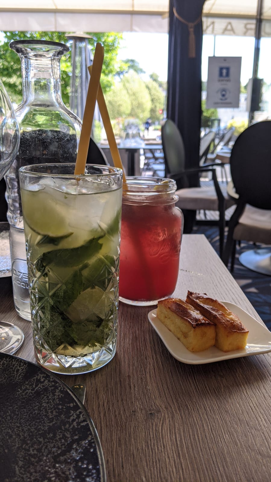 On a adoré le coktail l'Amphytrion à base de liqueur de chambord et d'amaretto. Cuisine raffinée et goûtue. Canette et tranche de patate douce rôtie au top ! Très bon service. Notre seul regret, nous avions demandé la vue sur la cathédrale et nous étions en théorie Idéalement placés pour en profiter mais alors qu'il n'y avait personne en terrasse, tous les parasols étaient ouverts et occultaient totalement la vue ! Quel dommage.