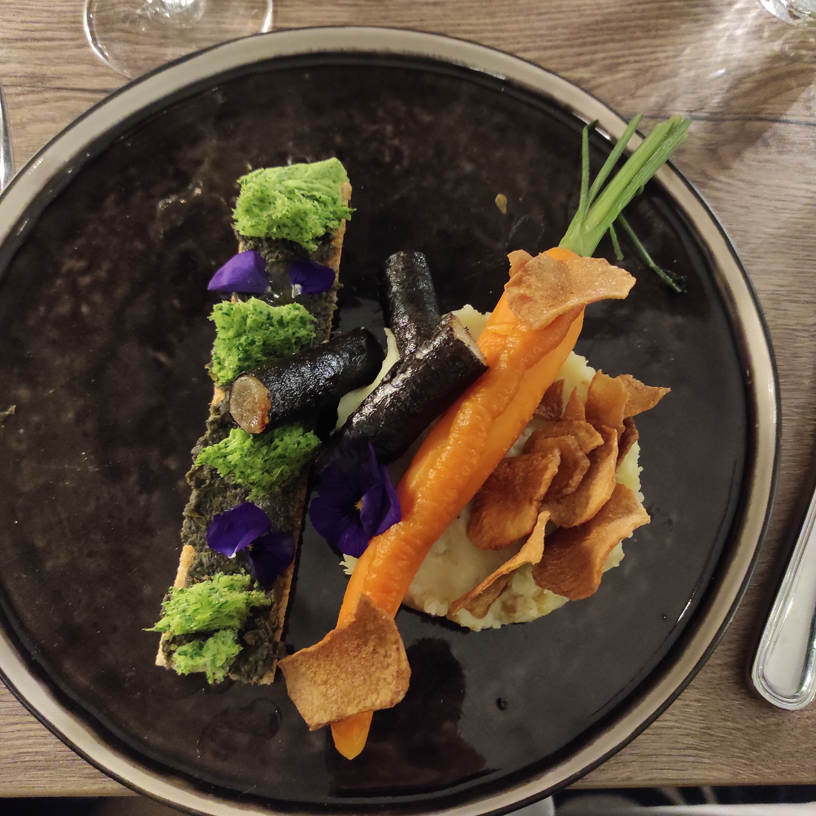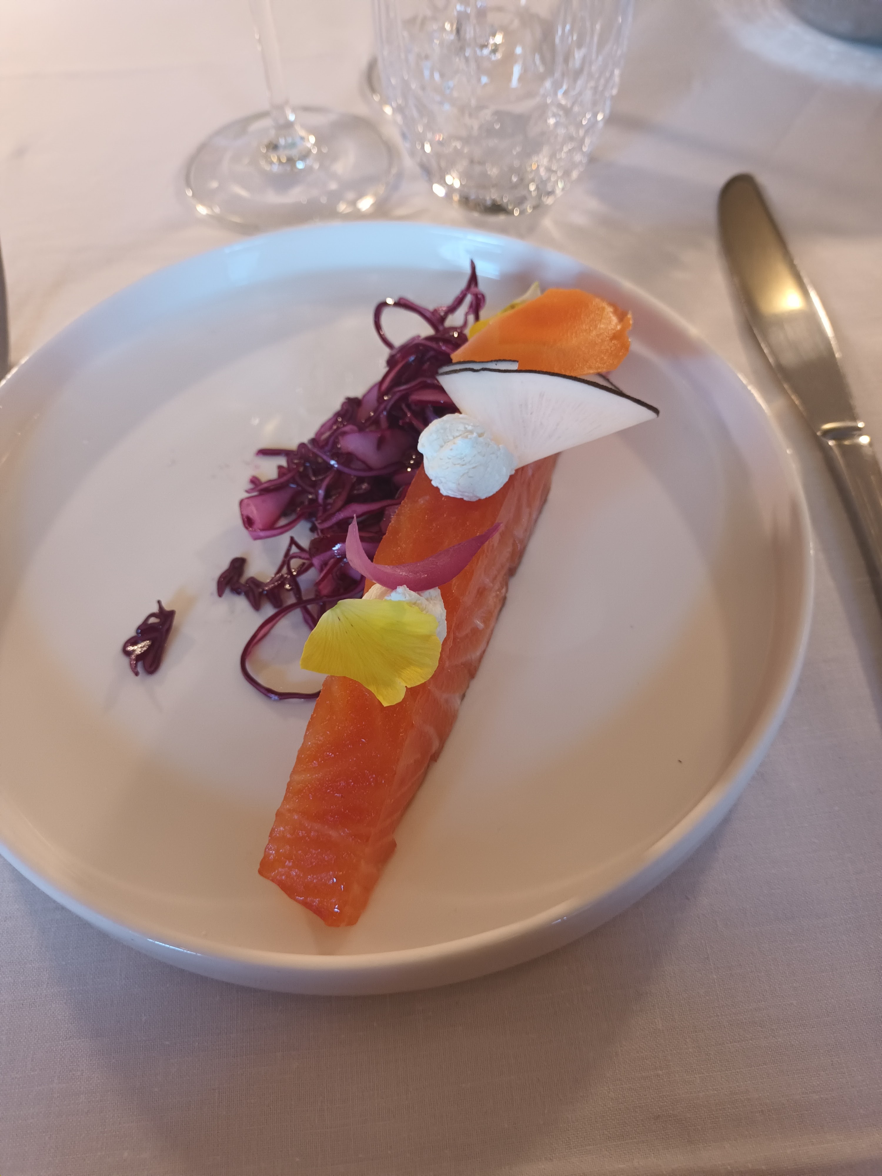Pour ma part, rapport qualité prix bien trop cher, oui c'est bien présenté. Mais un saumon et sa sauce betterave pas de pep, le poulet choux rouge avec sauce fromagère, le mélange ne va pas du tout ensemble. Le dessert chocolat et glace vanille excellent légèrement salé. Le service 2 personnes était souriante la troisième la plus jeunes à du laisser son sourire au vestiaire.