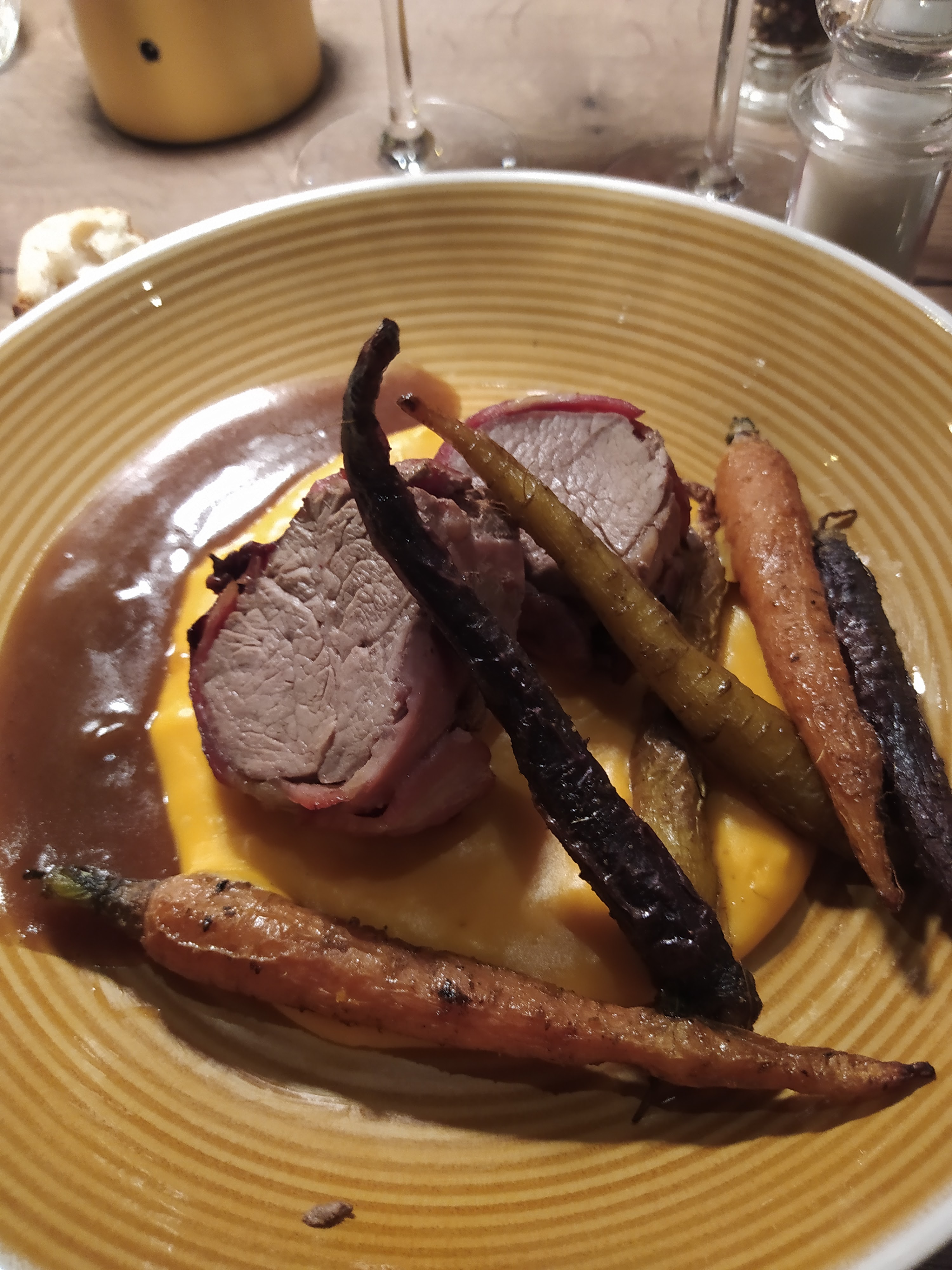 Soirée du jeudi 26 mai. Personnel agréable même si certains semblent peu expérimentés : il faut bien apprendre le métier donc je le dis en toute bienveillance. Saumon de l’entrée très bon. Les betteraves préparées avec une saveur acide originale. Pâté en croûte tres fin. Le pain est bon mais il manque des assiettes à pain … La portion du menu gourmet gagnerait à être un petit peu plus copieuse en accompagnement ….