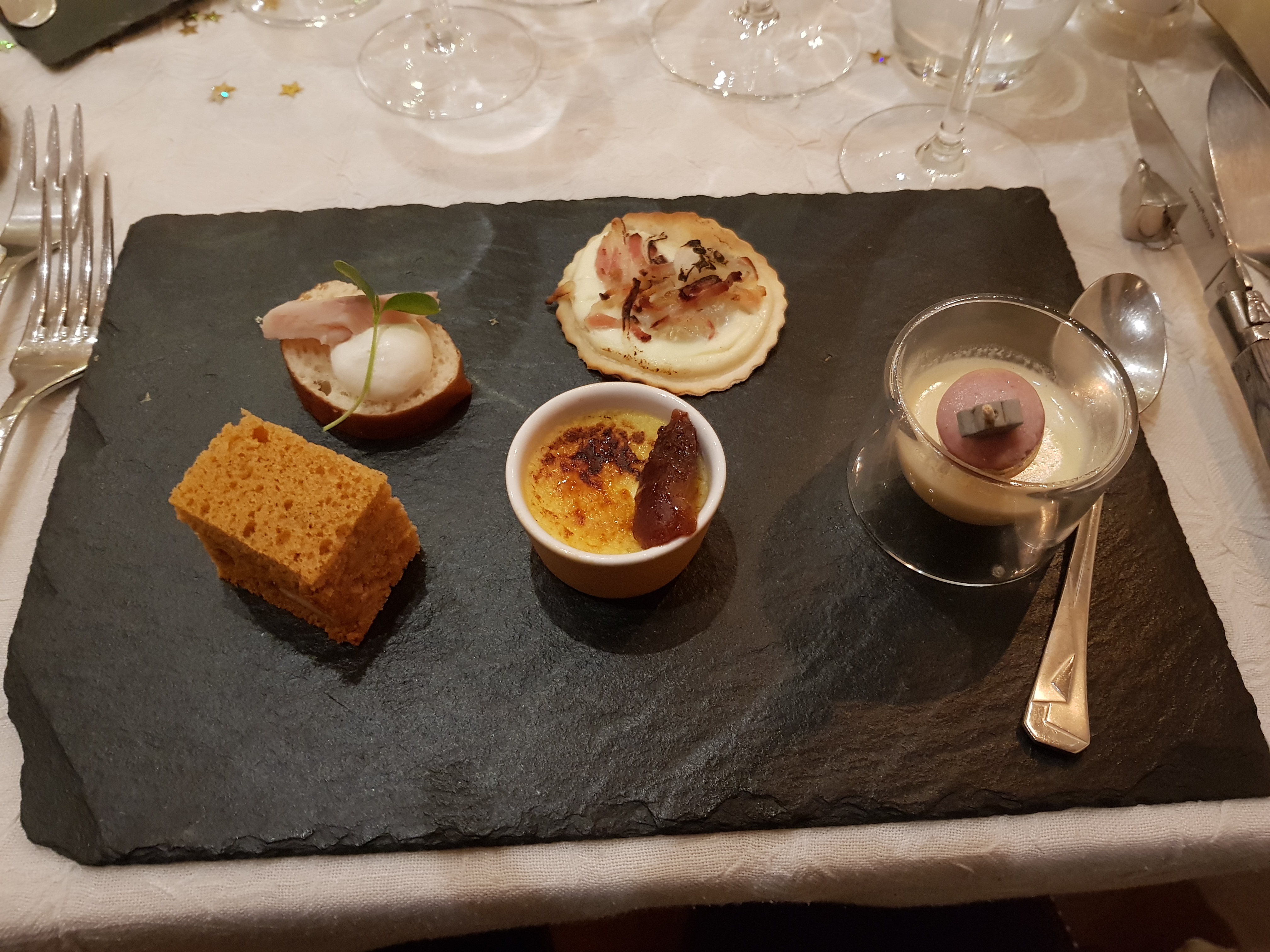 Nous sommes allés à L'Amuse-Bouche le soir du Nouvel An sur réservation. Le couple de propriétaires a réalisé une performance exceptionnelle : chouchouter une vingtaine d'invités à un niveau élevé avec 6 plats et des vins assortis.