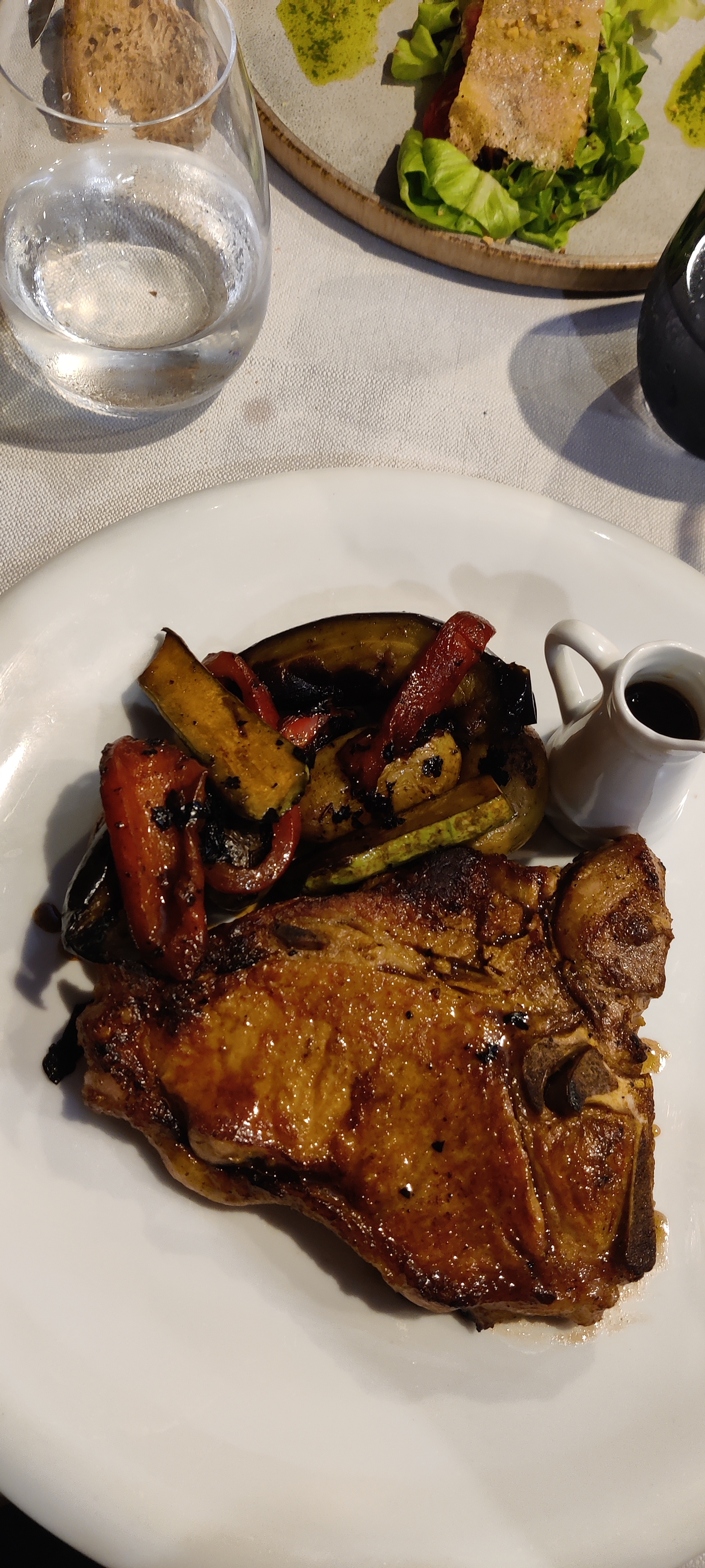 Bizarre, mon plat était excellent (filet de veau). La côte de porc pour l'autre plat n'était pas cuite... Le serveur bizarre aussi 😳 . La commande des entrées à été oubliée mais fort sympathique dans nos échanges. Bref difficile de donner une note avec de telles variations dans la cuisine et le service...