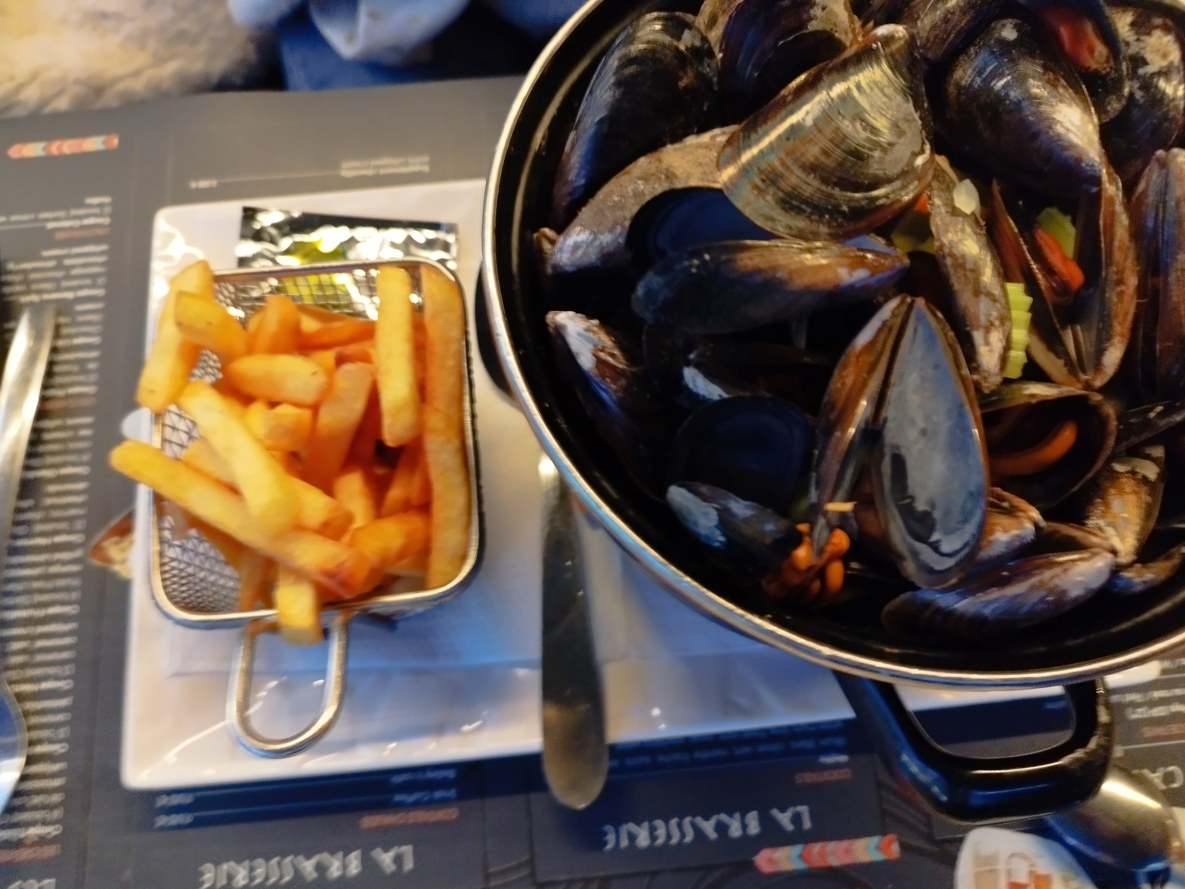 Les serveurs étaient tout à fait perdu. Peut être nouveau donc pardonnable quand même. Dans un menu il proposait un demi magret, on a même pas reçu un quart de magret, les frites froides et l'accompagnement insipide. Mais le pire on été les moules ! Archi cuite, sans sauce ni légumes. On a fait la remarque au serveur qui était très compréhensif et a été montrer directement au patron, qui celui ci au moment de payer a été se cacher en cuisine pour pas avoir un affrond devant les clients. Ne parlons pas de la table à côté qui a reçu ses plats en 2x...Très déçu et je ne le recommande pas du tout...
