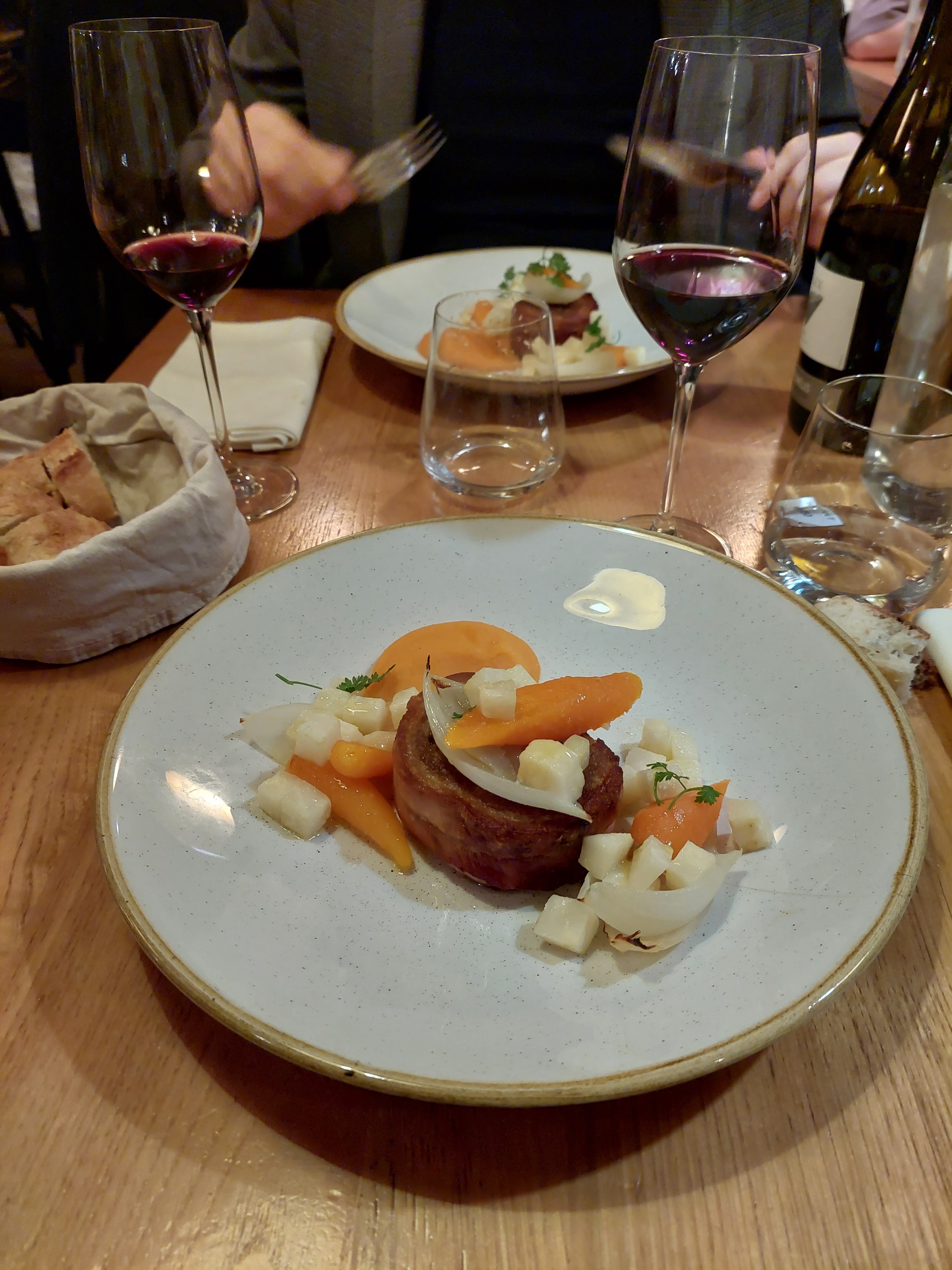 Lundi soir, pas trop de monde, très agréable avec un décor moderne mais chaleureux. Accueil et service impeccable et très professionnel. Carte limitée, gage de produits frais et de saisons, plats raffinés de l’entrée au dessert. Carte des vins top. Rapport qualité prix plutôt très bon vu l’établissement.