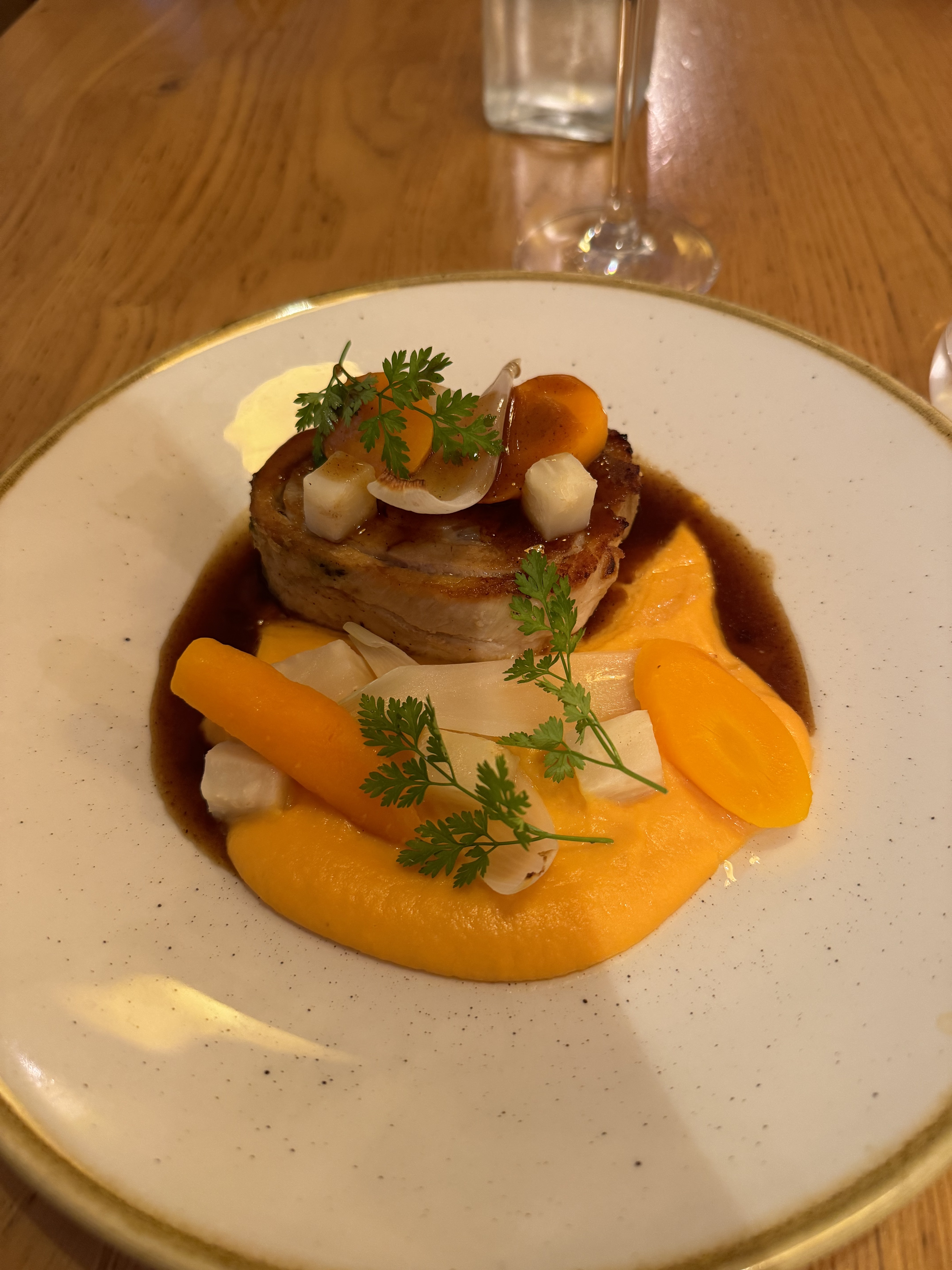 Très beau travail dans l'assiette. Service attentionné et prix pas excessif eu égard à la qualité de la cuisine. Belle carte des vins diversifiée.