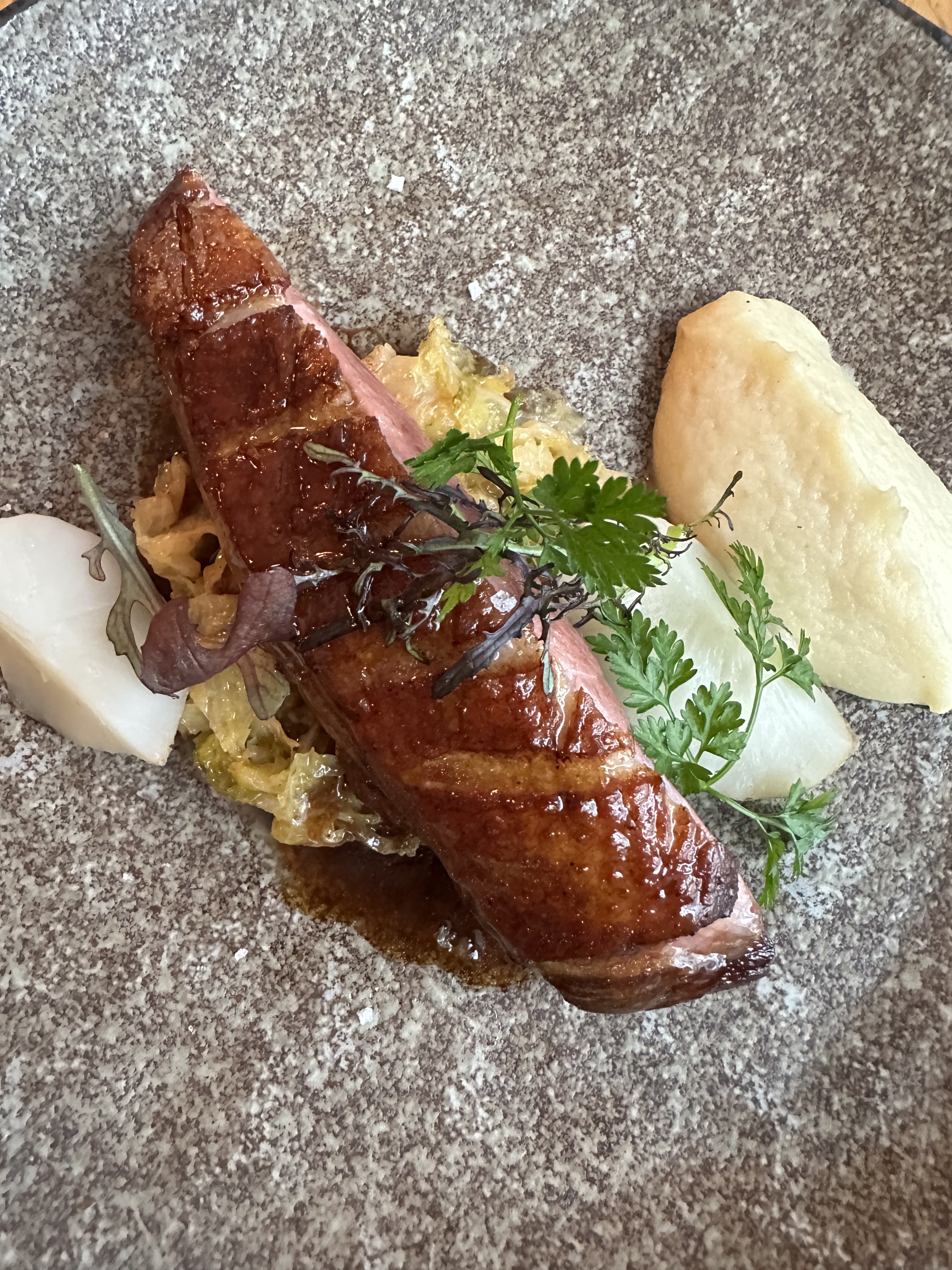 Excellente expérience culinaire ... l oeuf parfait l était vraiment ...pour le canard et ses légumes ... cuisson assaisonnement et présentation sont parfaitement maitrises... et parfois ça pêche sur les desserts mais ici c est aussi un régal... bravo au chef !!!!