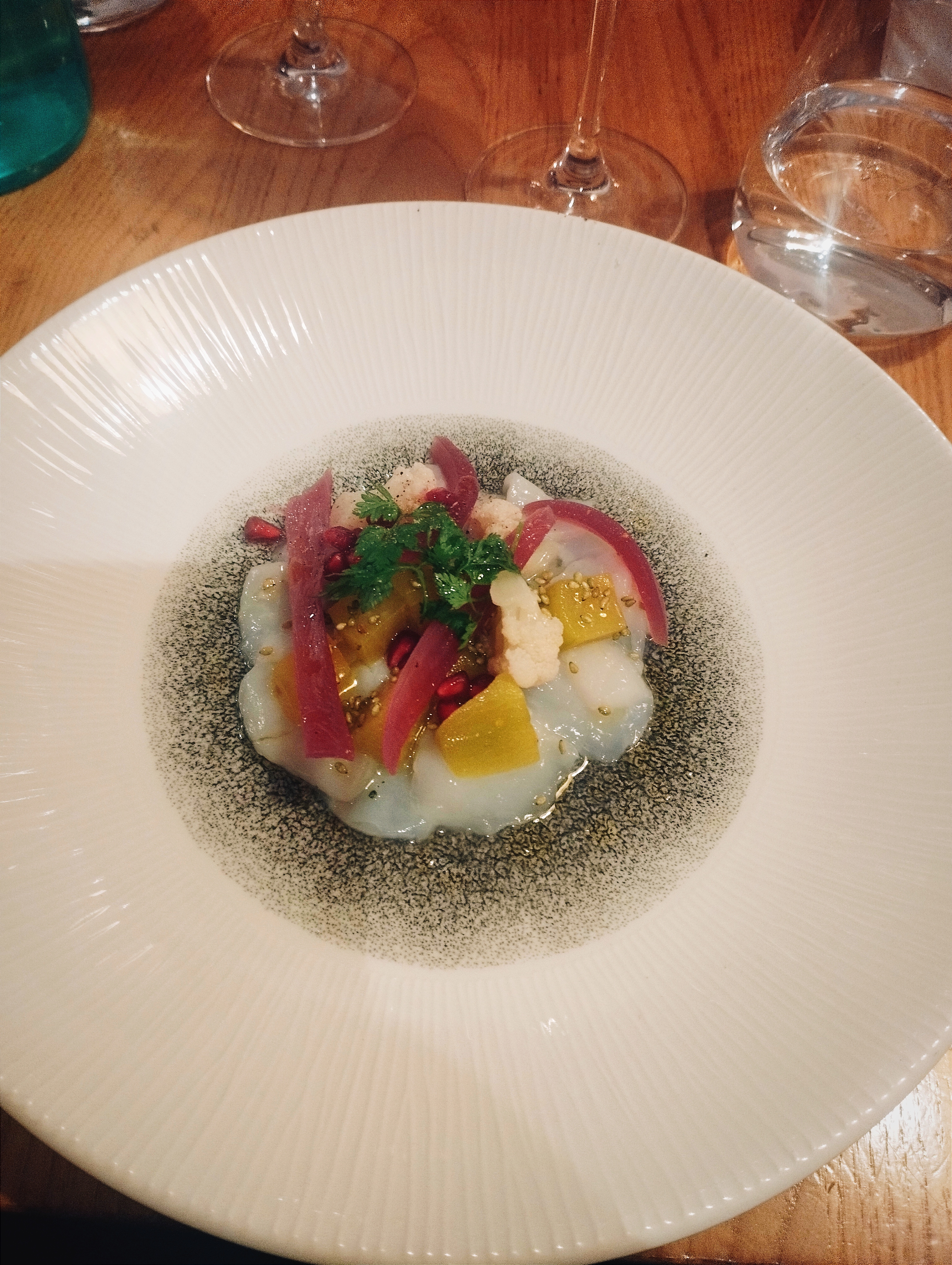 Trop de saveurs mélangées au sein de plat. Les fruits de la passion n'ont rien à faire avec haddock fumé (entrée). Plat : poisson très bien cuit mais manque cruellement de sauce. Surtout avec la crème de sésame noire qui dessèche la bouche. Dessert correct mais sans plus. Plutôt déçu, même si on m'en avait dit du bien.