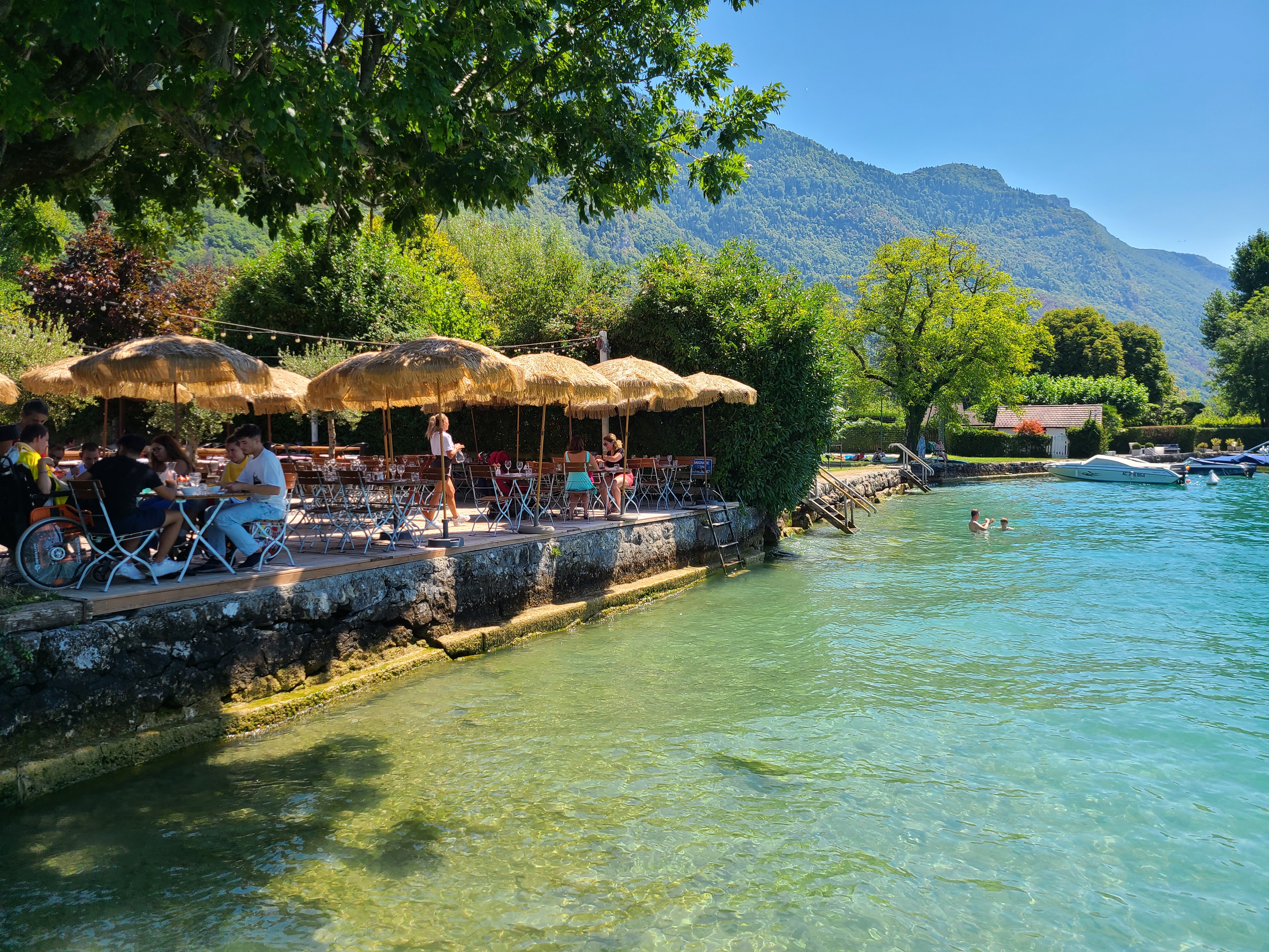 LE restaurant incontournable autour du lac d ANNECY ! Plusieurs fois que nous nous y rendons et c est toujours un sans faute ! Cadre idyllique (mais comme bcp d autres) par contre leurs plats sont pleins de saveurs, leur tartare est des plus succulent, sans oublier leurs pizzas qui feraient pâlir les italiens ☺️ Et que dire du service… d un professionnalisme à toute épreuve malgré la fatigue de fin d été dans une ville bondée de touristes à cette période ! Vous pouvez même accoster en bateau, il y a 4 places il me semble. Et concernant le commentaire sur les tarifs un peu élevé, c est pareil partout autour du lac mais au moins là vous avez la qualité avec donc aucun regret ! Bref si vous avez 1 seul restau a faire au bord du lac c est celui là !