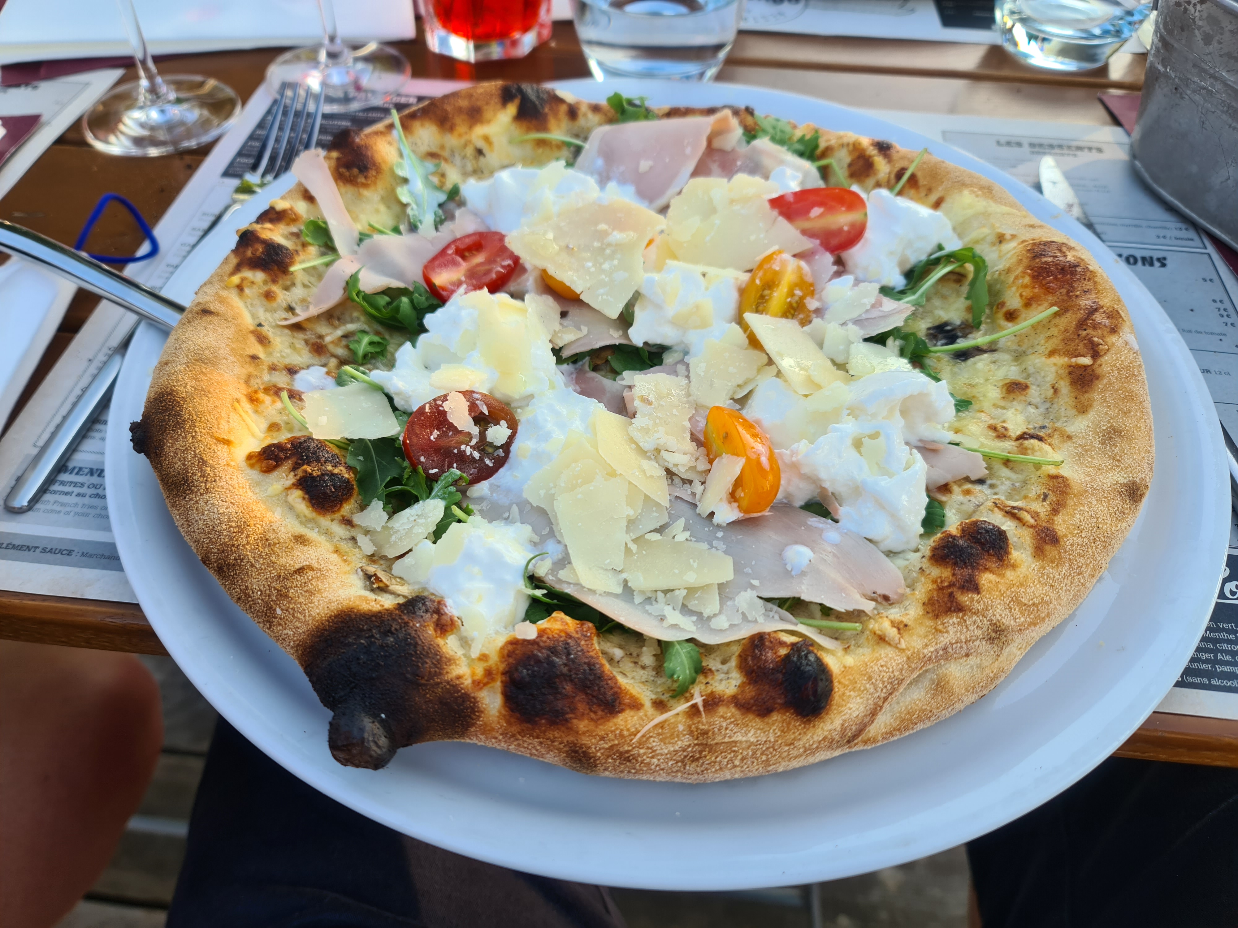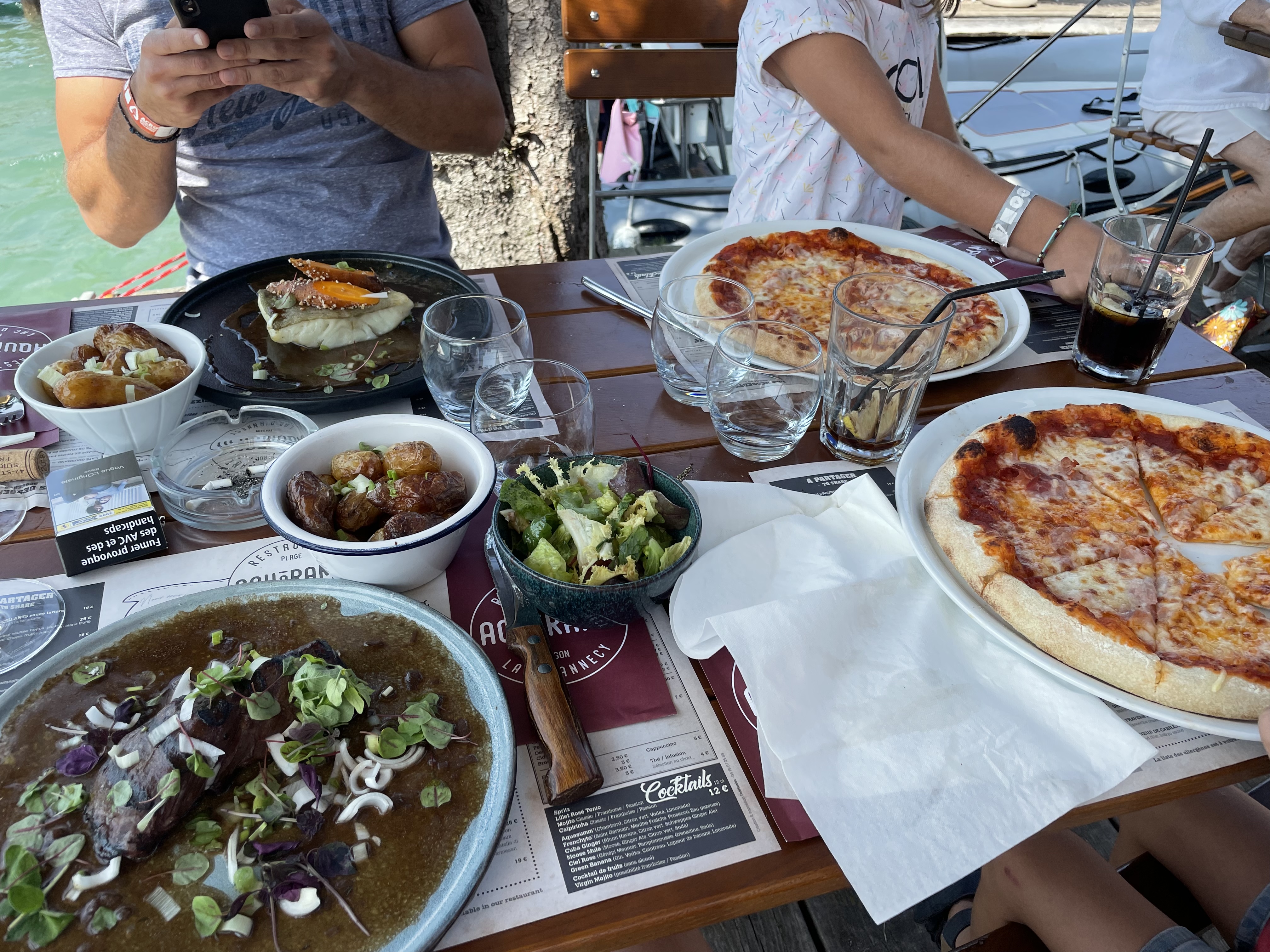 Pizzas dans les 20€, on paye le très joli cadre à proximité de Talloires et notre serveuse était sympa et souriante! Quand il pleut ou qu’il y a du vent n’y allez pas ils ne gèrent pas du tout! Bon moment, rien d’extra mais agréable!