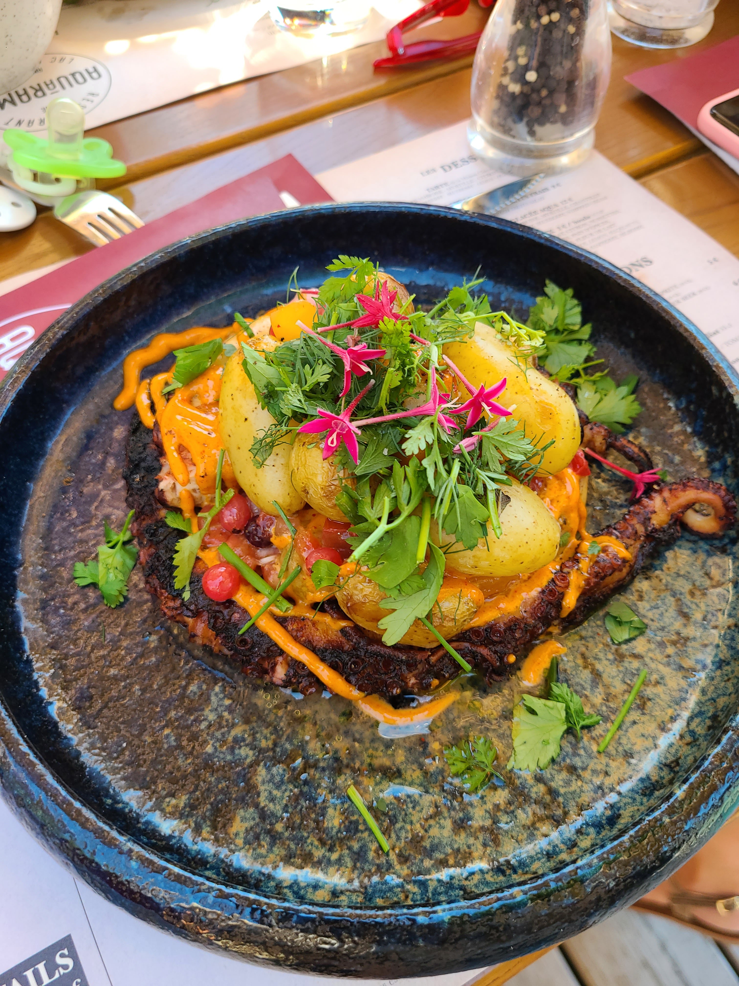 La meilleure blague du lac d’Annecy! On te sers du poulpe et tu te retrouves avec des morceaux de ribs et on te soutient que c’est bien du poulpe!Ah oui pardon je ne sais pas faire la différence entre une viande et un poisson pardon! Allez force et honneur à tous les touristes qui s’y arrêteront vous aurez deux plats pour le prix d’un!