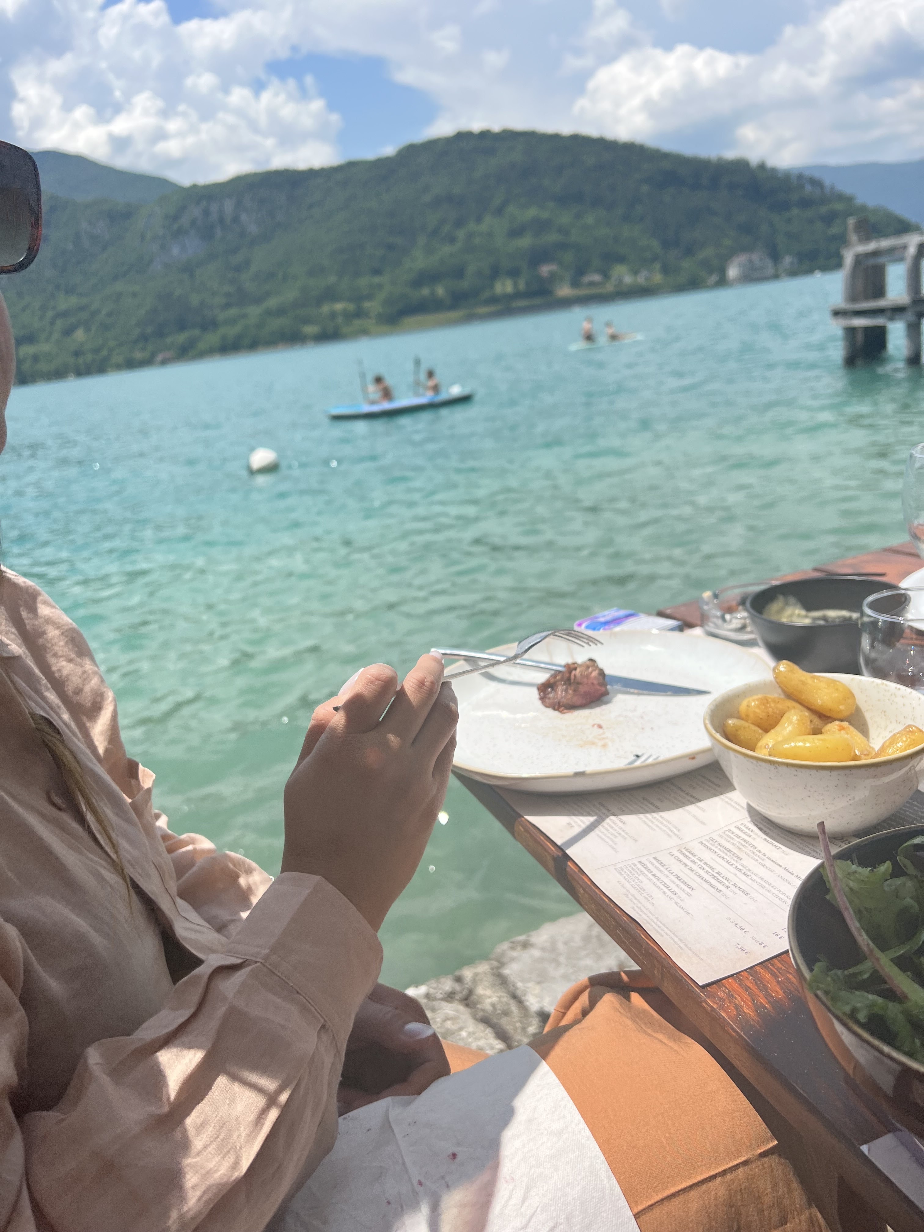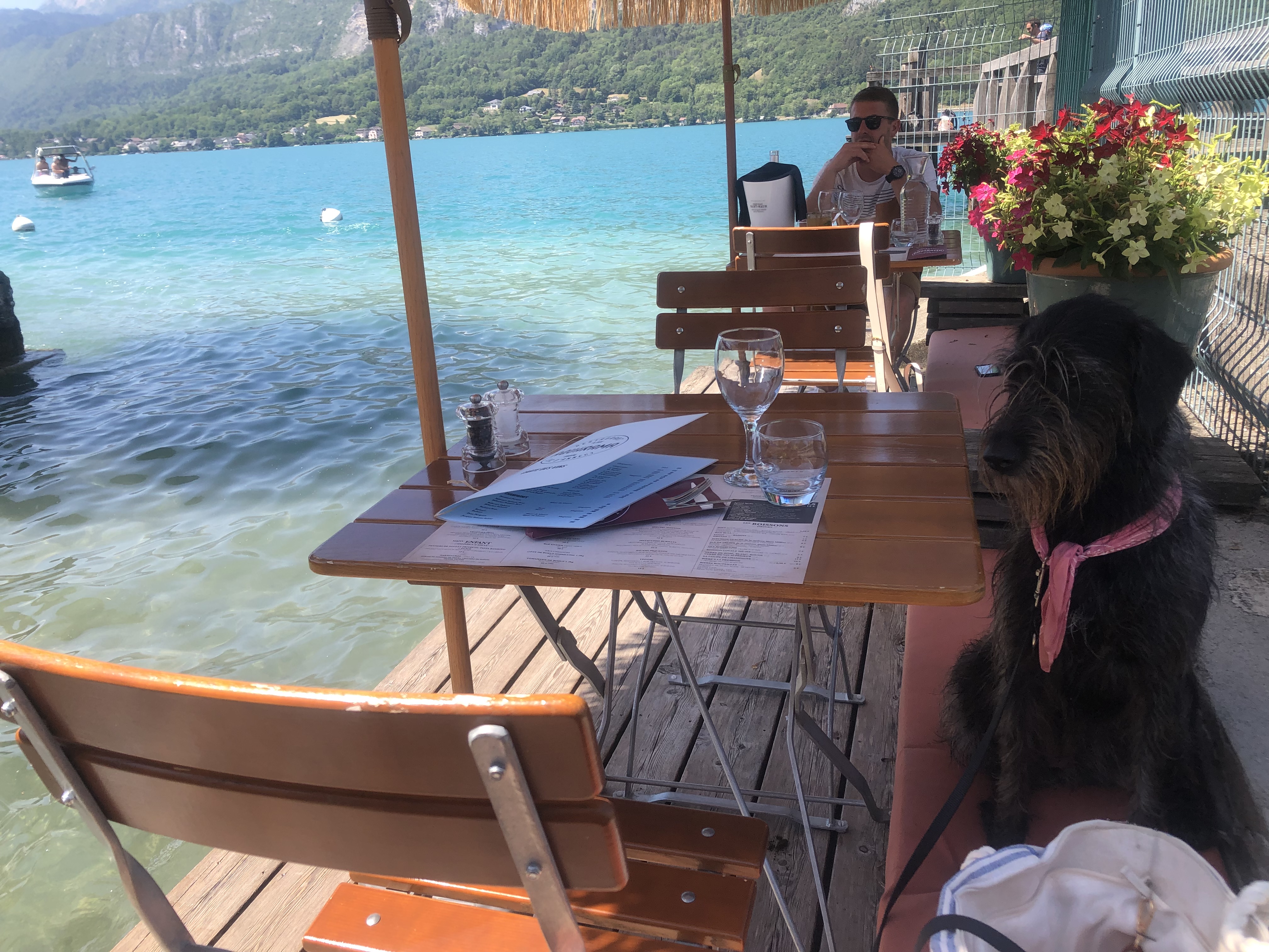 Coucher de soleil d’exception, repas très bon (poulpe, calamar fris, ribs) de très belles saveurs avec un cadre magique. Le serveur était également très sympathique. Je recommande vivement. C’était le repas final de nos vacances à Annecy et c’était top.