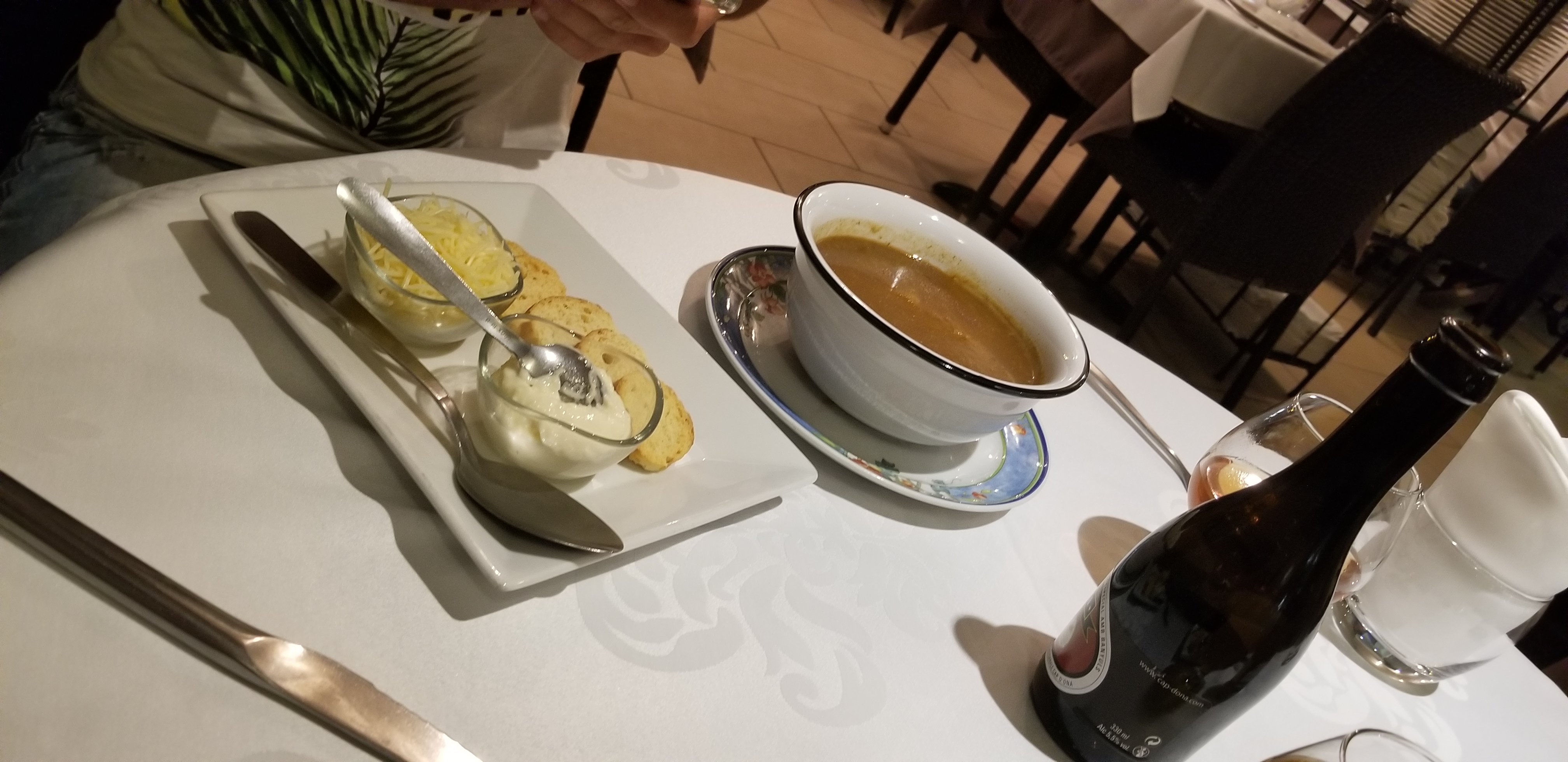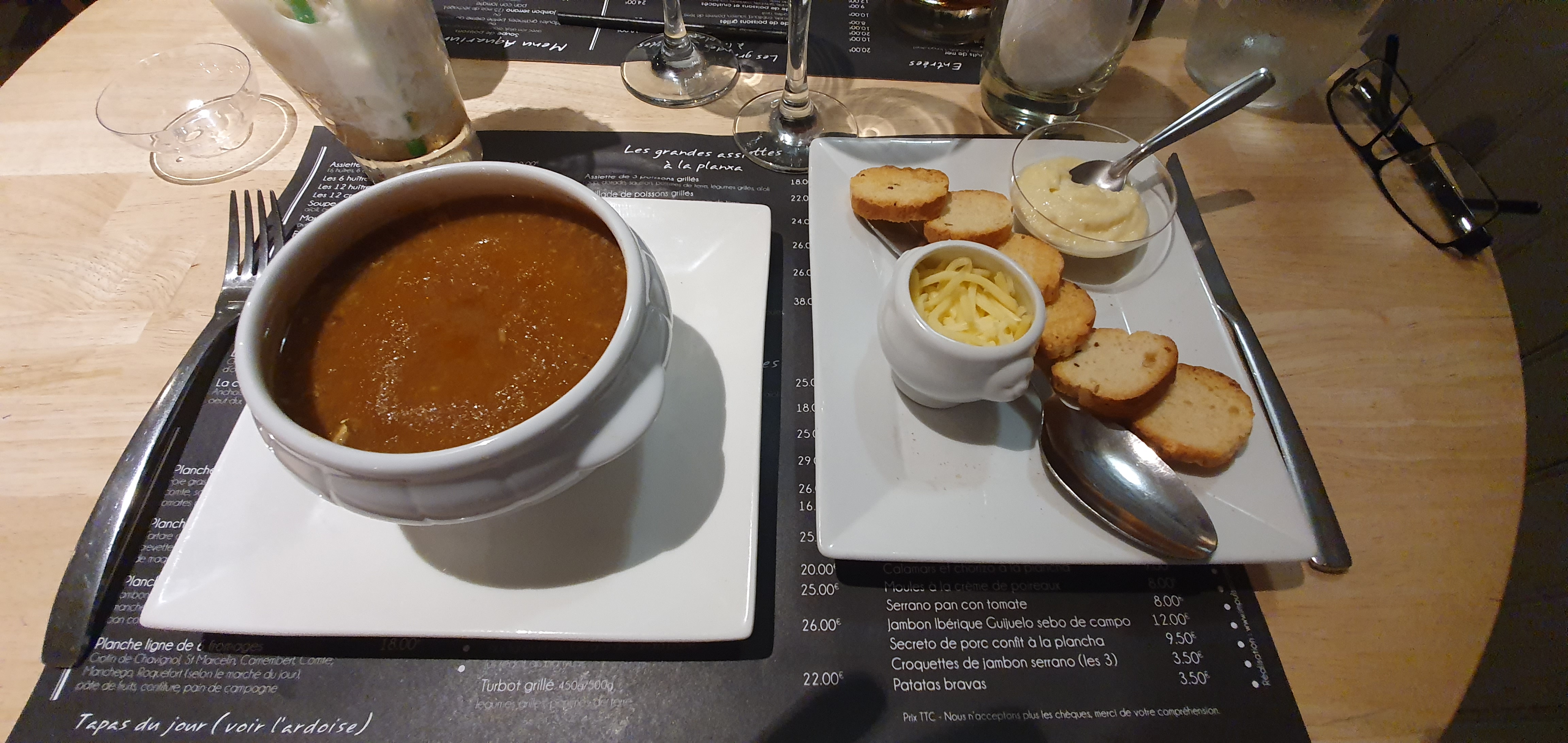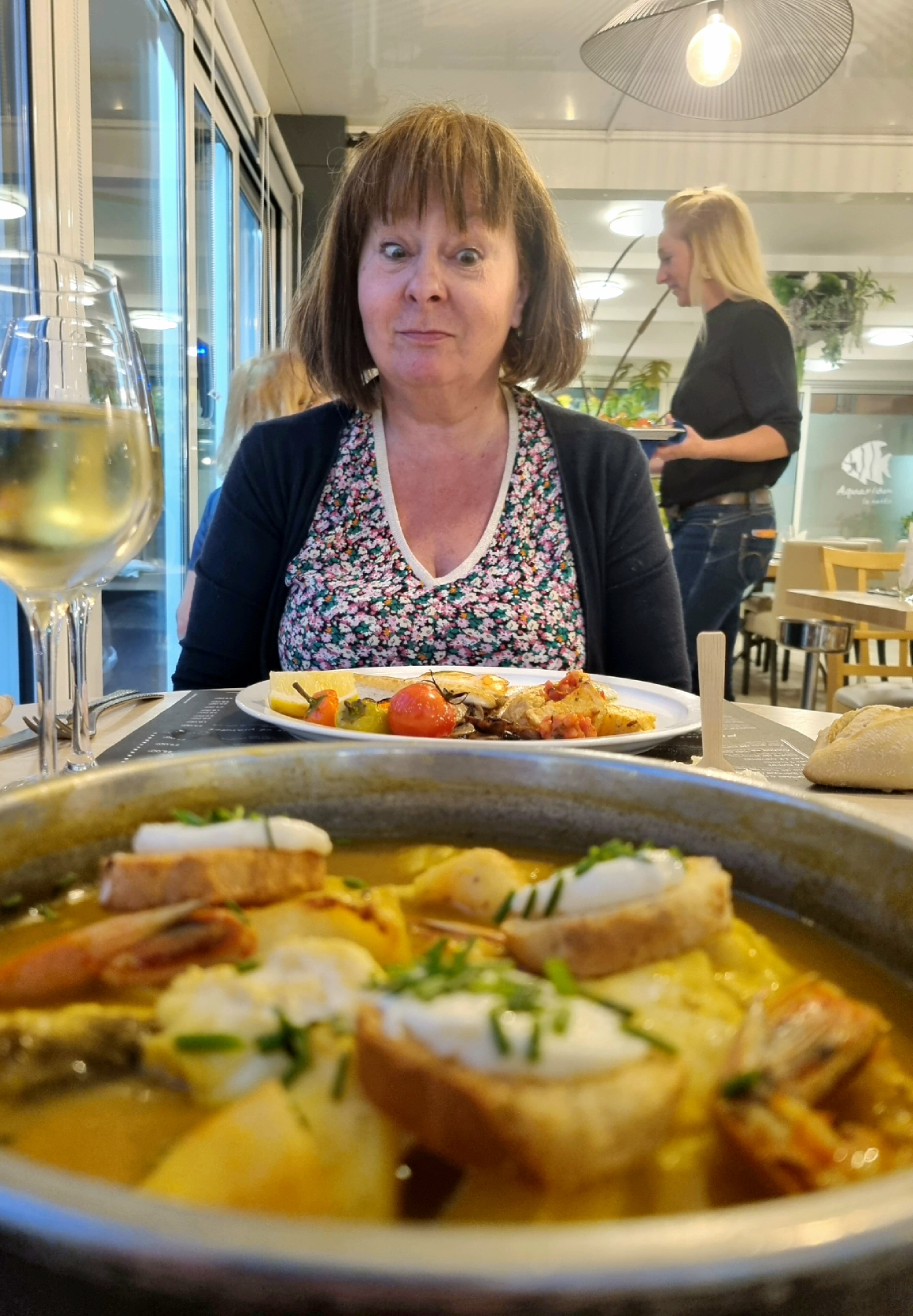 Repas du soir, très bien reçus, service impeccable! Nous avions pris des moules gratinée à l'aïoli (tapas) en entrée que l'on s'est partagé et en plat une zarzuela et une petite pêche façon bouillabaisse, tout était excellent! Si vous aimez le poisson, allez y les yeux fermés!