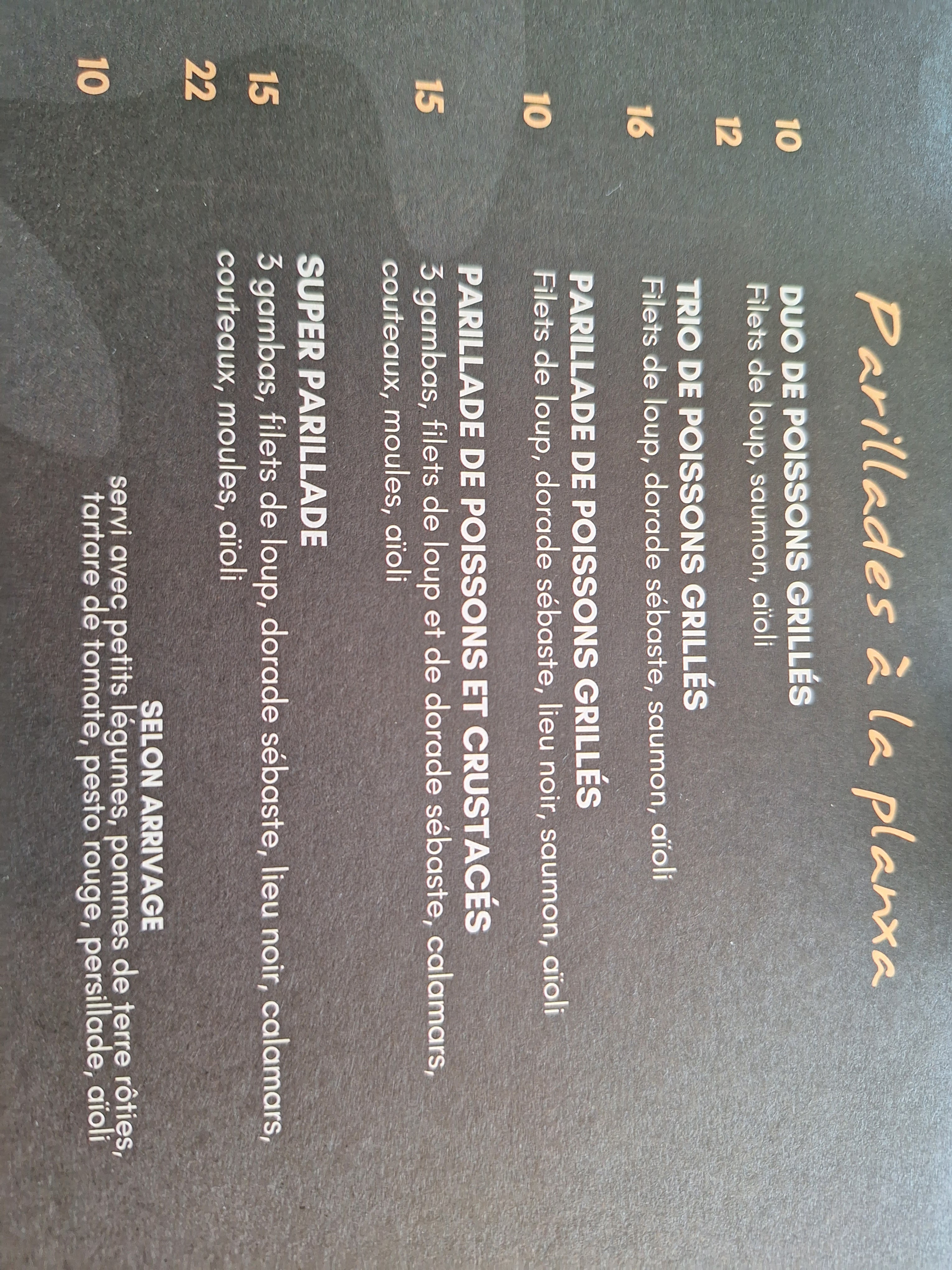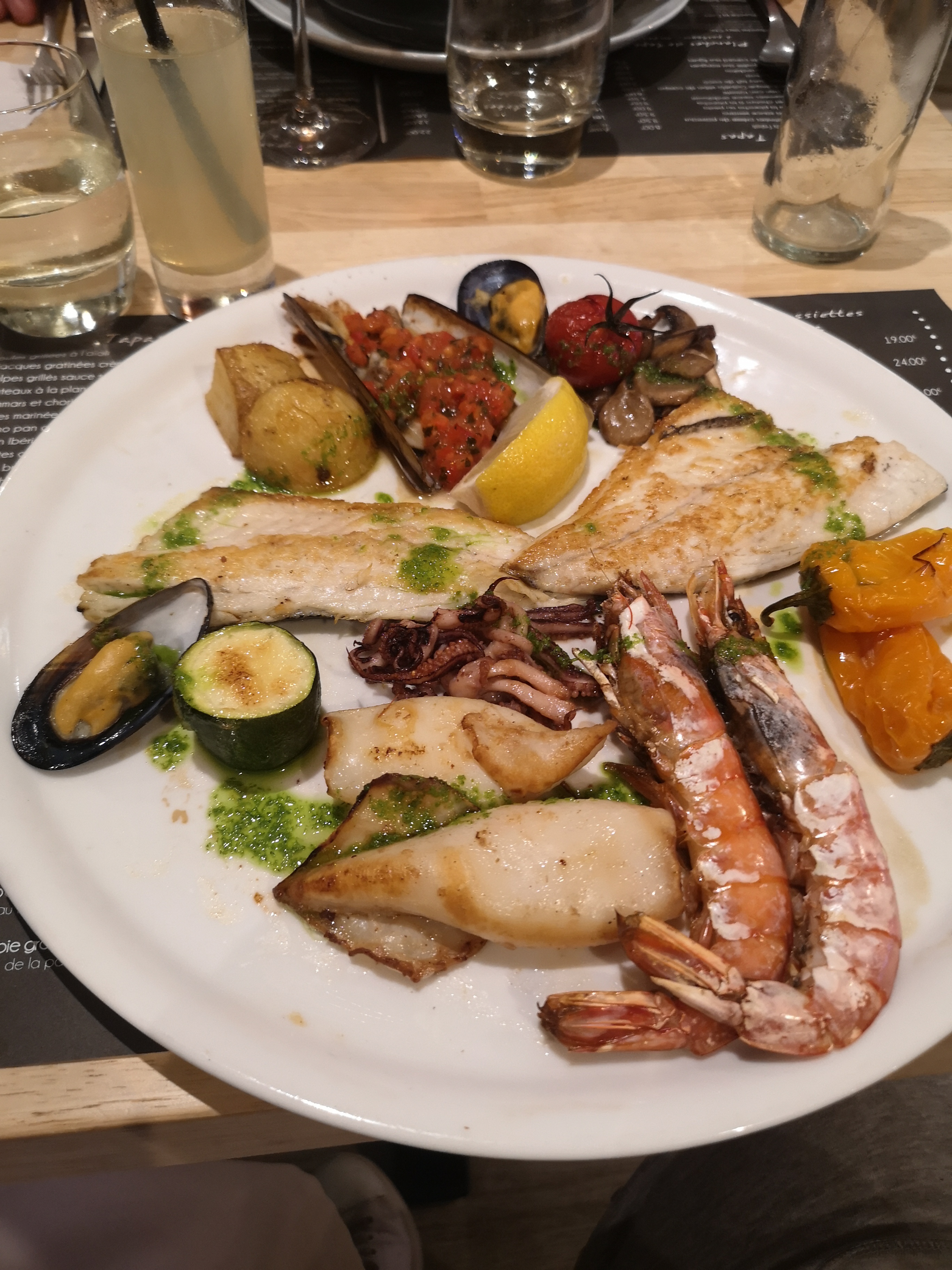 Parillades de poisson et crustacés que dire...un plat excellent, très bien granit et très très bon . Personnel au top ,merci