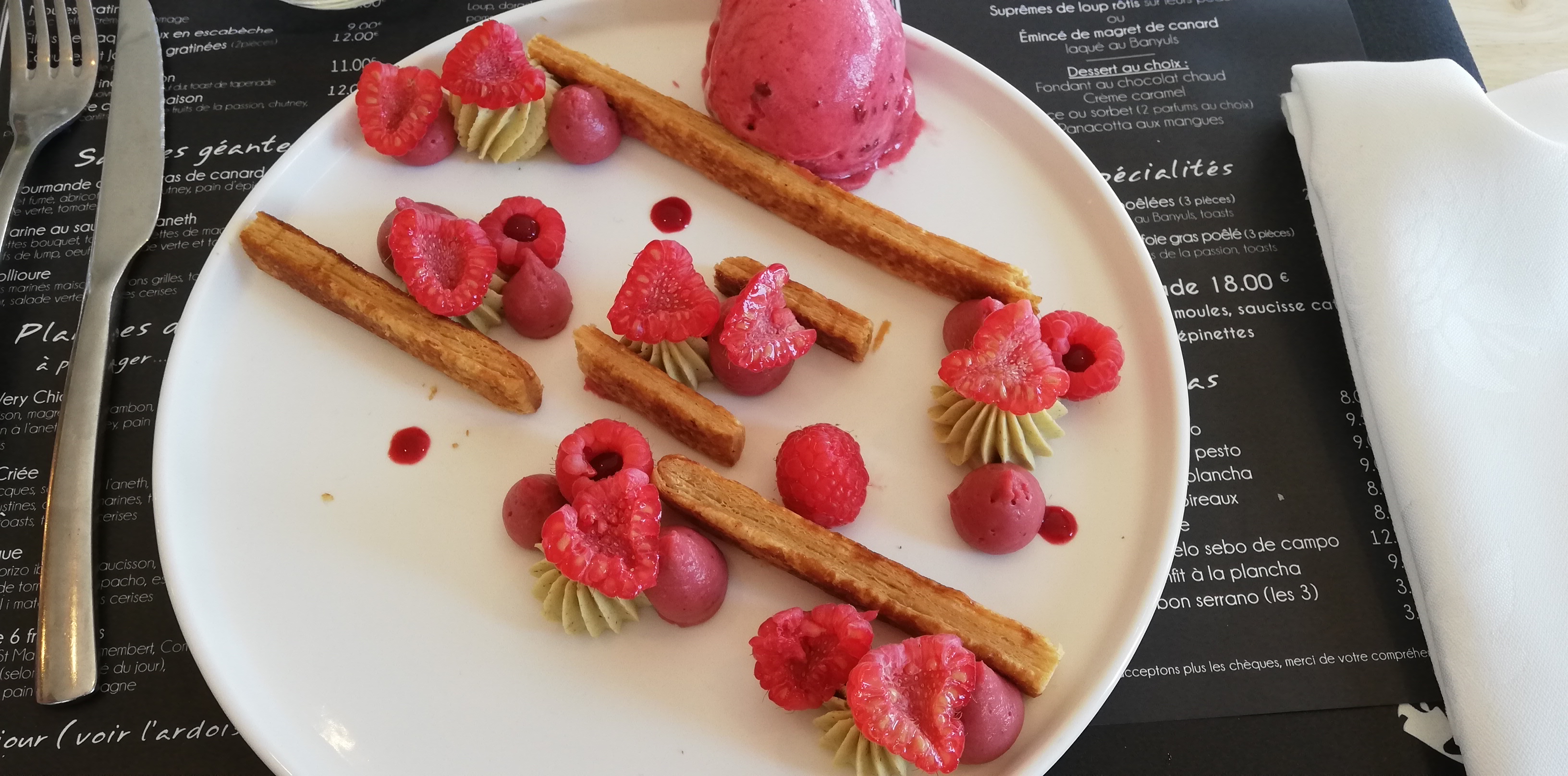 Les plats à la carte étaint délicieux (un magret au banyuls et une queue de lotte au beurre citronnée) les entrées et desserts très corrects. L’accueil et le service très très moyen, il tombait des seaux d’eau, le personnel nous à regarder nous dépêtrer avec la lourde porte, et notre parapluie sans penser à nous ouvrir. Nous avons été servie après les 2 tables arrivées après nous.