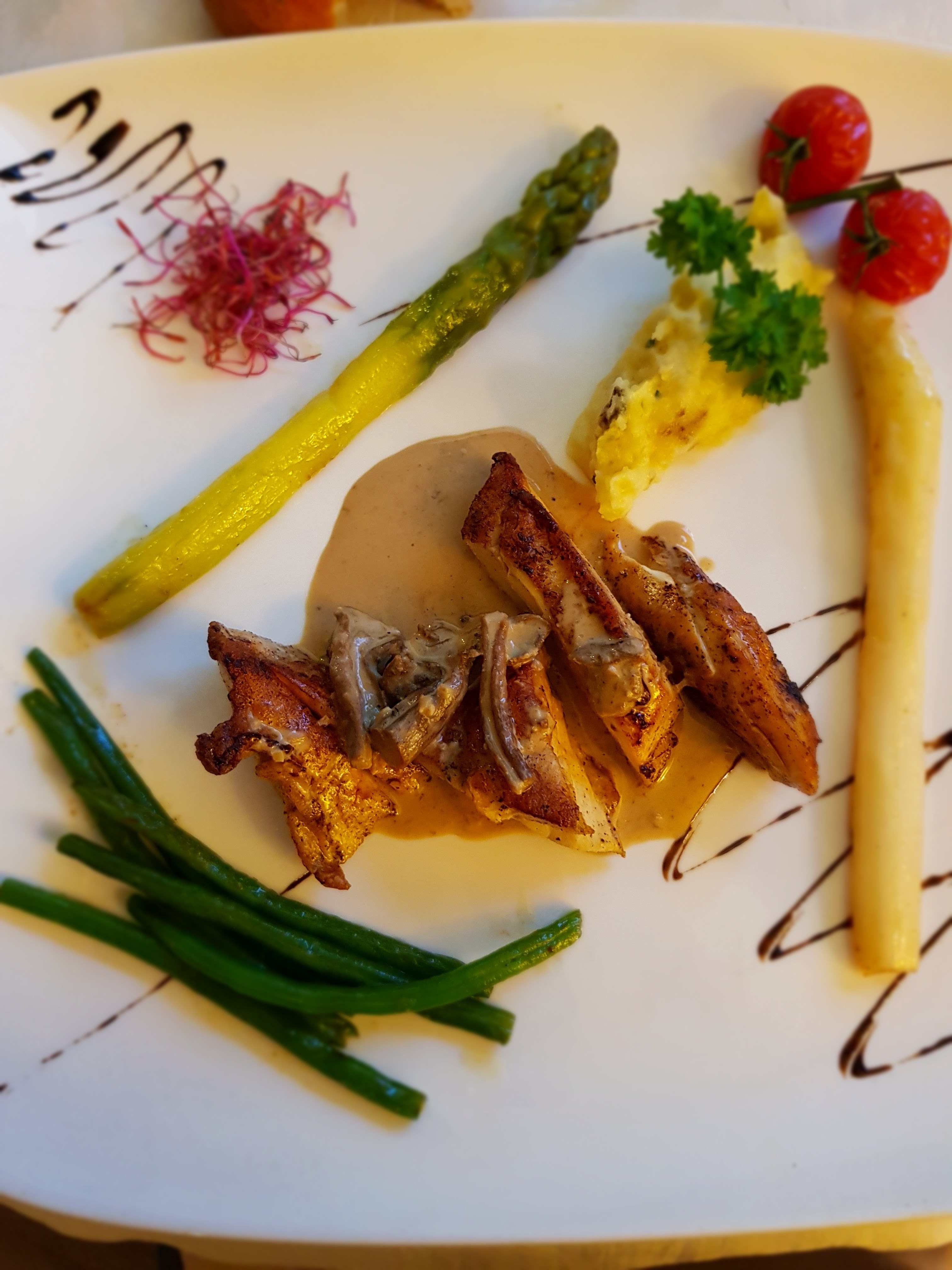 Très bonne cuisine. Le veau parfaitement cuit, les pommes de terre fondantes et croustillantes à la fois. La sauce tartare parfaite. Le tiramisu et le fraisier délicieux. Un régal.