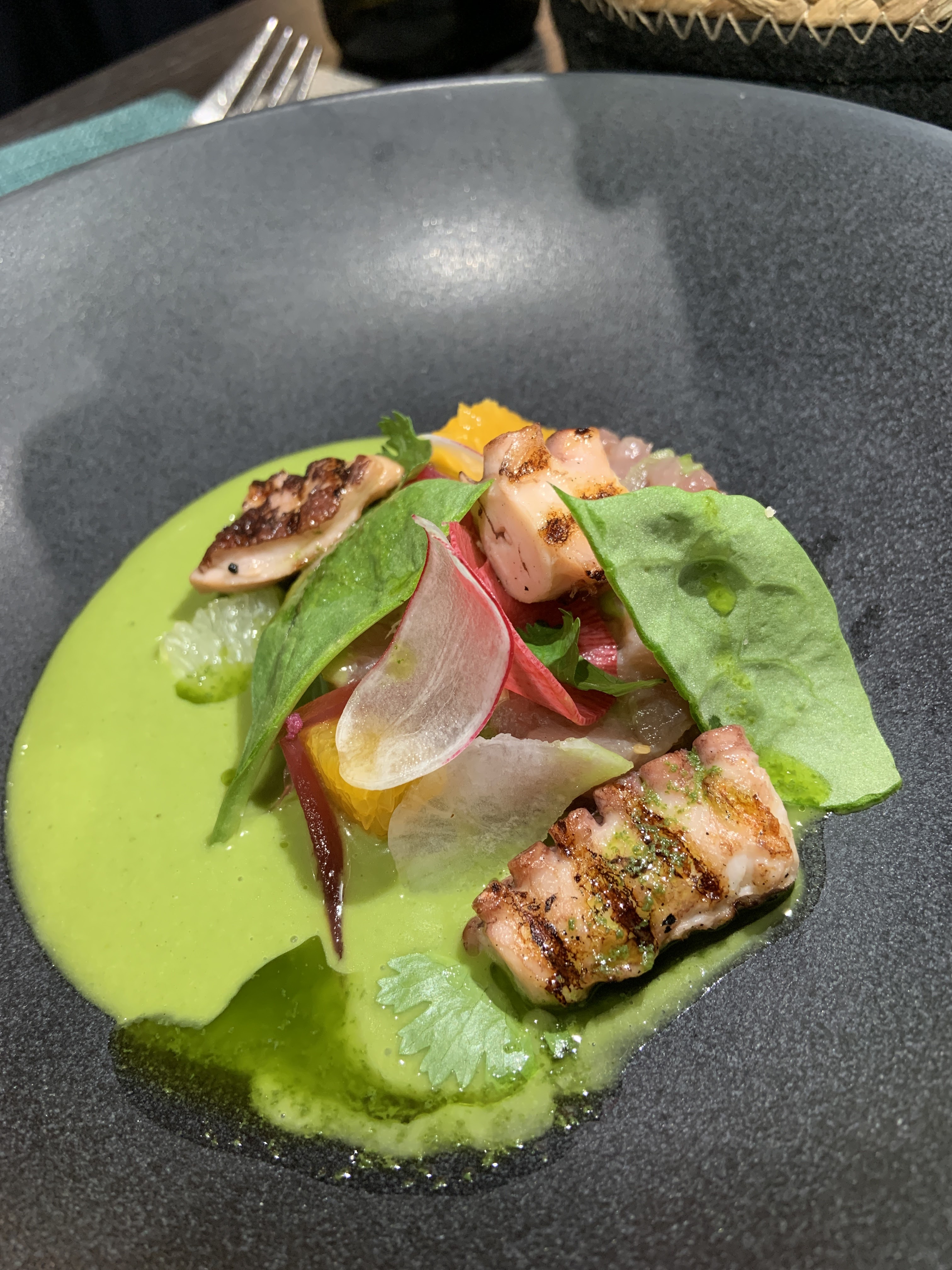 Ça devrait s’appeler « Merveilleux »… seconde fois que nous y dînons en amoureux. La cuisine est tout simplement formidable ! J’envoie à chaque fois sa carte au Michelin 😂 des saveurs franches mais qui mêlées offrent une perception différente. C’est savoureux et beau, un tableau sensoriel pour les papilles comme pour les yeux. C’est un gastronomique à accents asiatiques, mais tellement unique et représentatif du cœur du chef que je vous invite à y aller pour tester par vous-même.