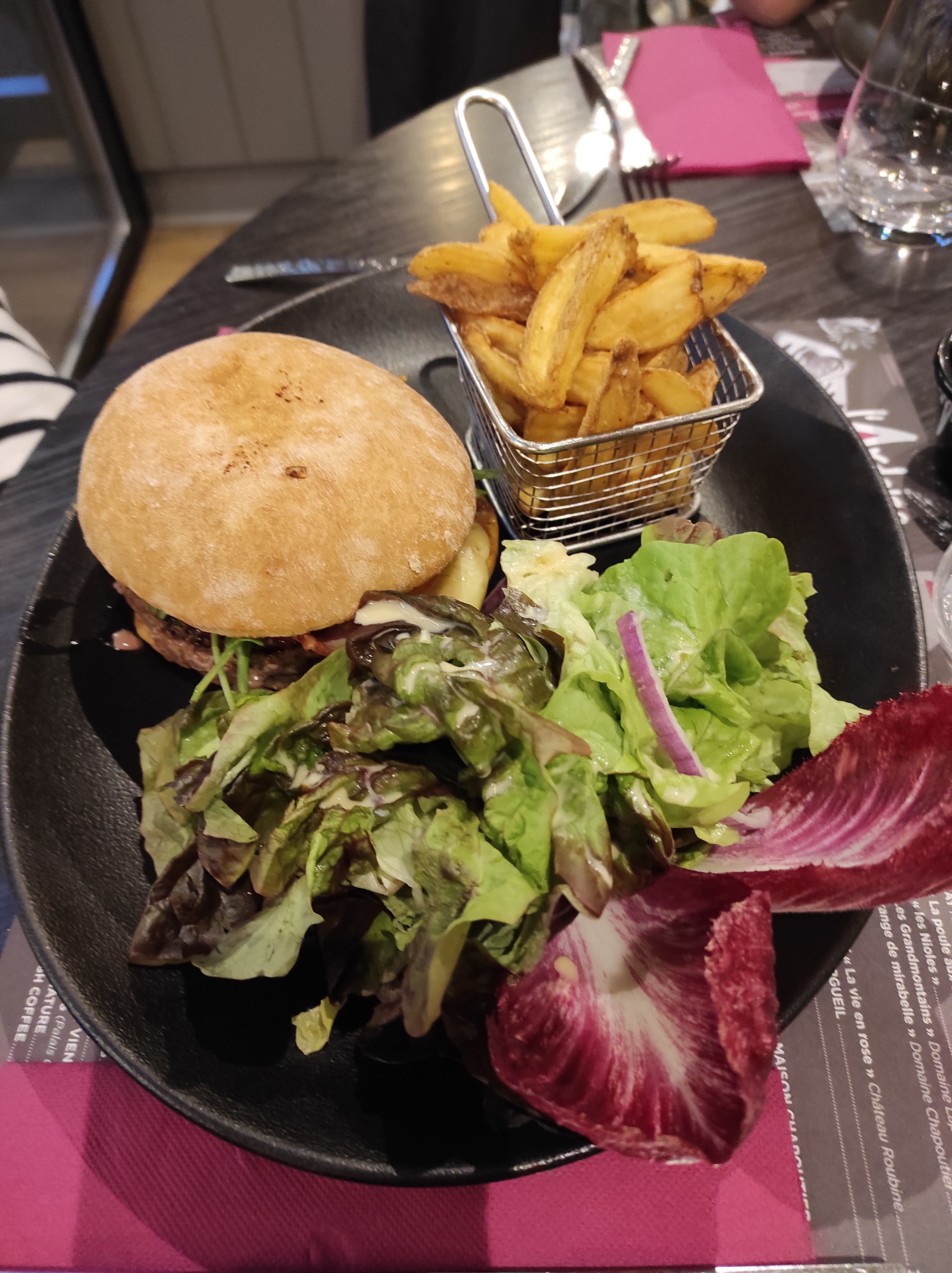 Bon restaurant. Il vaut mieux réserver avant. Le service était long, 30 minutes pour prendre notre commande et 20 minutes d’attente entre les plats… avec une serveuse antipathique. La carte du site internet n’est pas mise à jour. On nous prévient que lorsque nous sommes installés que le four à pizza est en panne. À 18,10€ le Burger on s’attend quand même à des frites maison. On a bien mangé mais au vu des prix nous n’avons pas prix de dessert. 68€ pour deux plats, une planche de charcuterie/fromages et 1 Schweppes… Nous n’y retournerons pas forcément