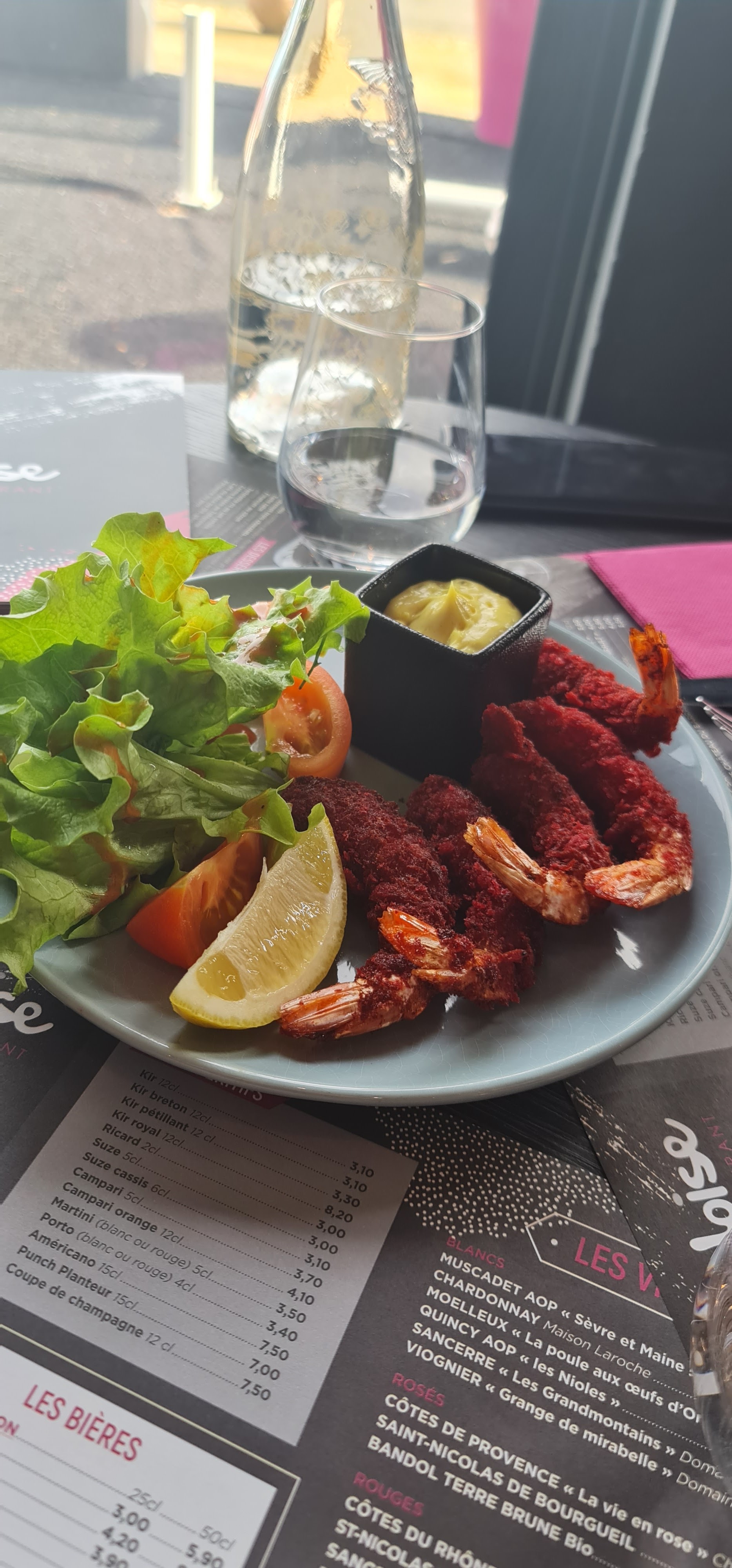 Nous y avons dejeuner a 3 personnes. Restaurant très bien placé sur le port, parkong juste a côté, acceuil simple. Tres joli cadre. Noys avons pris 3 menus a 40€ entrée, pkat, dessert accompagné par 50cl de vin blanc un Quincy , un apéro et un café. Je n'ai pas trop aimé l'entrée gambas croutillant au panko , le plat j'ai adoré cotriade de lotte et coquilles st jacques, dessert mi cuit chocolat sesame pavot et 2 cafés. Le tout pour 148,50€, j'ai trouvé bon mais un peu cher c'est pour ça 3 etoiles....Comme c'est un coin très touristiques on peut trouver aussi bien a moins cher....