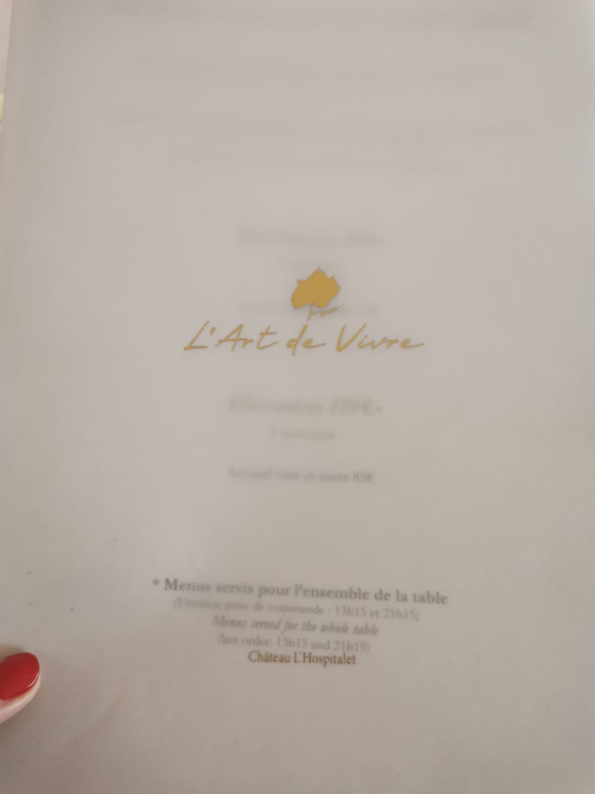 De notre arrivée au Château à notre départ en passant bien sur par L'art de Vivre nous avons savouré des moments délicieux. Nous avons choisi le menu mets et vins 5 plats ...sans compter les dégustations à l'apéritif et un sorbet à la moutarde d'une fraîcheur et d'une saveur surprenantes et explosives. Une vraie réussite. Le cadre, l'accueil, les vins, le dîner, le service ... tout était parfait. Merci à Nathan et Hugo pour leur professionnalisme. Ils nous ont servi le dîner et les vins avec leur sourire et leur bonne humeur. Merci au cuisinier pour ses belles idees aussi belles que délicieuses.C'etait un grand moment de plaisir.