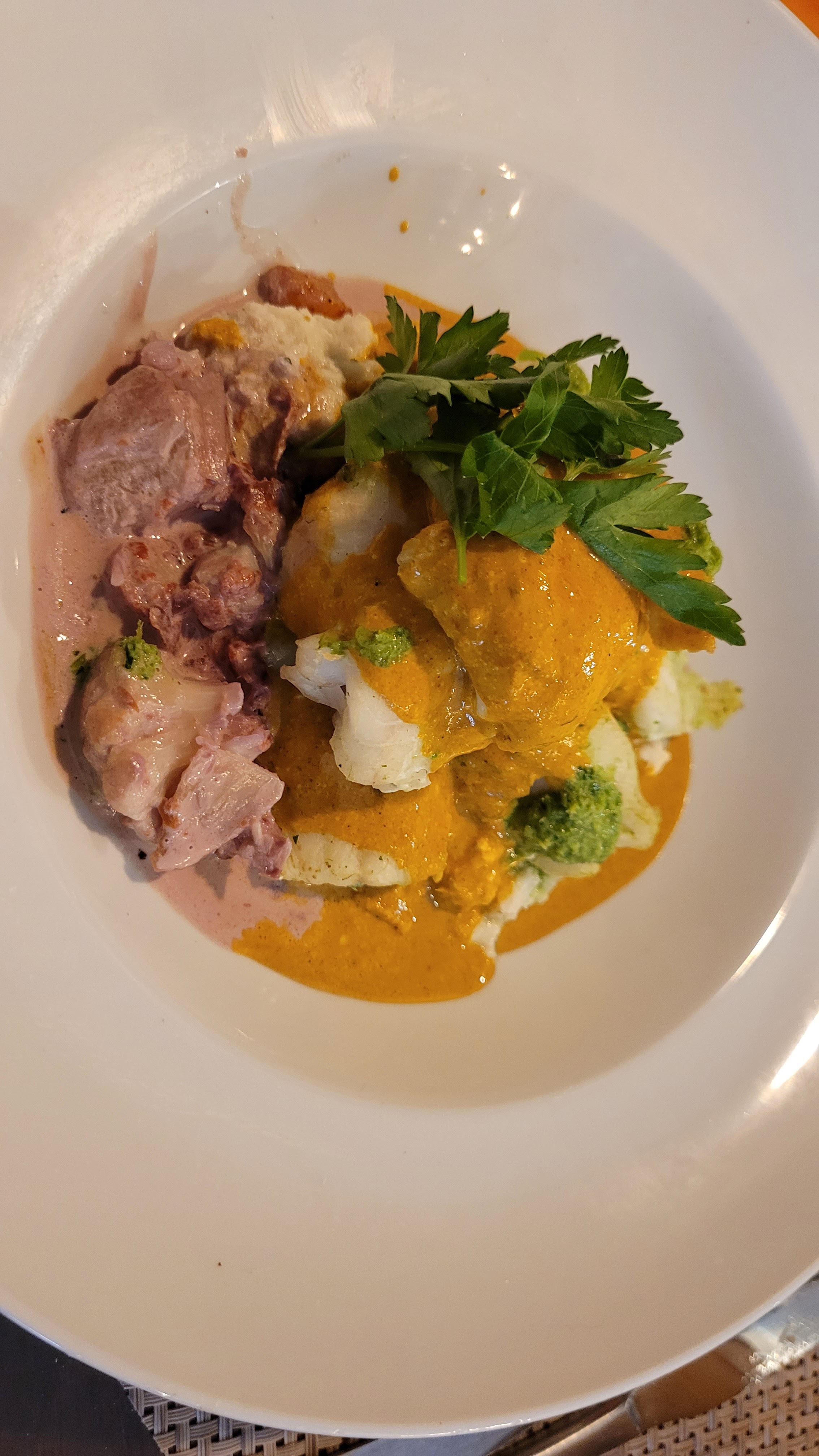 Rien à redire. Accueil très chaleureux, bonne explication des plats. Entrée/plat originale et fait avec des produits frais et de saison. Le chef a vraiment un savoir faire, mélange de culture et de saveur. Un vrai régal. La serveuse est très souriante et très agréable. Bref, un moment délicieux passé dans cet établissement. Prix plus que correct pour la qualité et la quantité! Merci encore