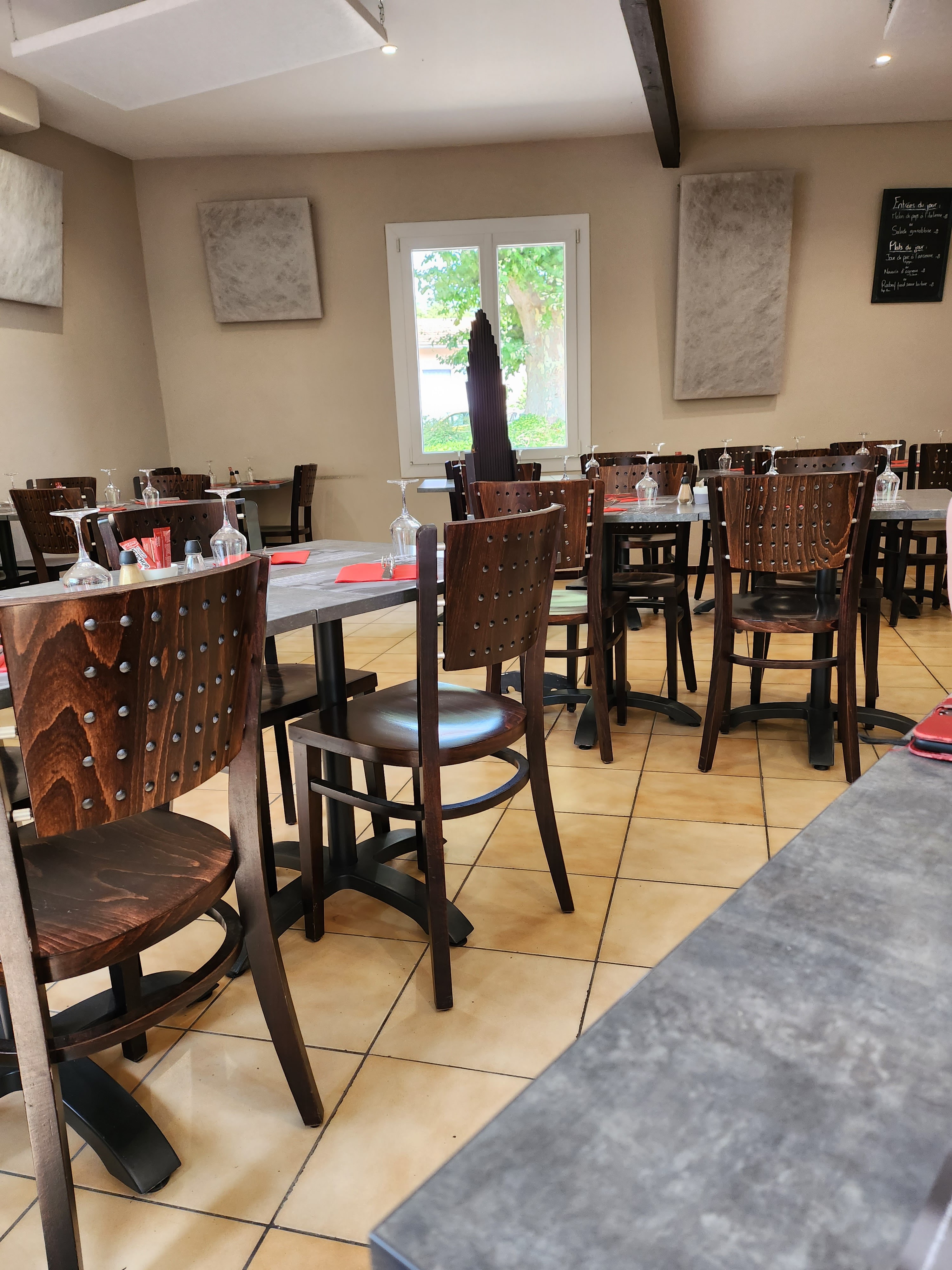 Bons plats, prix très raisonnables (1,5€ le kir et il est très bon), vaste terrasse ombragée, personnel très sympa. Le patron est bienveillant: il s'inquiète plusieurs fois du bien-être des clients. Parking aisé et gratuit. Resto en face de la mairie.