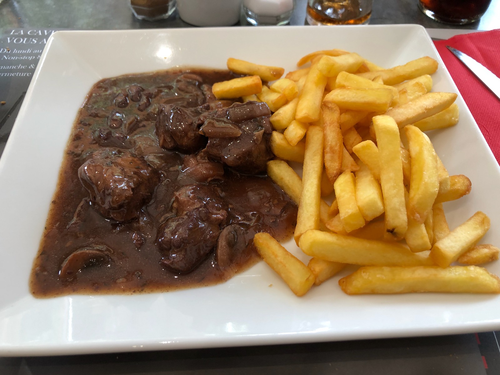 Très bon magret de canard, saumon avec sauce sabayon, daube de boeuf...sans prétention... J'adore