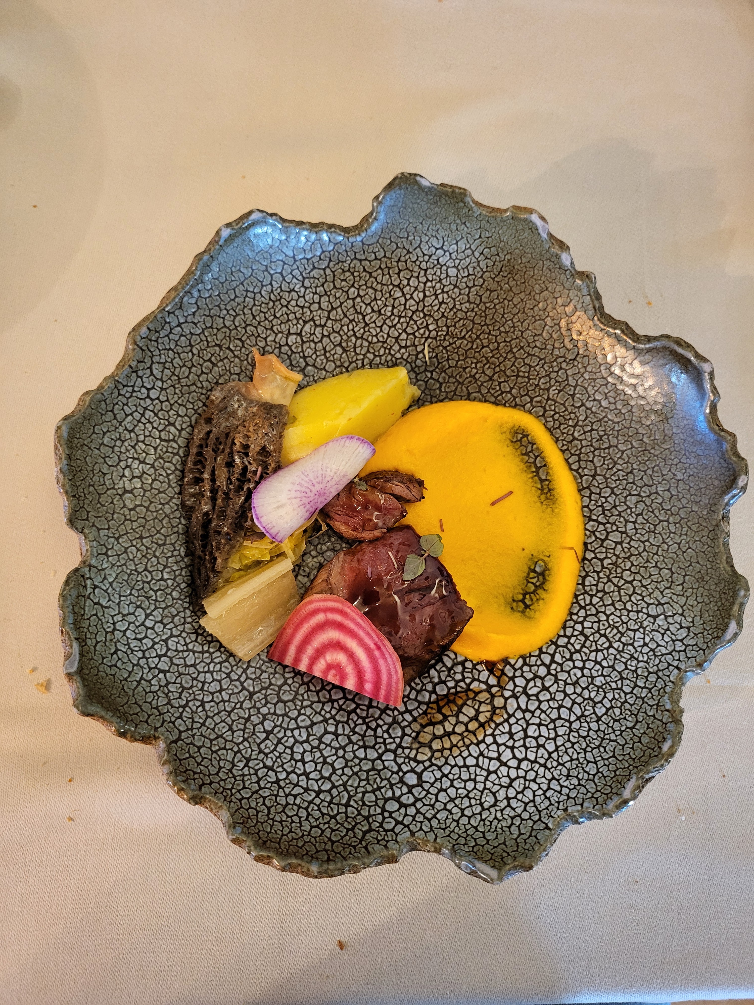 Qualité de très bonne facture Mets fins et raffinés Mélange de différentes saveurs Par contre très petites quantités dans les.plats