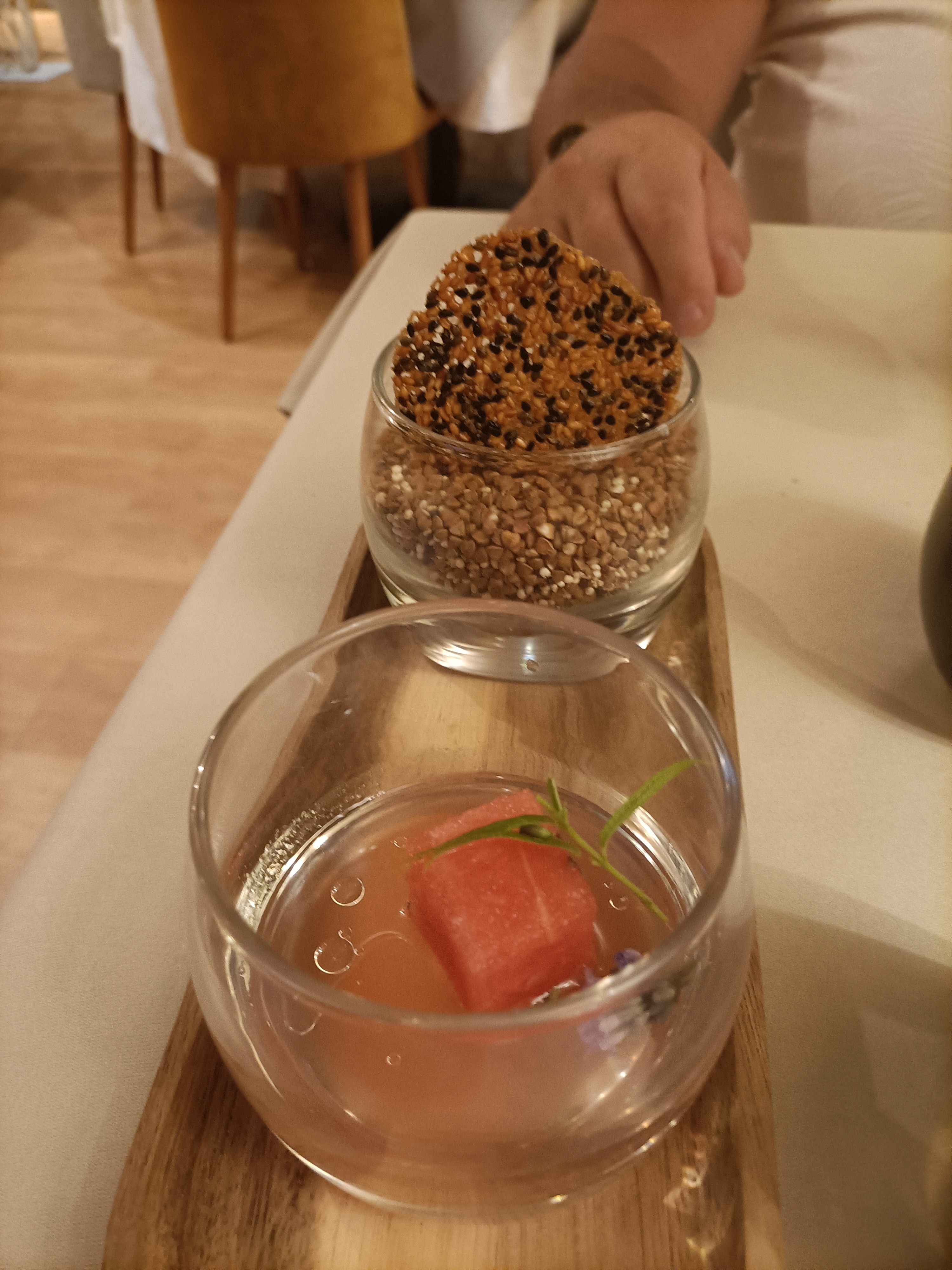 Découverte de ce restaurant qui mérite d'être sur le guide Michelin en étoilé. Ambiance très agréable et conviviale, service très à l'écoute tout en étant dans la discretion, mets proposés très recherchés tout en nuance et avec beaucoup de sensibilités artistiques et de goûts. Bravo au chef et à sa femme et à son serveur très sympathique.