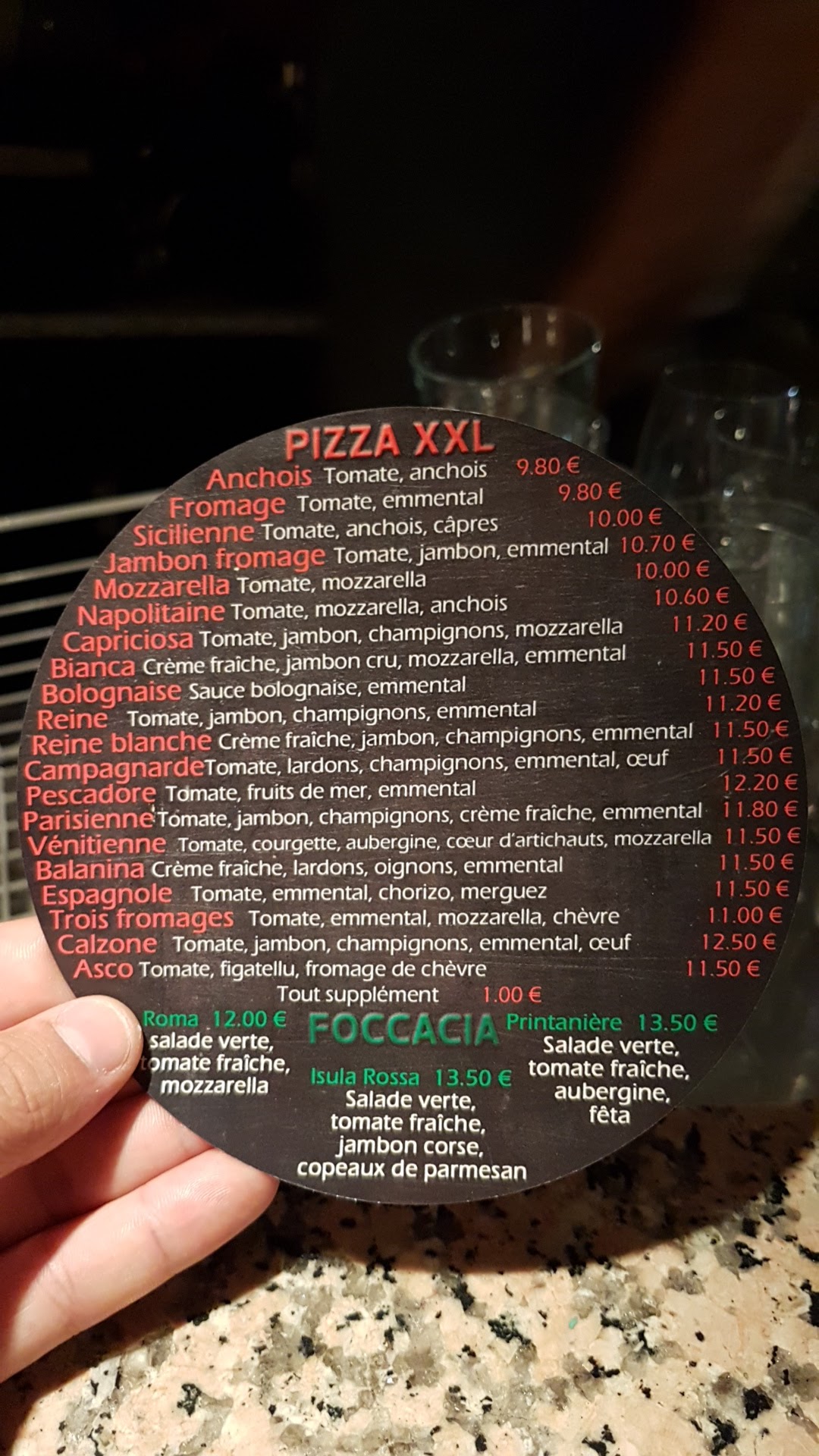 Très bon accueil. Nous avons pu dîner à 22h sans aucun problème. Très bon rapport qualité/prix. Les Pizzas et focaccias sont délicieuses et les prix raisonnables. Le cadre est vraiment très joli.