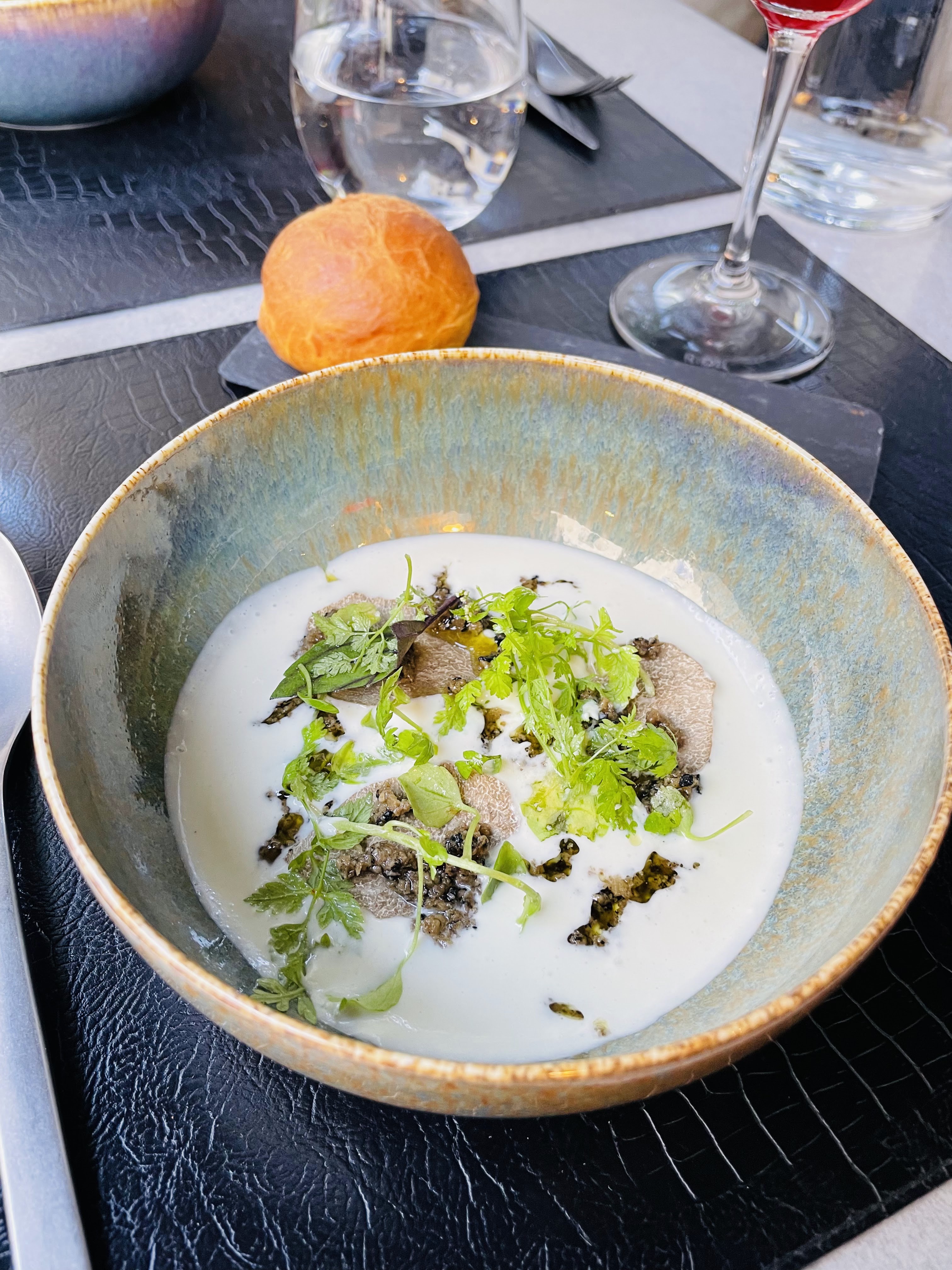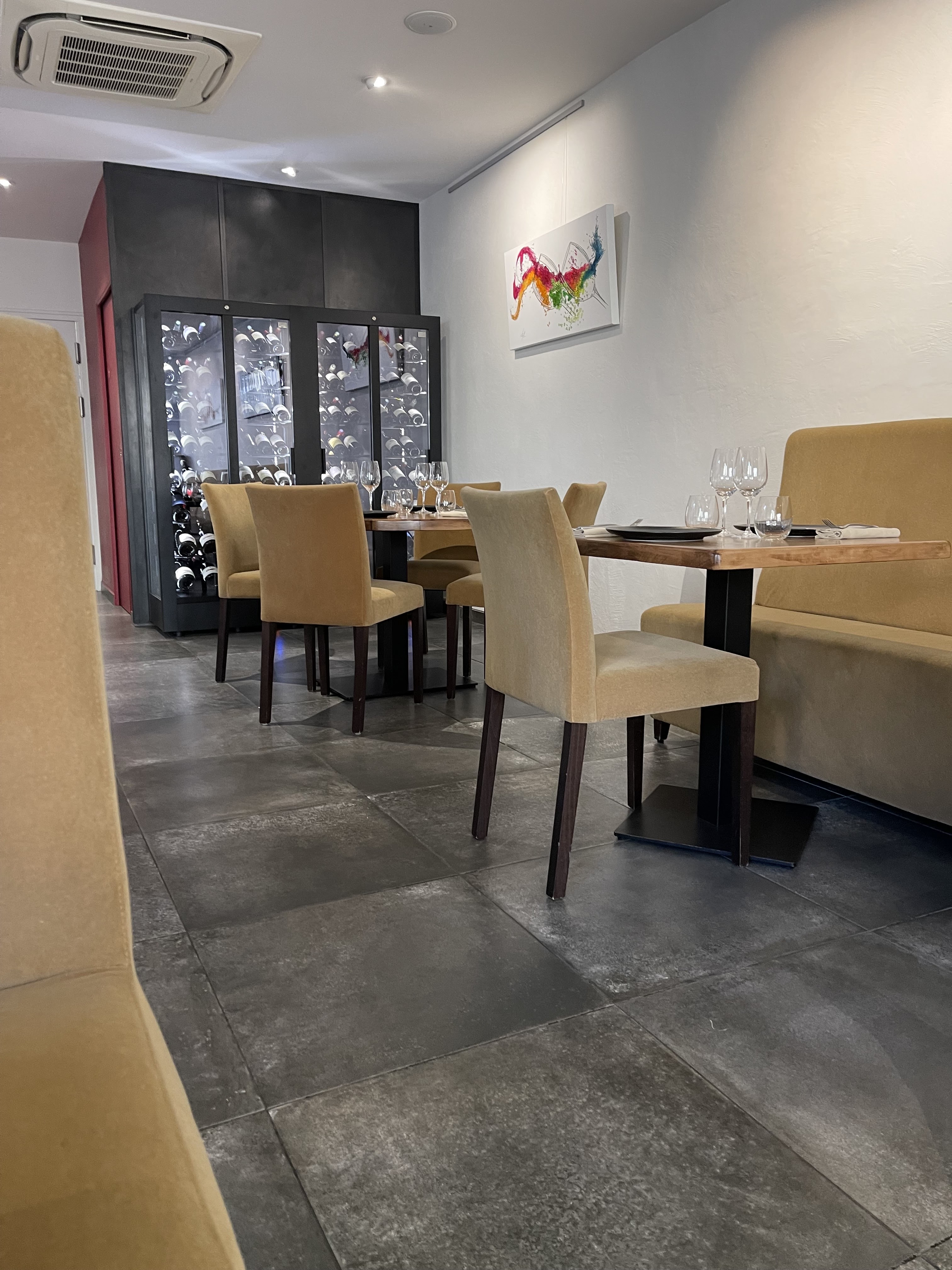A mon arrivée, à peine la porte franchie, la douce ambiance de ce lieu m'a envahie. L'accueil charmant qui en a suivit à conforté mon sentiment. Une très belle cave entièrement vitrée, agrémente ce lieu chic et intemporel. Une collection de flacons de tous cépages et destinations m'ont ravis les mirettes... Et puis le temps est venu de déguster la cuisine du Chef, qui n'est autre que Cyril Haberland, dont la réputation dans les plus grandes maisons n'est plus faire. En effet un déferlement de textures et de saveurs ont régalées mes papilles. Une aberration que le très célèbre MICHELIN n'est pas cette année 2023, donné au moins une étoile à ce chef surdoué. En tout cas, adresse à découvrir ou à redécouvrir de toute urgence... Encore merci Anne, pour votre charmant accueil et Cyril pour ses délicieuses compositions culinaires.