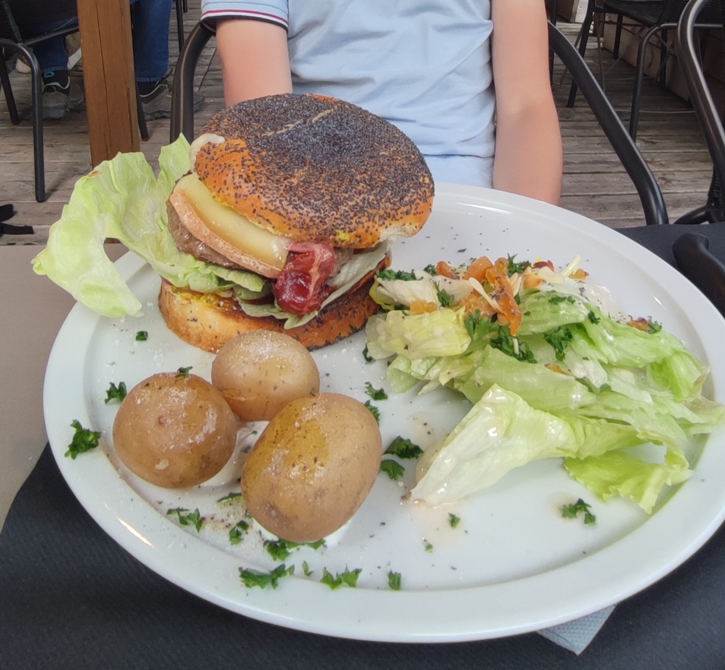 Ben vous accueil dans un petit restaurant avec cuisine ouverte comme à la maison. Ici on mange des assiettes complètes servi avec de la salade iceberg et des pommes de terre fondantes, pour moins de 20€ ont repart le ventre bien rempli. Burger délicieux avec possibilités de changer les ingrédients