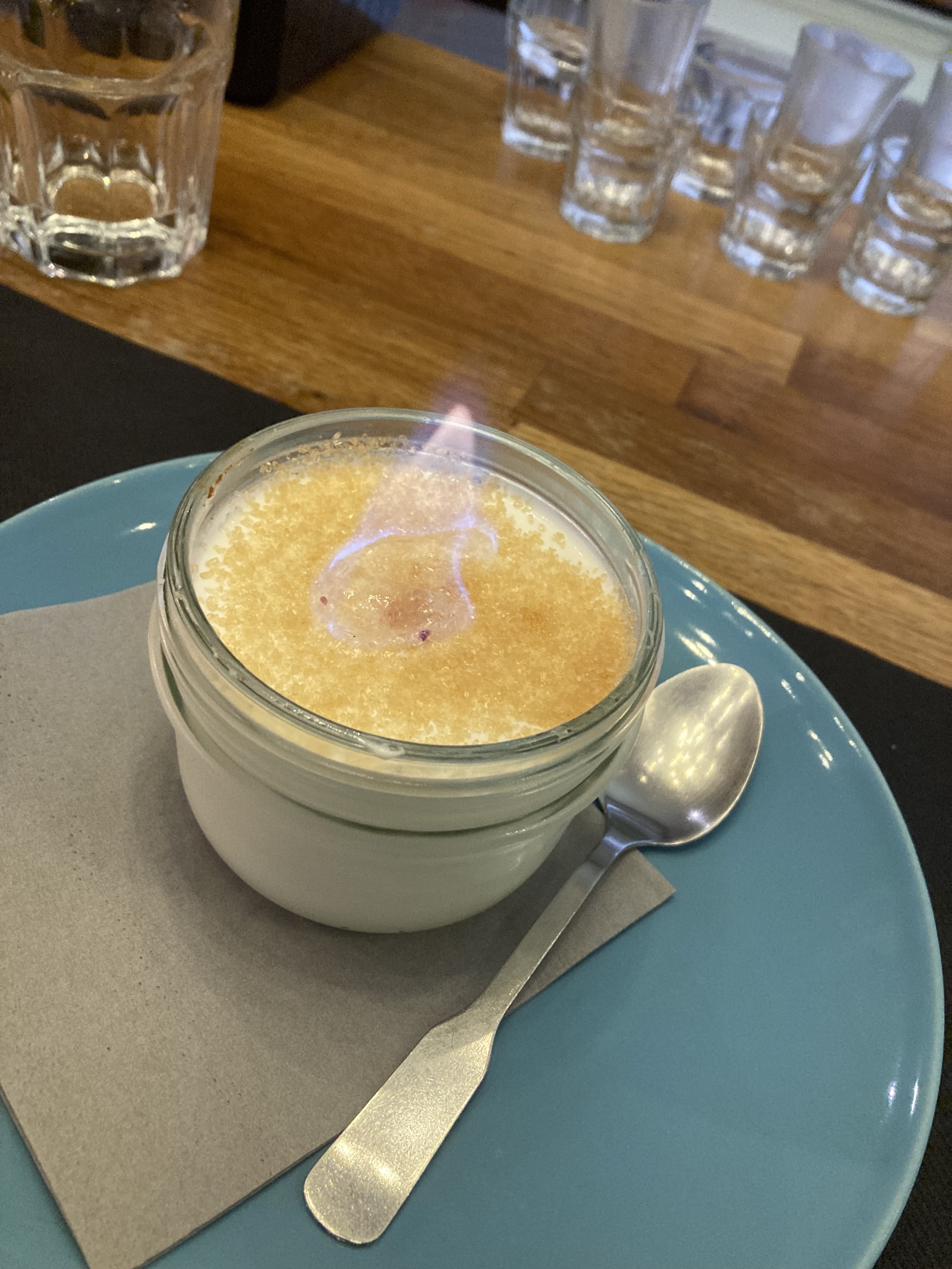 Impatient de connaître le lieu, mes attentes ont étés comblés. Étant seul j’ai mangé au comptoir pile en face du chef qui avait des échanges super sympa tout en s’affairant aux fourneaux. Moi choix c’est porté sur la pluma un plat dont je raffole et j’ai prit grand plaisir à déguster avec des accompagnements aussi variés que surprenants (et très bons) notamment une petite glace (goût secret, à découvrir). Une petite panne cotta maison au caramel flambé pour faire glisser tout ça et le tour était joué, la surprise allant jusqu’à l’addition aussi douce que le dessert. Petit lieu (penser à réserver) qui vaut vraiment le détour. Encore merci je me suis régalé !
