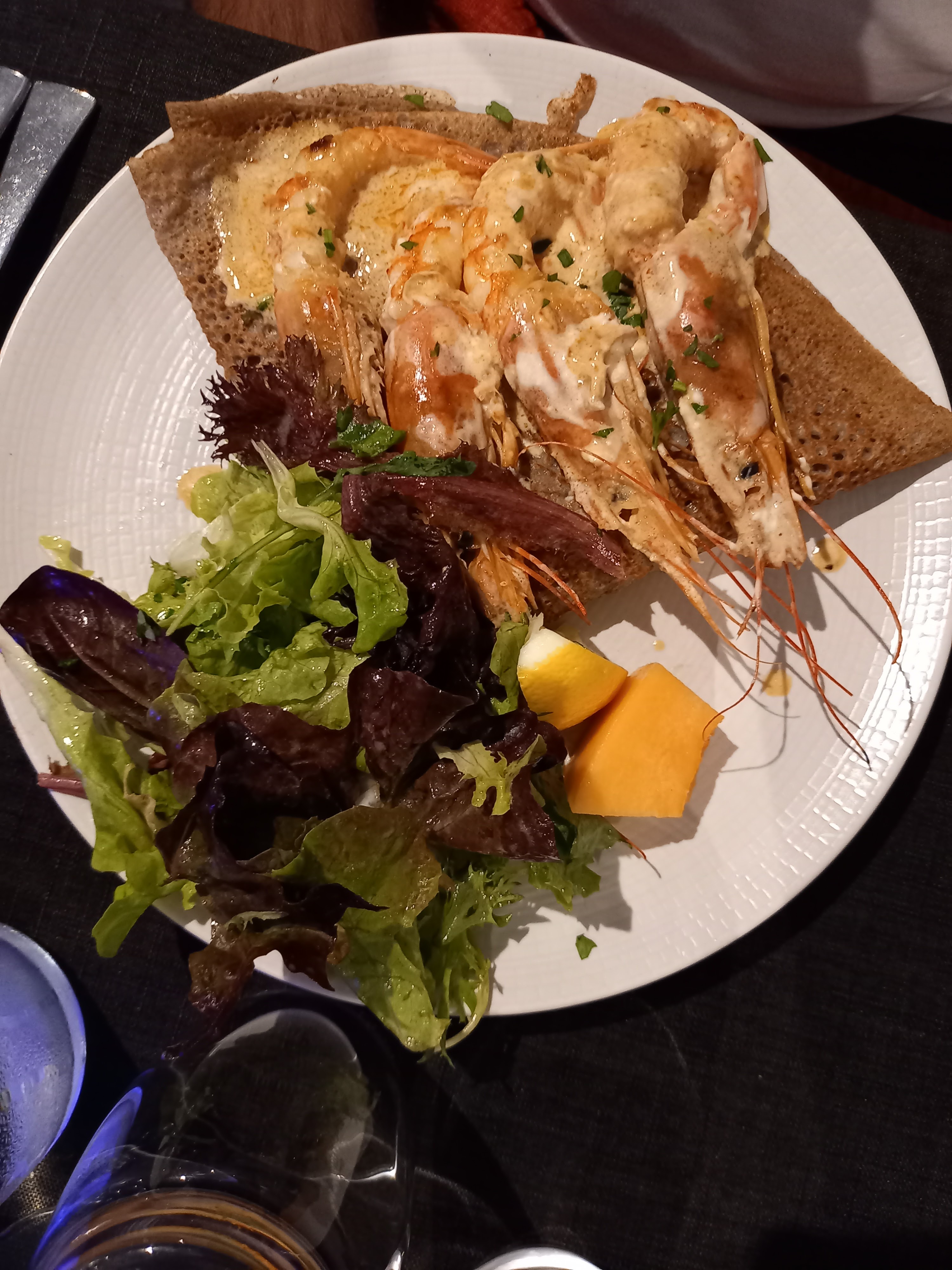 Très bon resto , les crêpes étaient très bonne et la salade qui accompagnait était très bonne aussi serveur et cuisinier très sympa , cadre agréable .