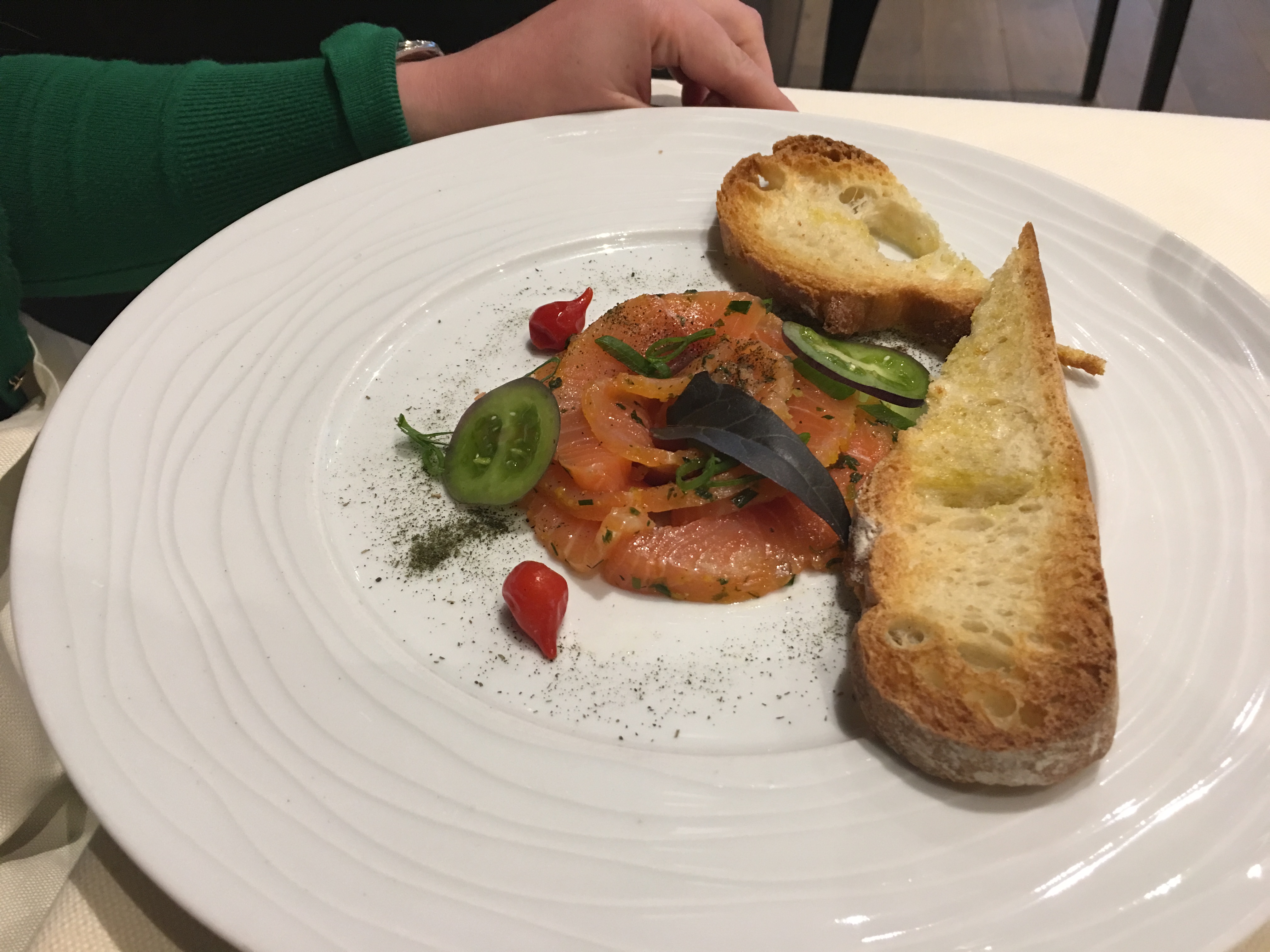 Très belle salle, service assez rapide. Très bonne cuisine. Entrée, longue de thon, succulente. Plat principal, boeuf cuit à la perfection, mais présentation très basique, surtout après le dressage de l'entrée. Dessert, financier aux amandes, succulent aussi.