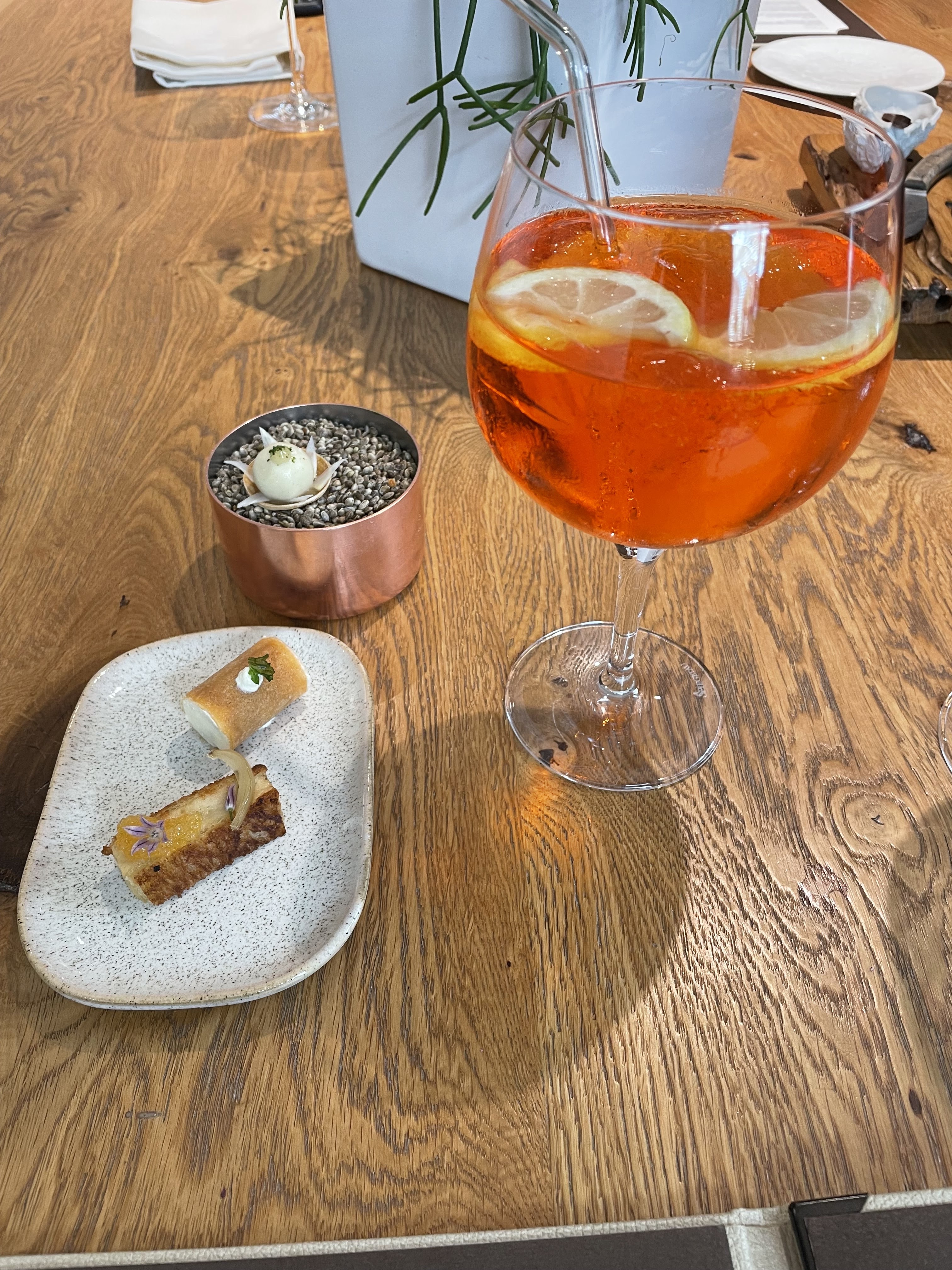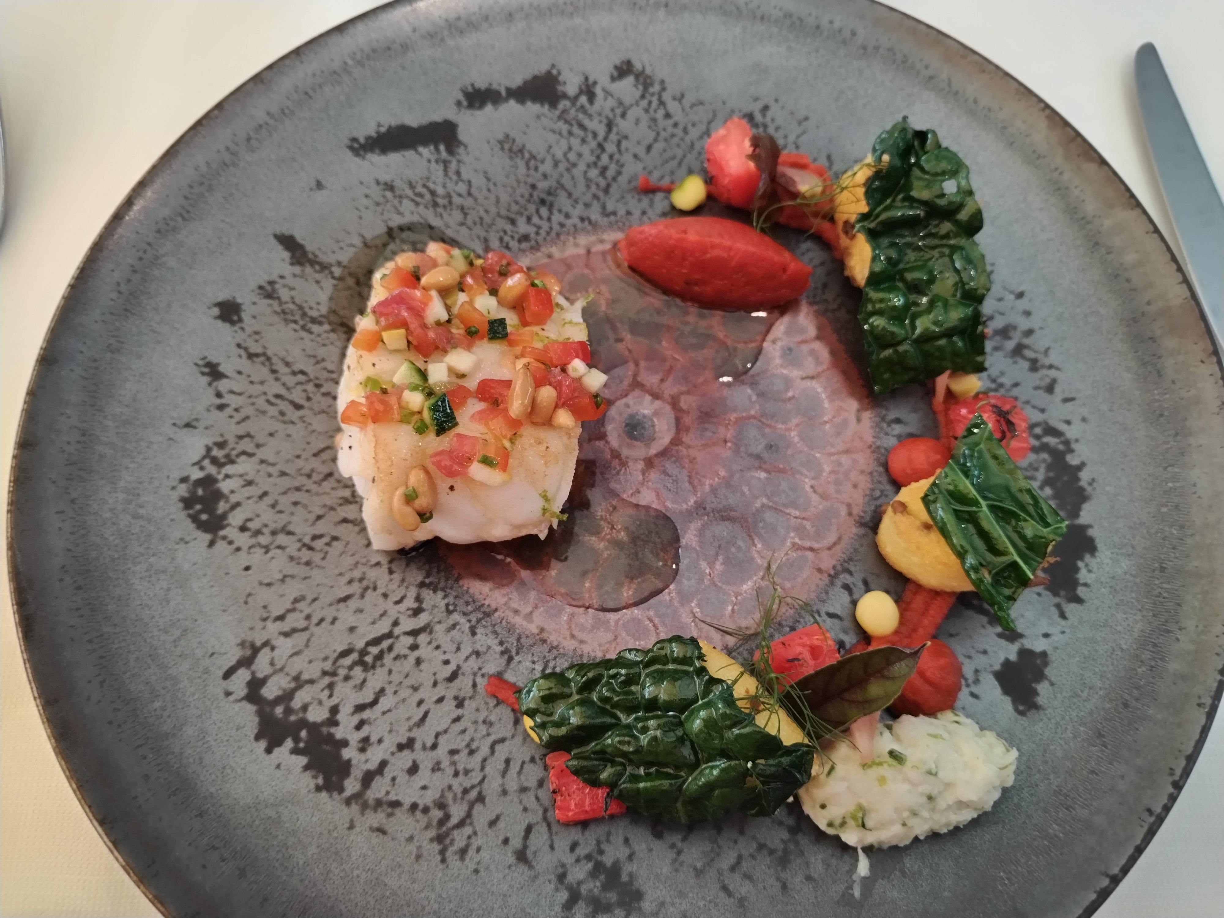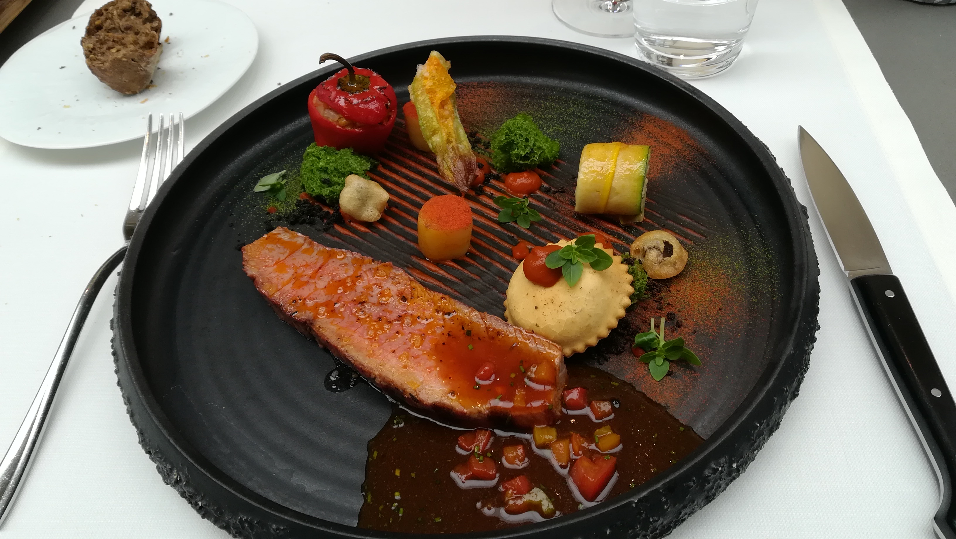 J’ai beaucoup aimé les amuses bouche et l’entrée. J’ai été déçue par le dessert et je n’ai pas aimé du tout le plat. Du porc rosé c’est tout de même étonnant. Je déplore le service et les yeux au ciel peu discrets….sans parler des réponses à nos questions « mon collègue vient de vous le dire » ! On se sent bien bête de ne pas connaître la « pressa »…sorry! Le cadre est joli, la terrasse fleurie, mais en bord de route. Dommage