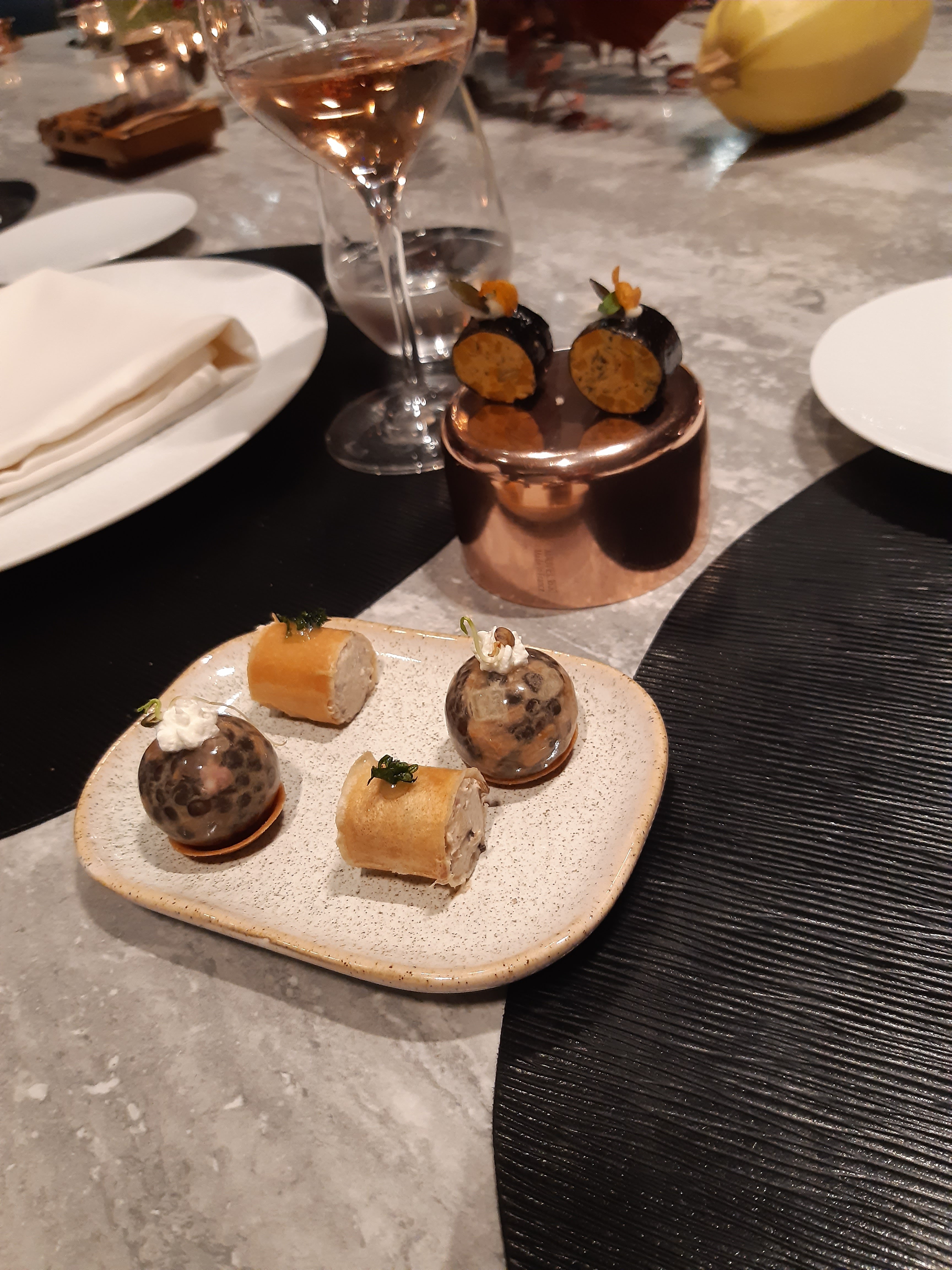 Excellente expérience gastronomique Une grande inventivité Nous nous sommes régalés Avec une seule petite réserve sur l’apéritif Champagne , excellent, mais très très court…