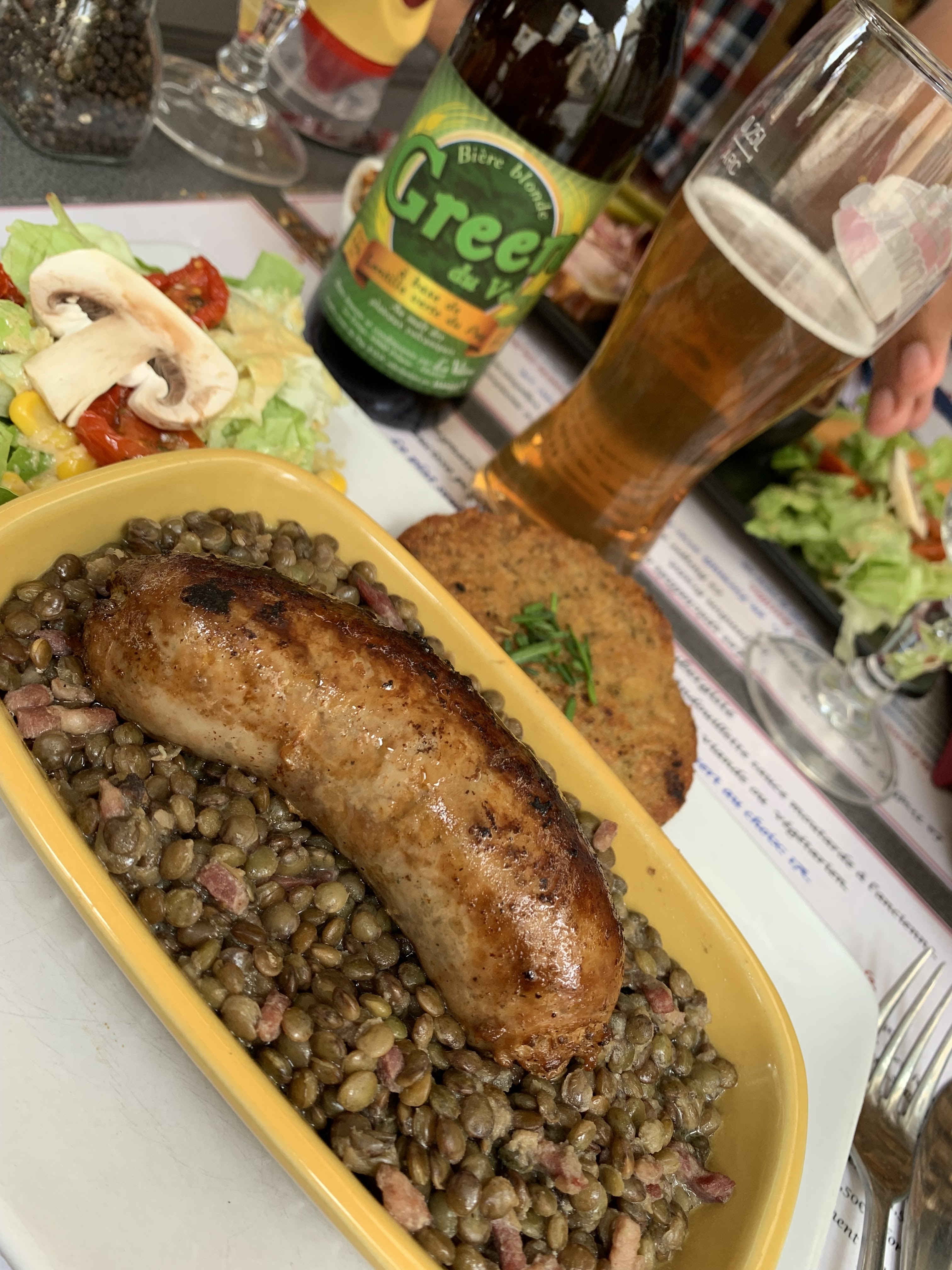 Cadre très agréable, très bien placé, très bon. Saucisse lentilles à 12€. C'était top !