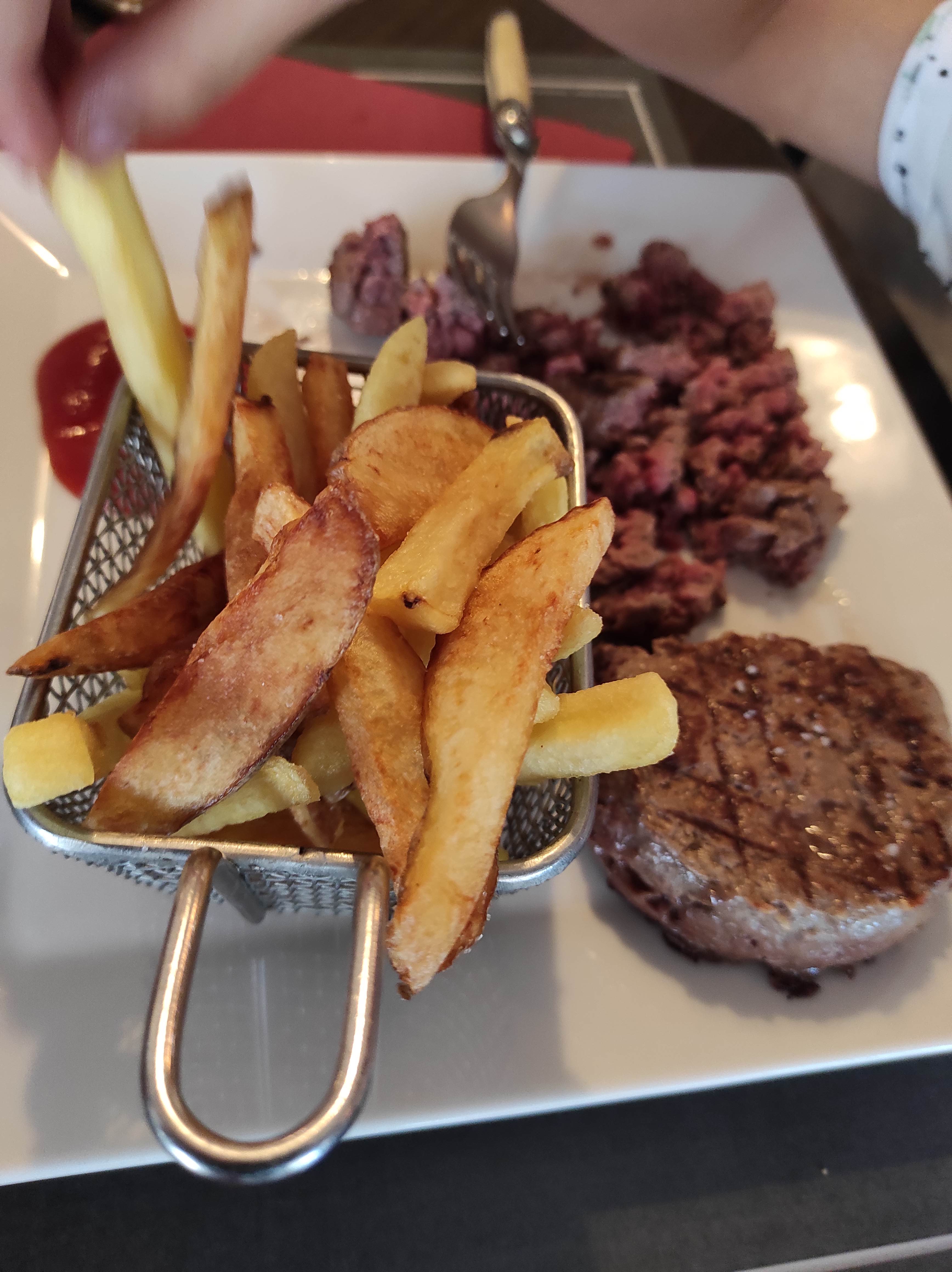 Je préfère mélanger mon tartare moi-même donc j'aime bien l'avoir en kit dans l'assiette, mais sinon la viande est excellente sous toutes ses formes. Le reste est très bon aussi.