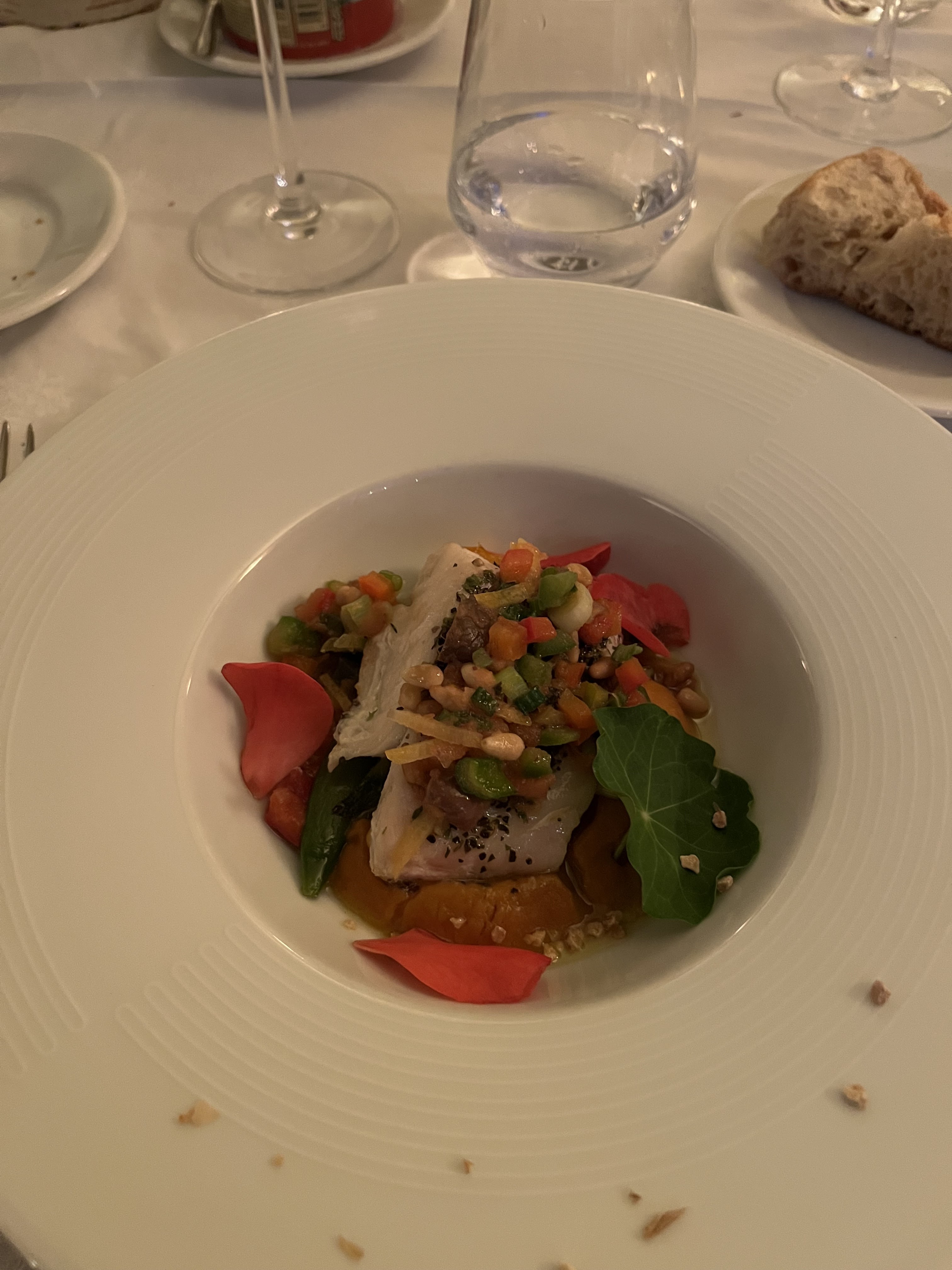 Excellent endroit dans la vallée de Pellioln. Des vues incroyables et un cadre exceptionnel. La nourriture était correcte pour ce qu'est le lieu, des plats typiques de la cuisine française où tout était parfait. Personnellement, je n'ai pas aimé la sablée de parmesan en entrée, elle manquait d'intensité de saveur et la crème de courgettes qui l'accompagnait ne se démarquait pas. Le service : vraiment très lent, nous avons passé trois heures et demie à manger 4 plats chacun, une longue attente entre les plats. Nous avons perdu l'appétit à cause de la longue attente. A aucun moment il n'y a eu d'explication sur la raison du long retard de la part de l'équipe de salle. Retrait du point négatif du service, un endroit recommandable à condition de modifier ce détail de l'heure.